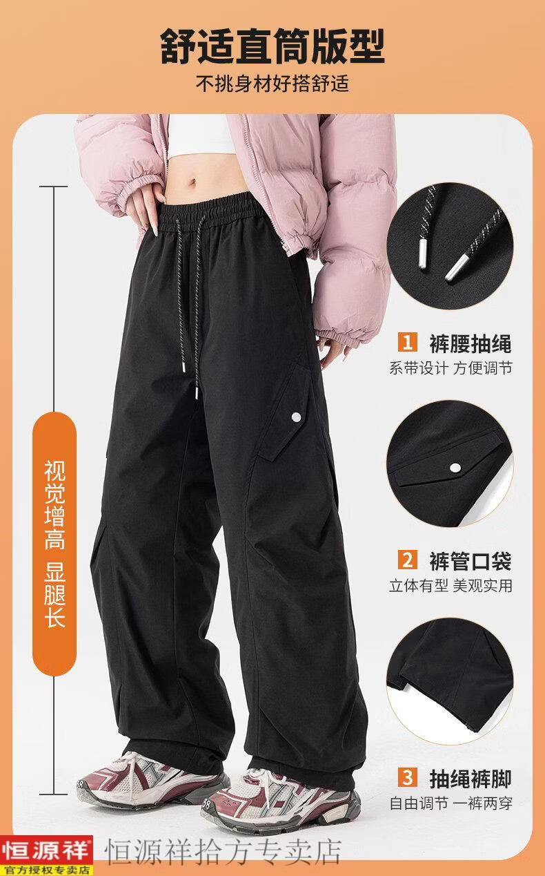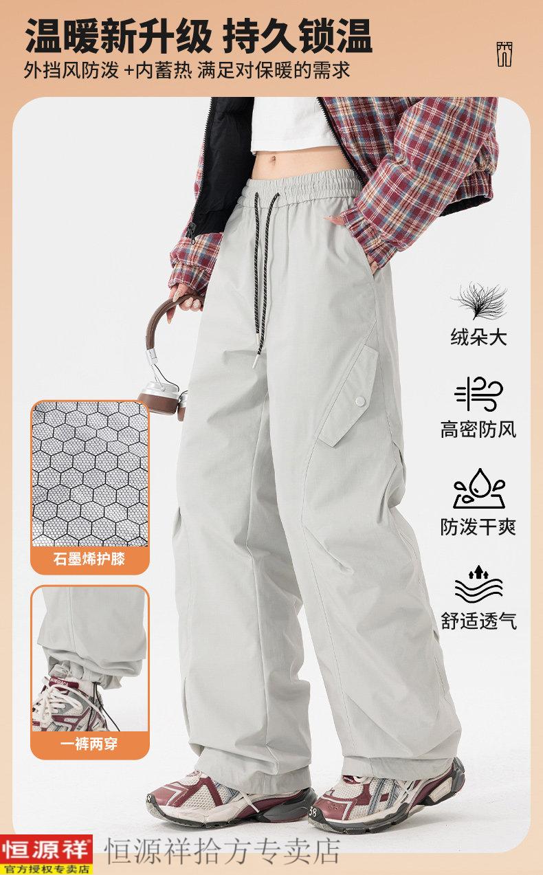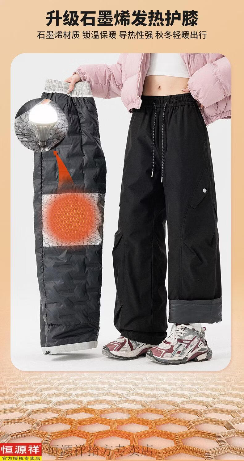Hengyuanxiang down jacket men's and women's Northeast minus 40 degree windproof, waterproof, warm, velvet and thickened ski pants, men's black XL