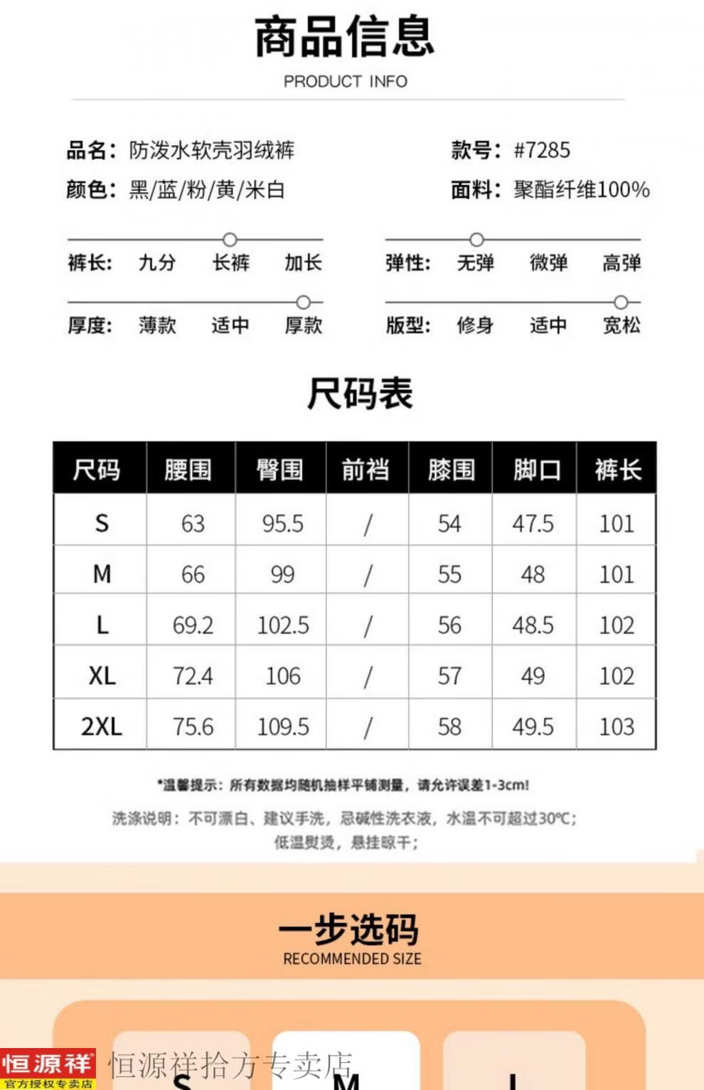 Outseam (cm) 99 cm 101.5 cm 104 cm 106.5 cm 109 cm