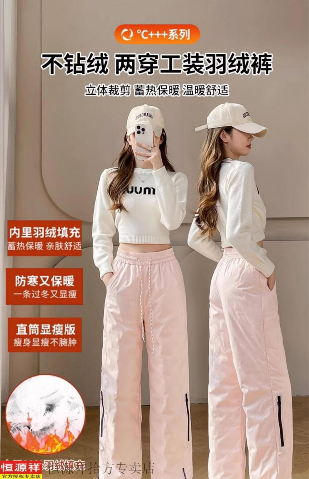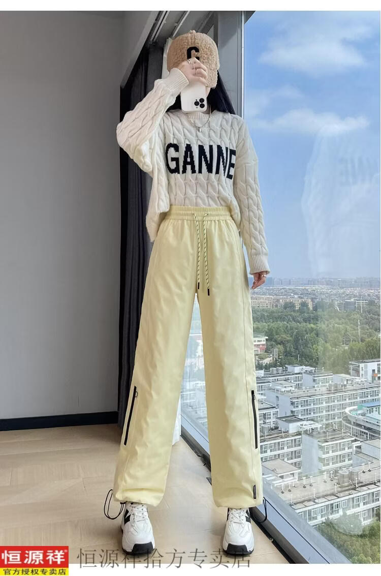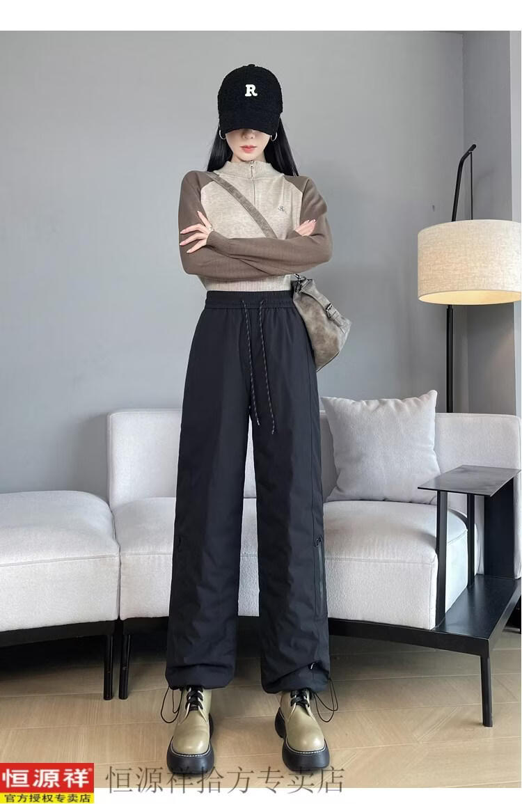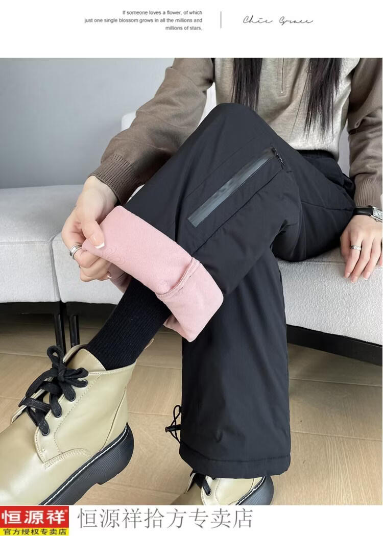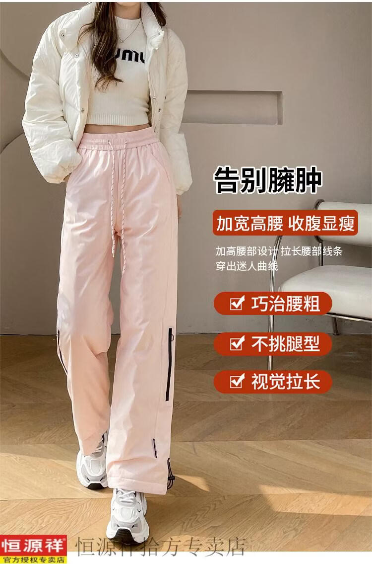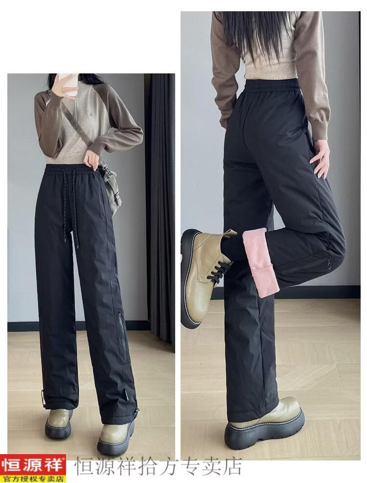 Hengyuanxiang Harbin cold-proof pants pink down pants women's outer wear winter snow town travel cold-proof workwear snow thickened cotton pants black M