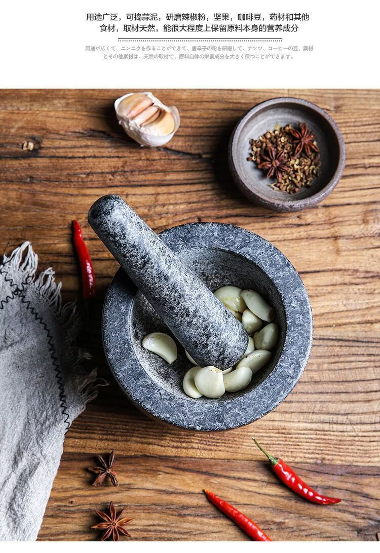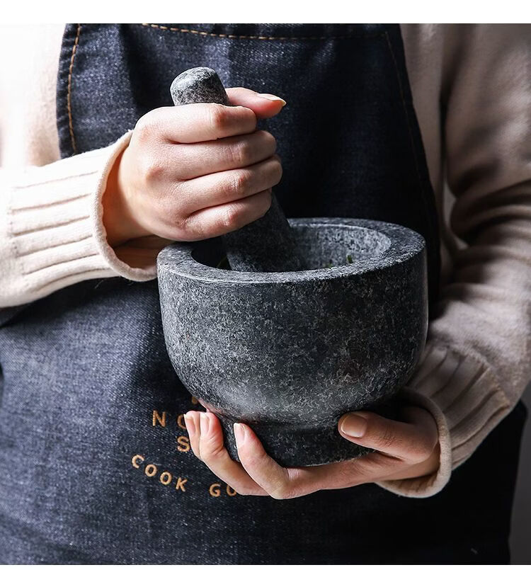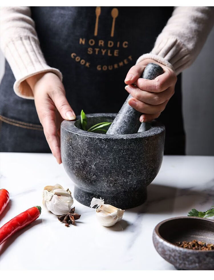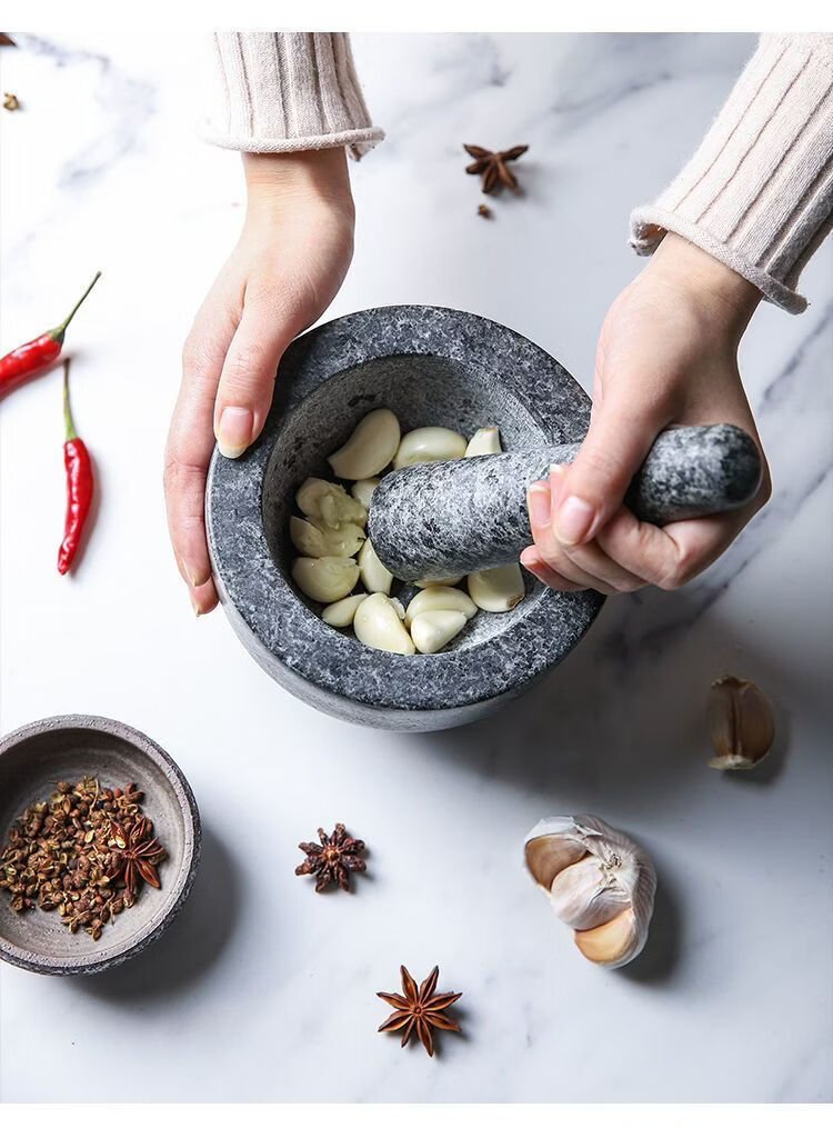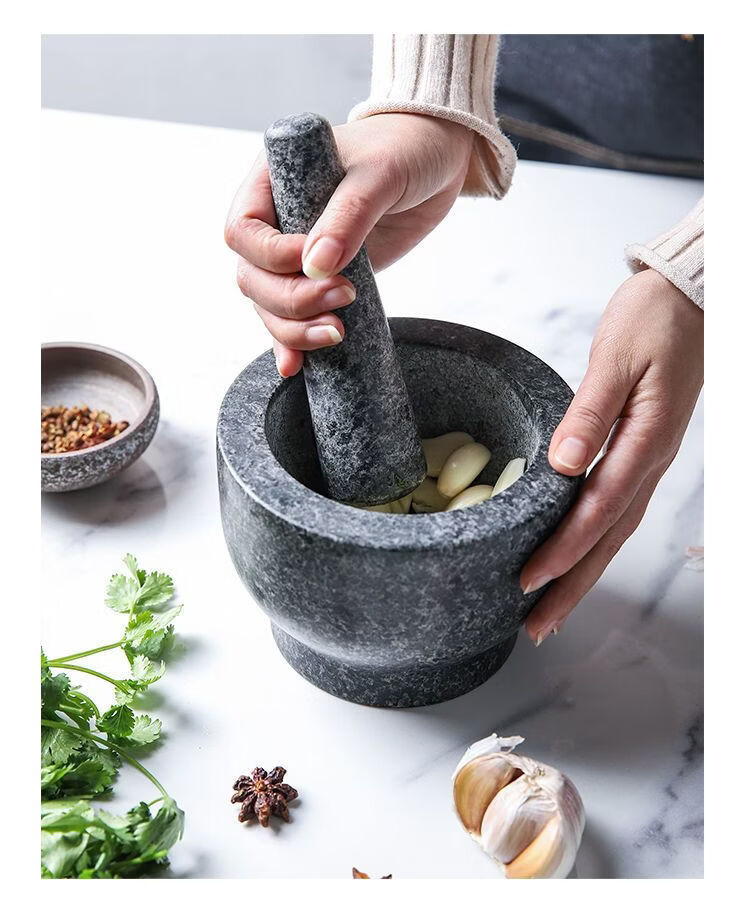 Garlic mortar, old-fashioned marble garlic mortar, manual garlic masher, stone mortar, household grinding bowl, pounding bowl, granite pestle, natural stone, durable