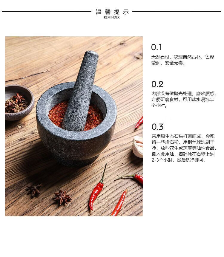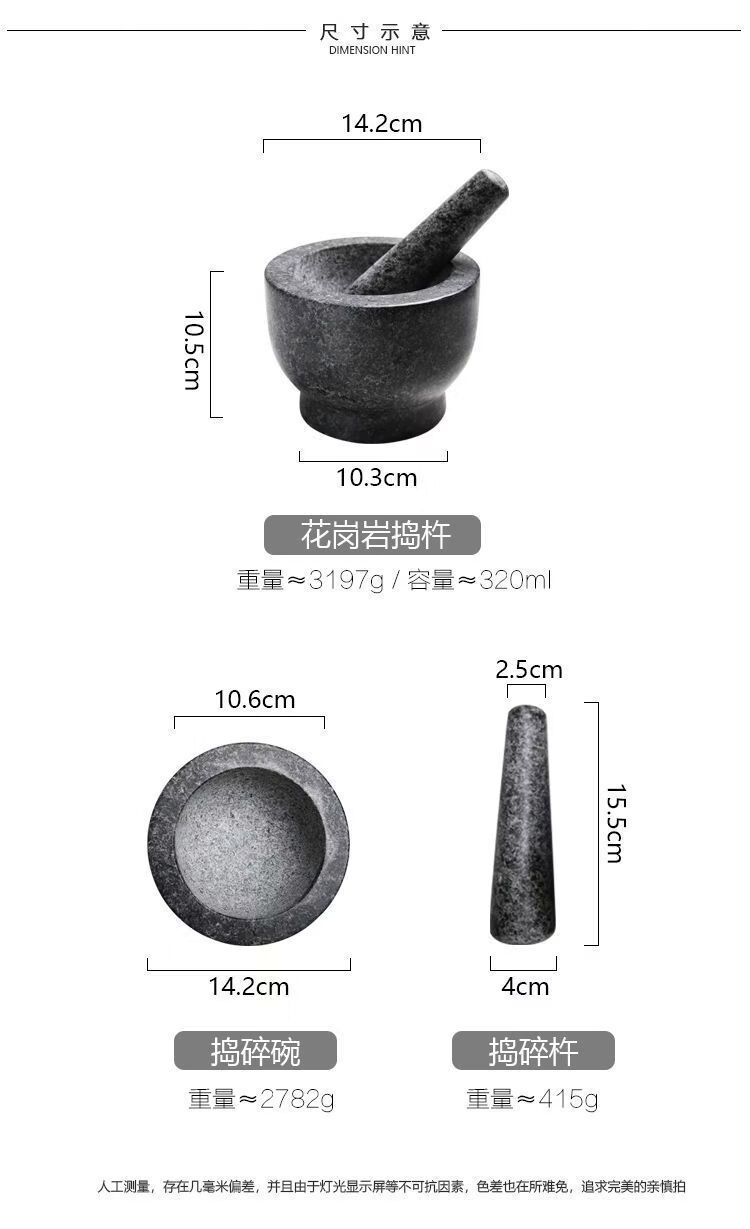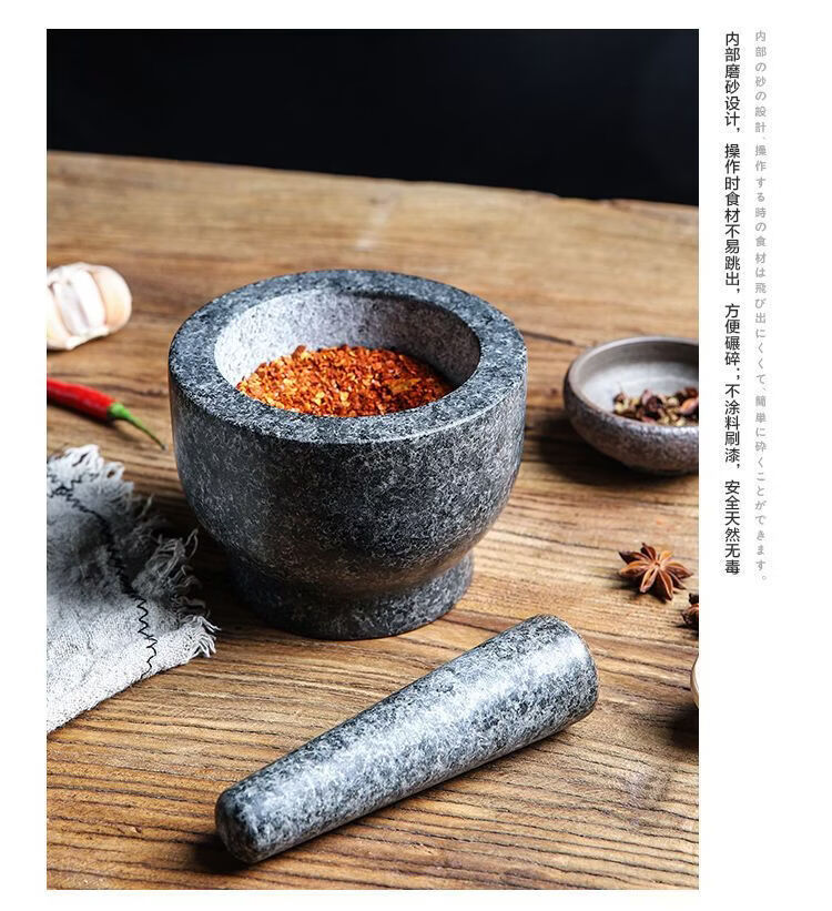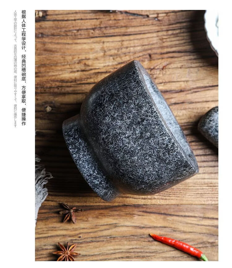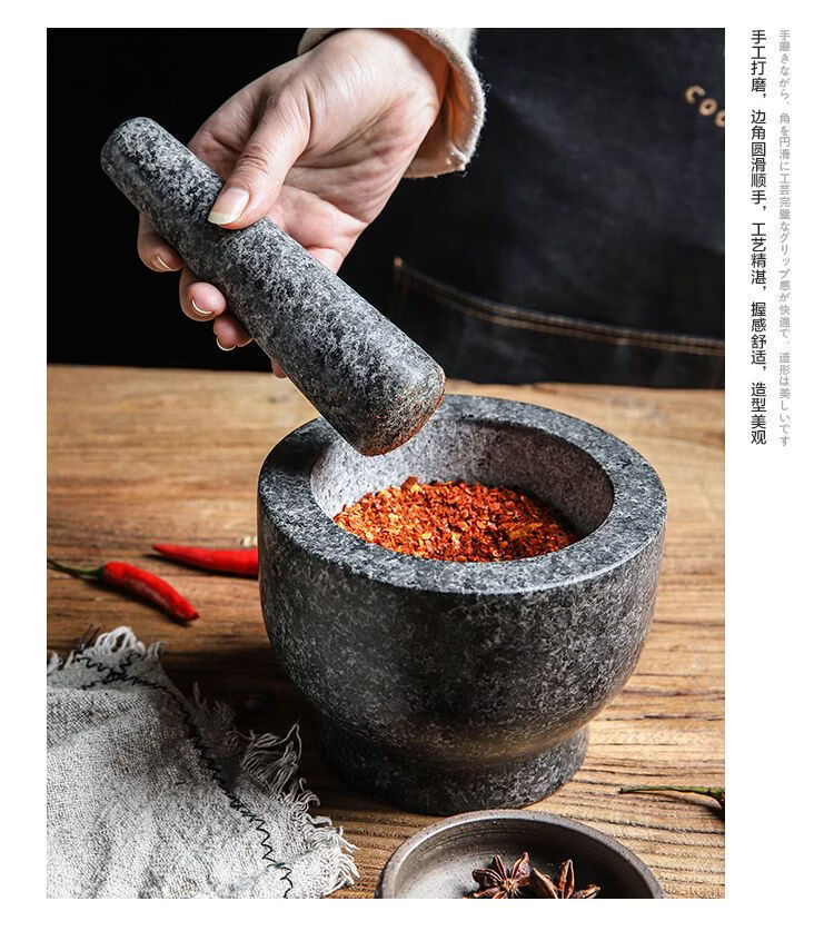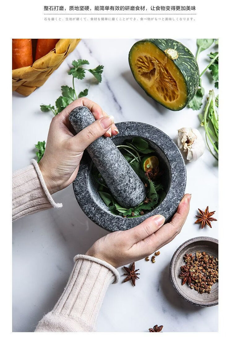 Garlic mortar, old-fashioned marble garlic mortar, manual garlic masher, stone mortar, household grinding bowl, pounding bowl, granite pestle, natural stone, durable