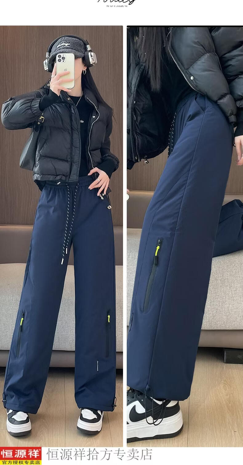 Hengyuanxiang ski down pants women's outer wear winter 2025 new fashion Northeastern thickened warm loose casual cotton pants sky blue M recommended 101-110Jin Jin equals 0.5 kg