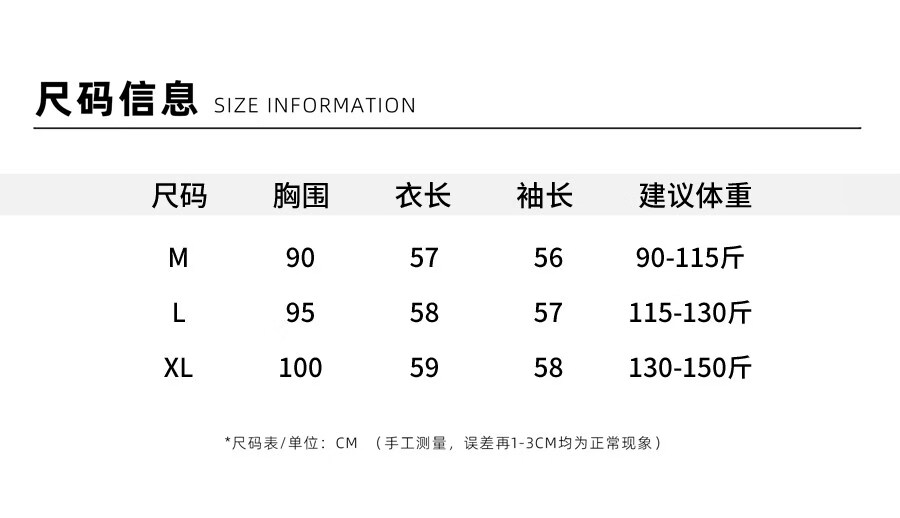 China (cm) 165 / 88-90 170 / 96-98 175 / 108-110 180 / 118-122 185 / 126-130