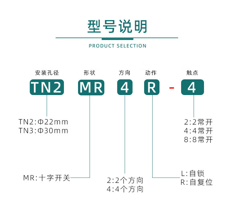 Cross switch TEND Tiande TN2MR4L-4 up, down, left and right TN2MR4R-4A master rocker control 22mm TN2MR4L-4_four-way_self-locking_(release lock)