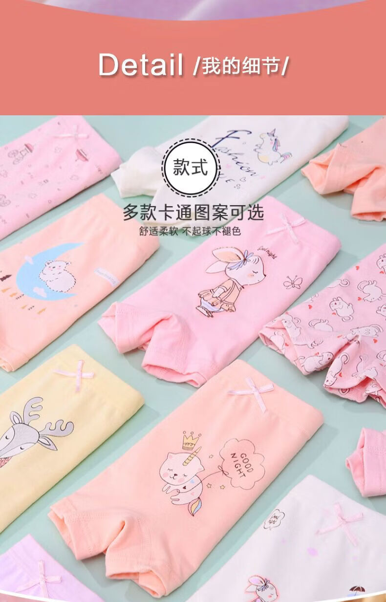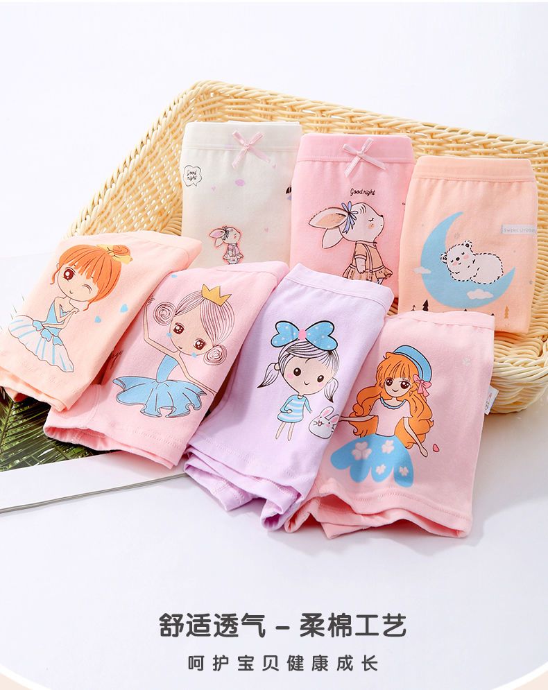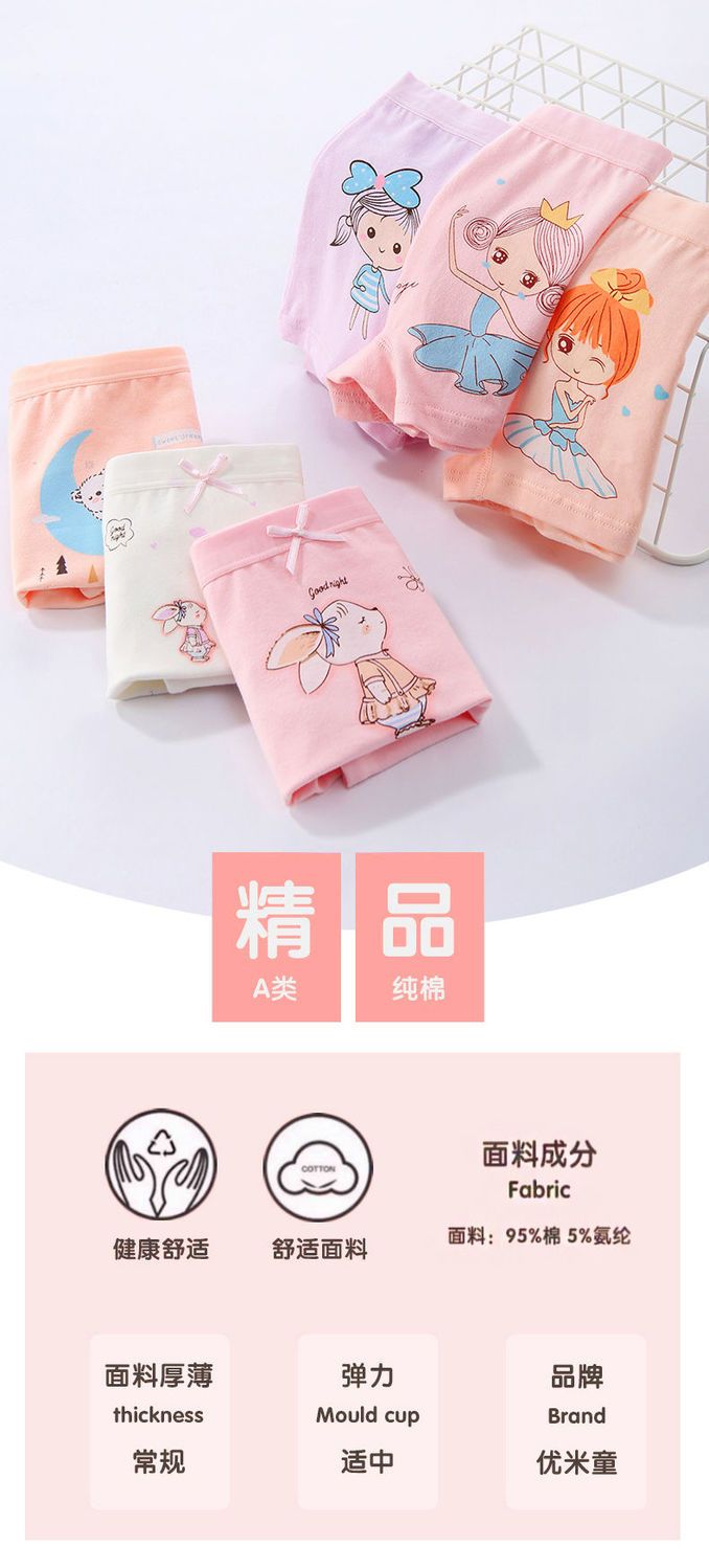 MiiOW children's pure cotton underwear, cotton girls' boxer shorts, four-corner children's babies, middle-aged children, students, girls, infants, small dragonfly (7a antibacterial style) (4/piece) 170 100 (M size) 15-25Jin Jin is equal to 0.5 kg