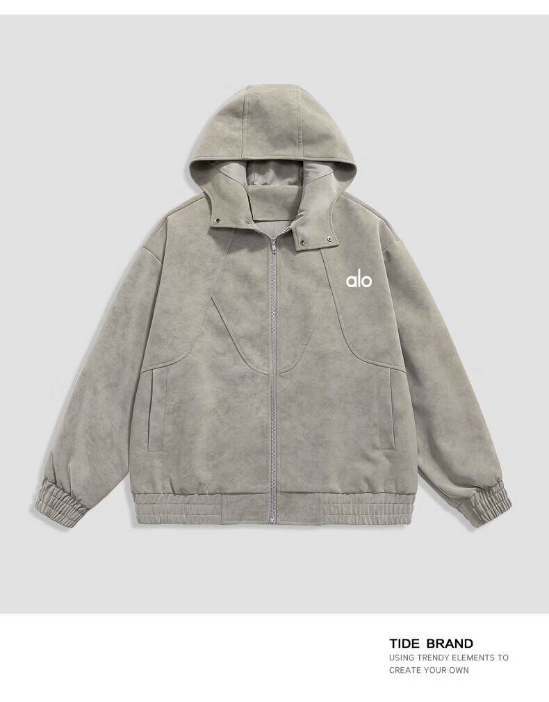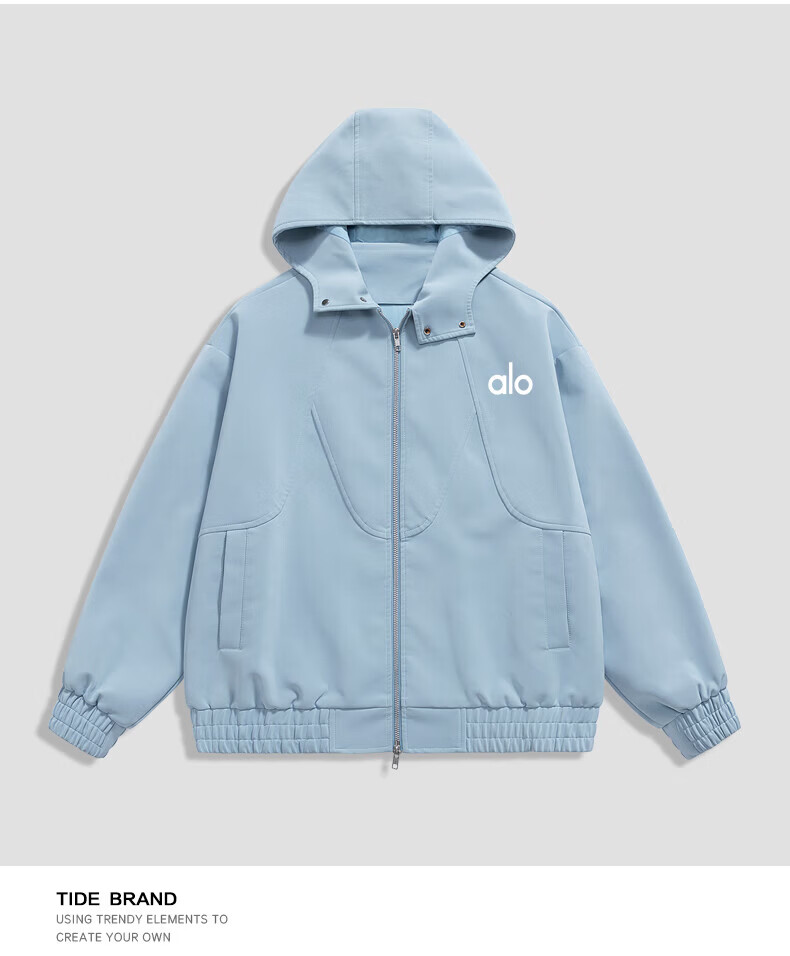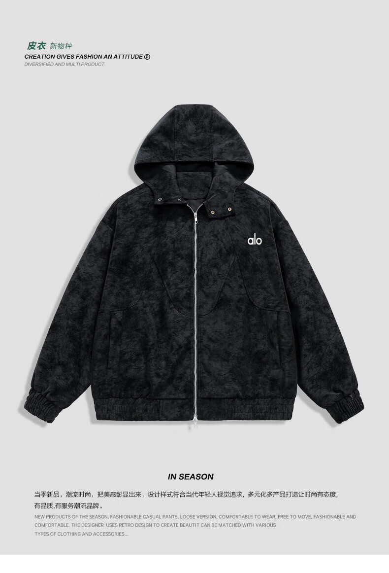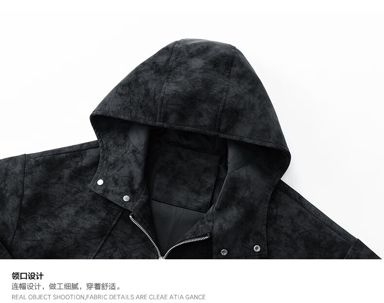 ALO American retro leather jacket men's spring and autumn trendy brand loose casual hooded motorcycle jacket trendy 838 hooded style light blue S 90-115Jin Jin equals 0.5 kg