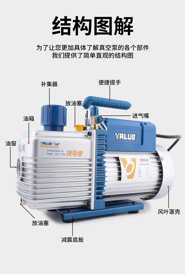 Feiyue vacuum pump 2 liter air pump 2FY-2C-N experimental filtration screen air conditioner refrigerator vacuuming VRP-15D industrial pump 7 liter bipolar