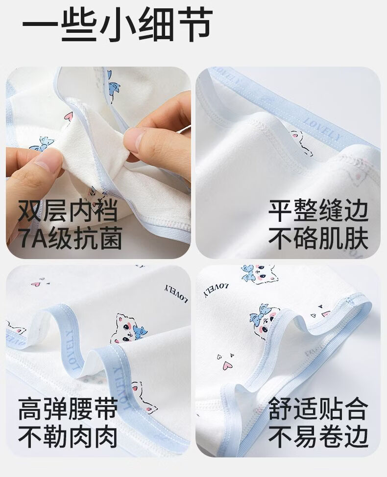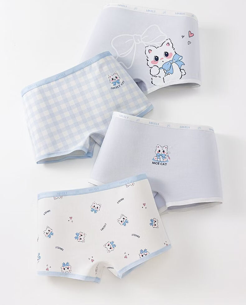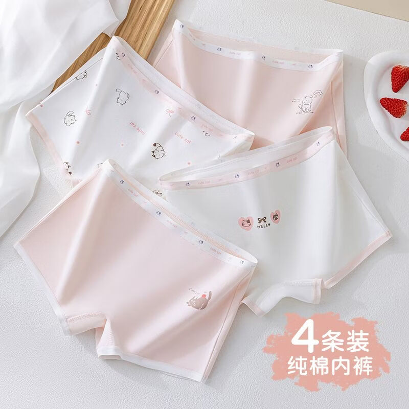 MiiOW Children's Square Corner Soft Cotton Underwear No Fluorescence 7A Breathable Cotton Crotch for Girls, Middle and Large Children 4/Pack-A1-7A Zero Bacteria Crotch 170 110 M Size Recommended Weight 20-30Jin Jin is equal to 0.5kg