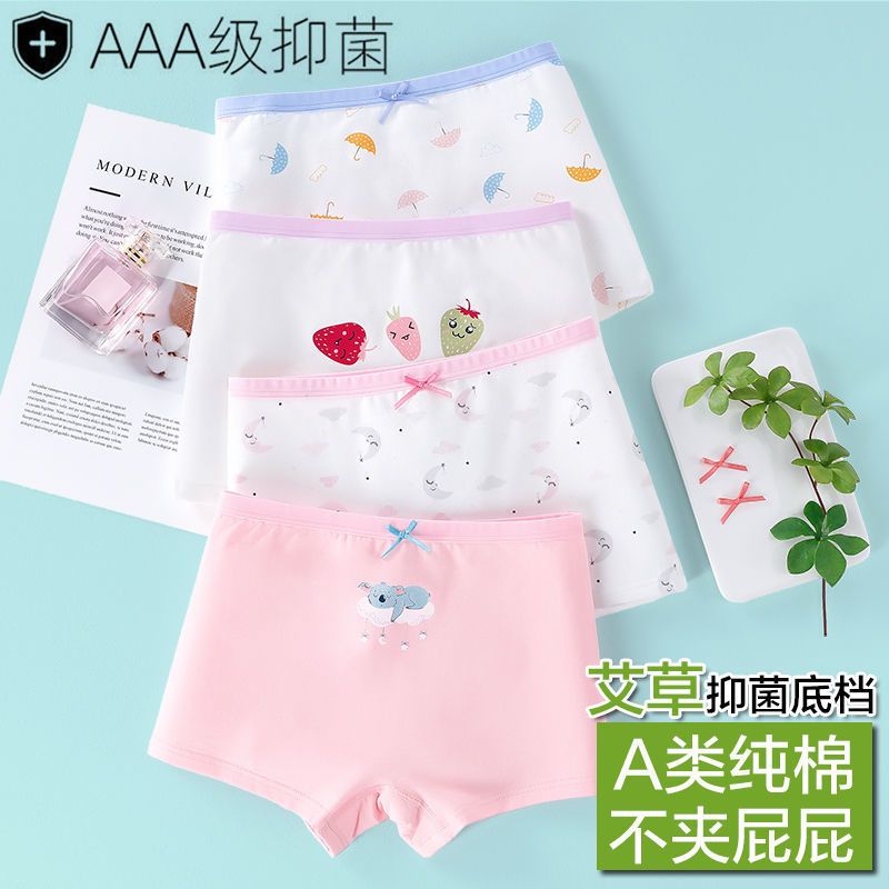 MiiOW Class A pure cotton girls' underwear autumn and winter new girls boxer briefs children's shorts for small and medium-sized children 4/pack little girl + kitten 2 crotch 110 Recommended 20-27Jin Jin equals 0.5 kg