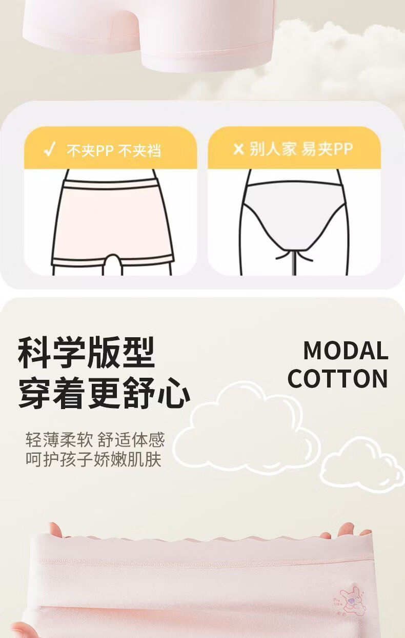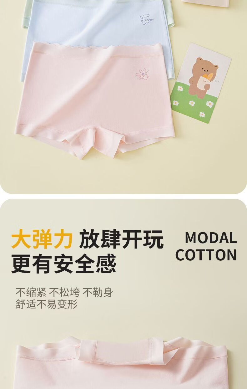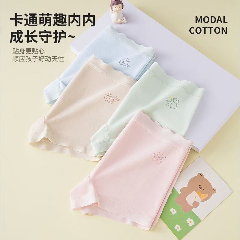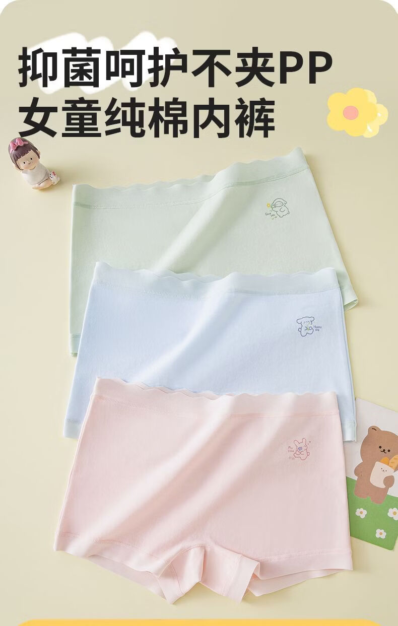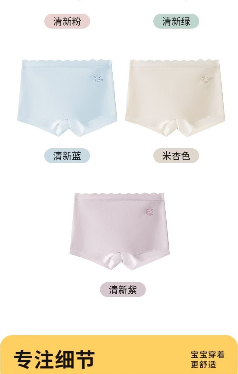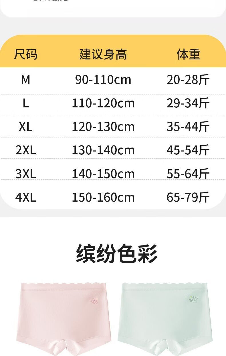 MiiOW children's underwear for girls, comfortable pure cotton four-corner breathable girl's 7A crotch boxer shorts for big children, purple-apricot-pink-blue 170 110 M size recommended weight 20-28Jin Jin equals 0.5 kg