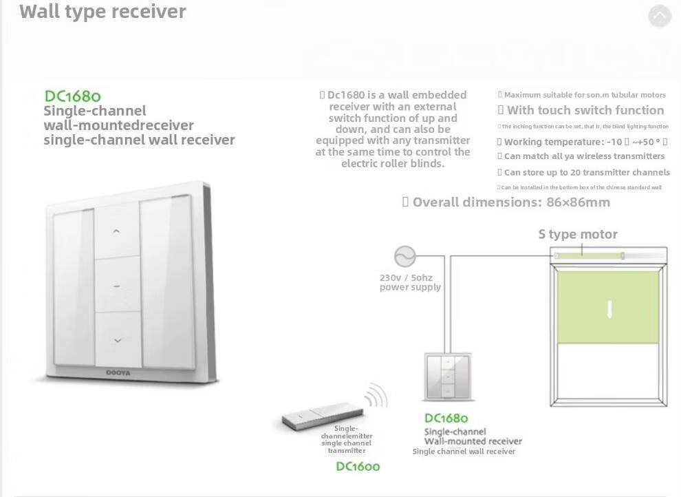 Dooya220V control switch DC1680 electric rolling shutter projection screen tube motor type 86 DC1680 single switch