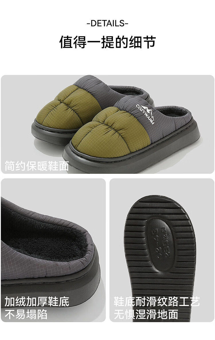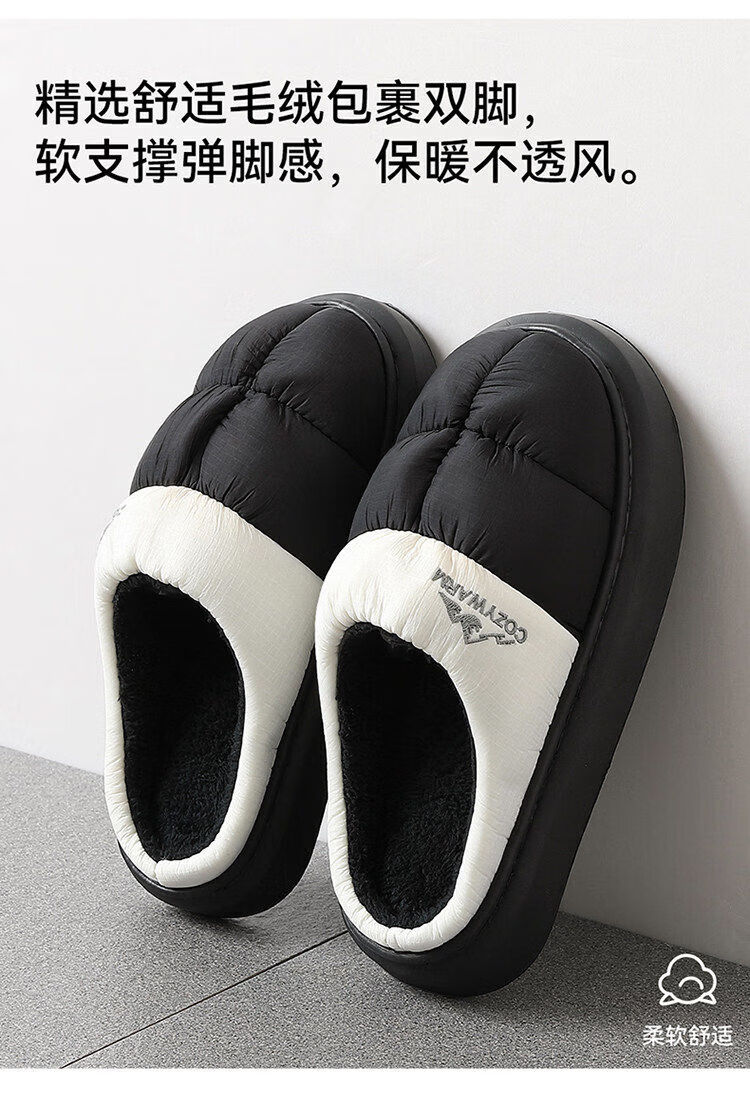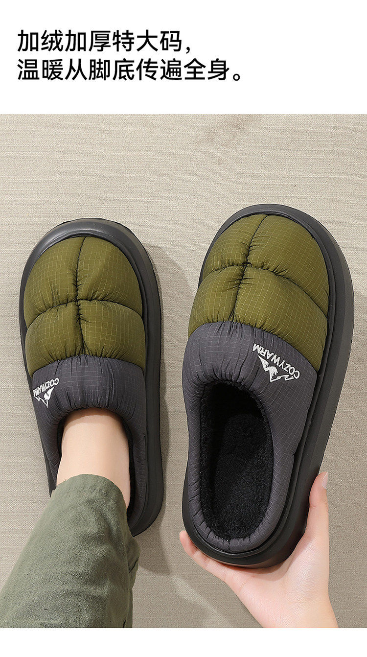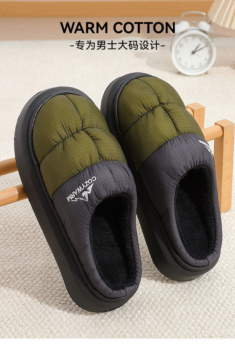 Red Bean Down Cloth Waterproof Cotton Slippers for Women 2026 New Spring Thick Soled Warmth Couple Home Use Large Size Cotton Slippers for Men Black Green 40-41 Standard Size Inner Length 25cm