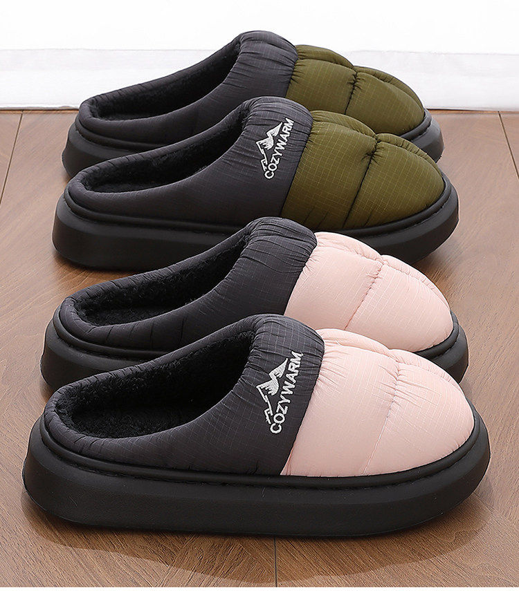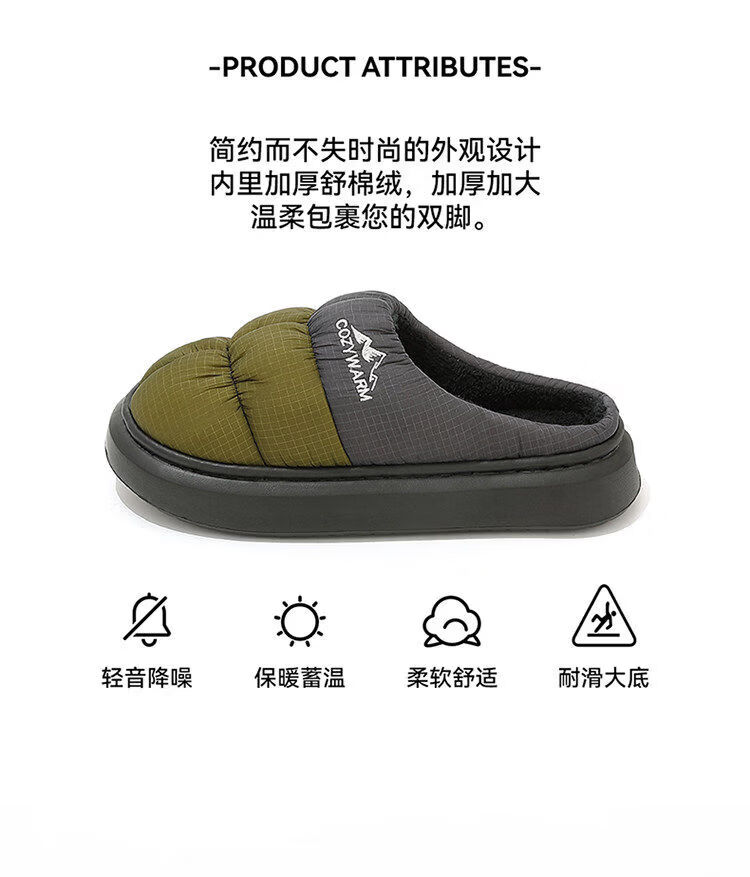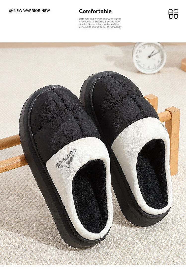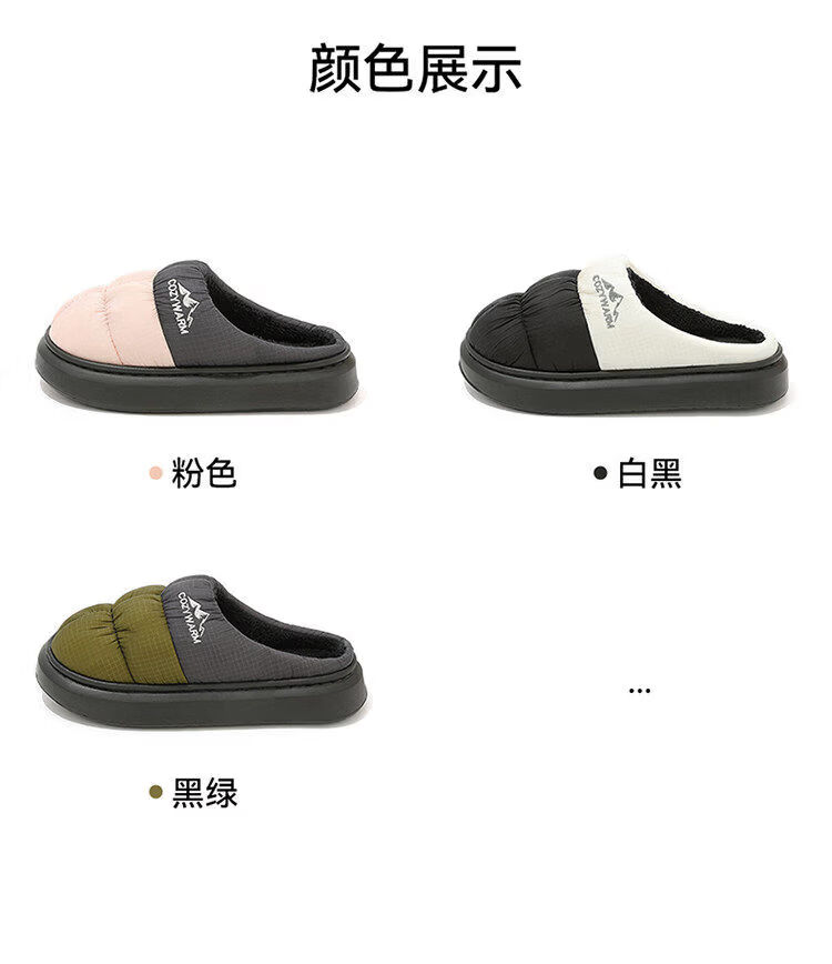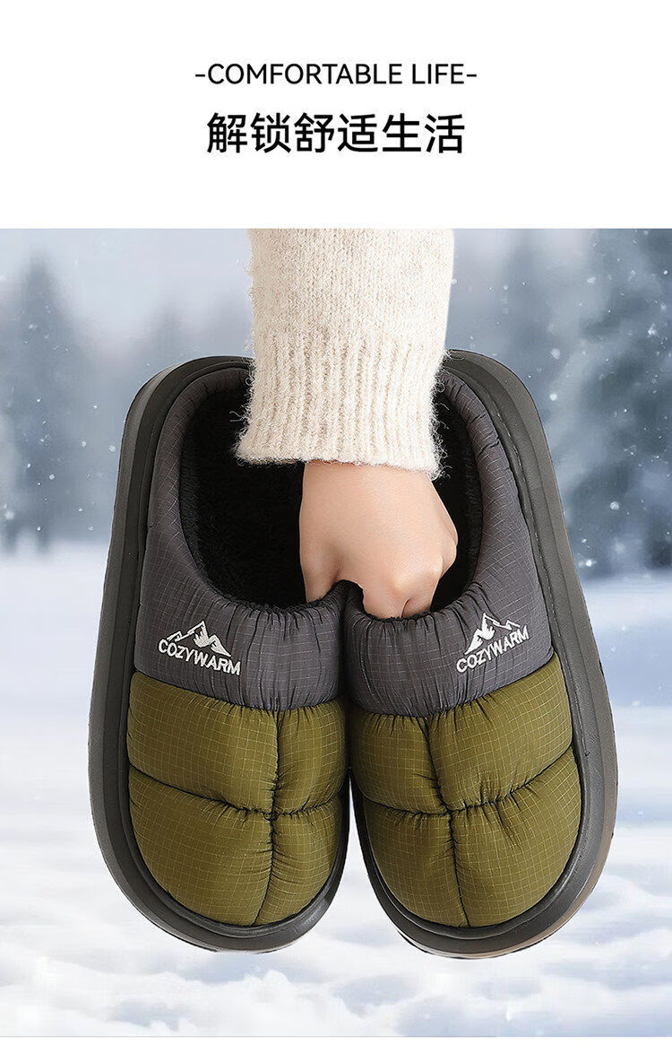 Red Bean Down Cloth Waterproof Cotton Slippers for Women 2026 New Spring Thick Soled Warmth Couple Home Use Large Size Cotton Slippers for Men Black Green 40-41 Standard Size Inner Length 25cm