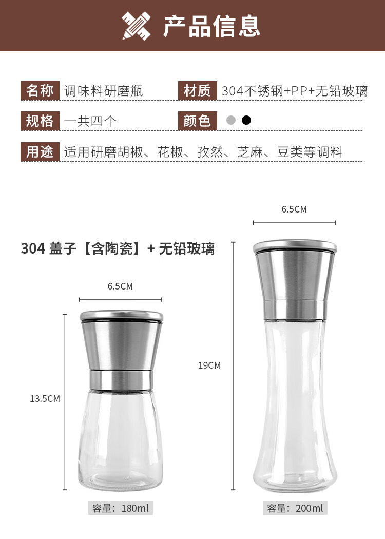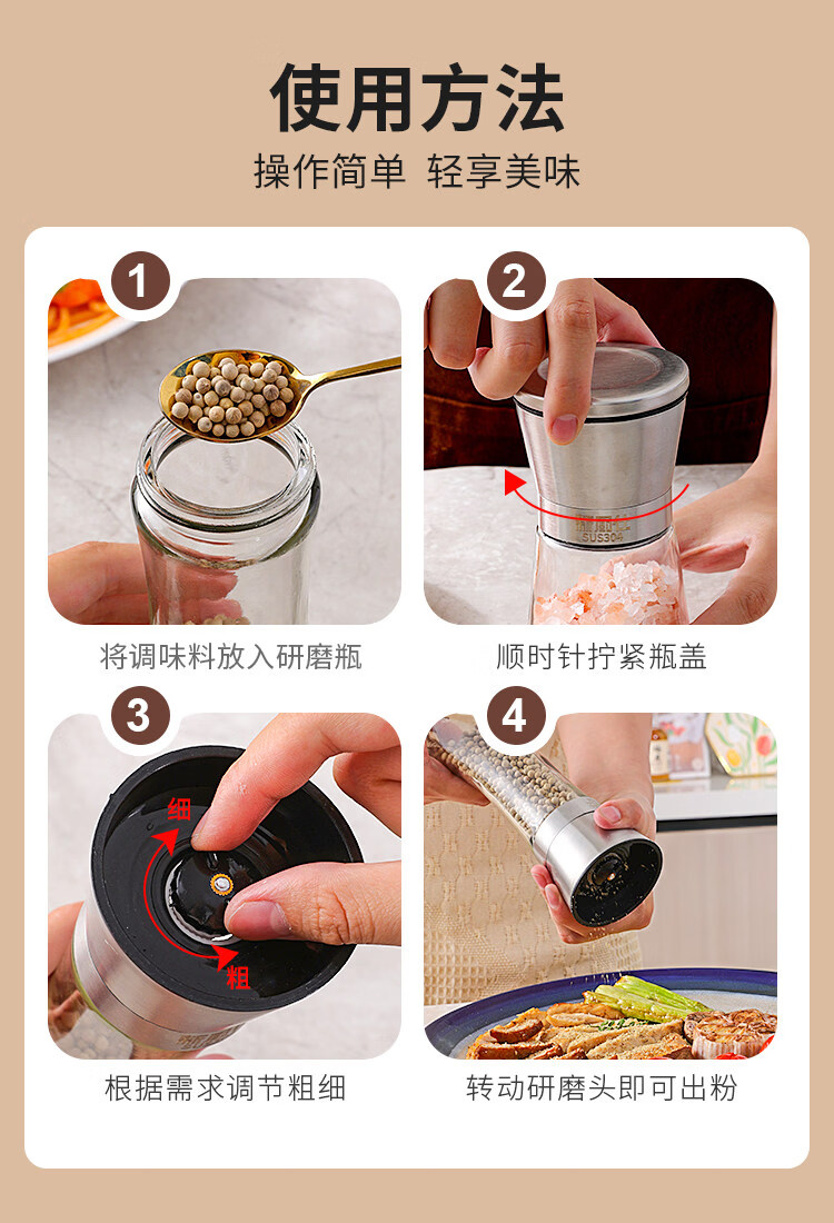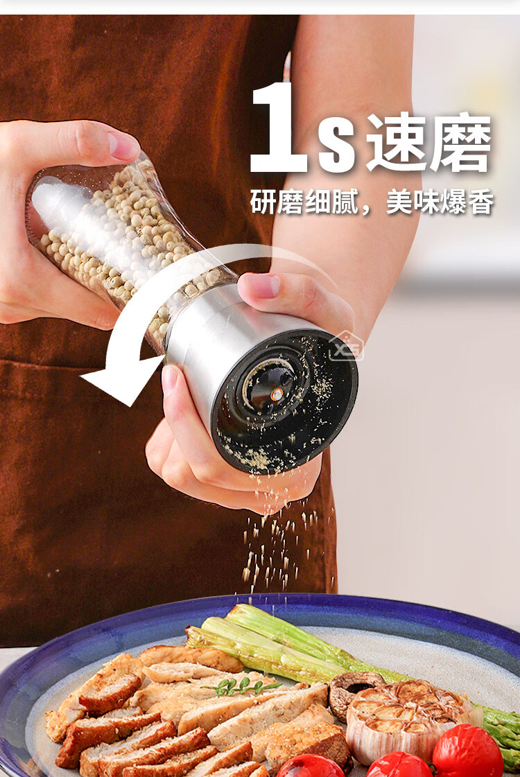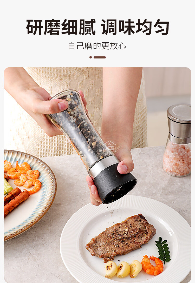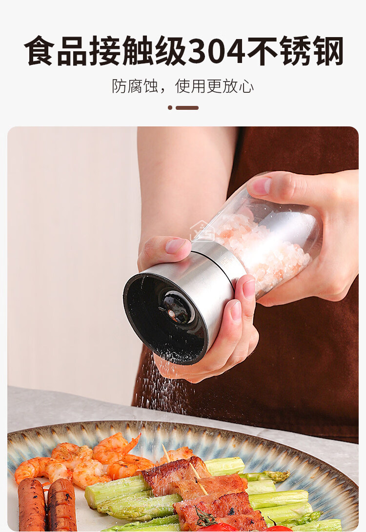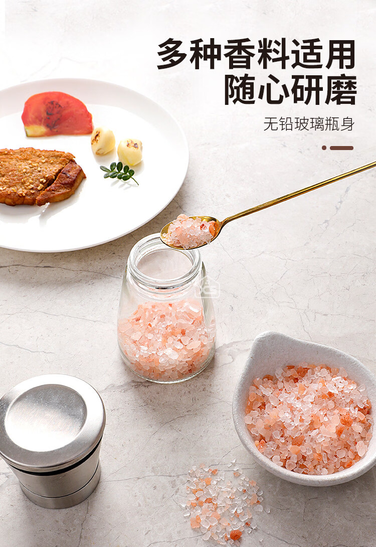 Tuojin imported quality pepper grinder from Japan, household manual sea salt and pepper grinder, stainless steel white pepper grinder, pp cover, short thickness, adjustable ceramic grinding core