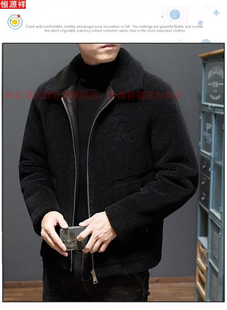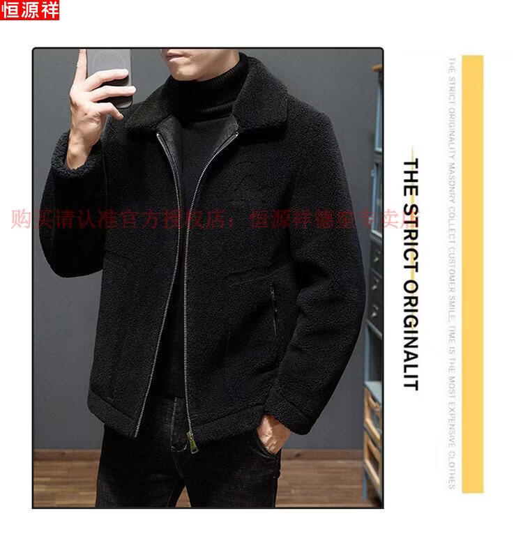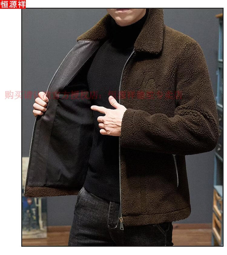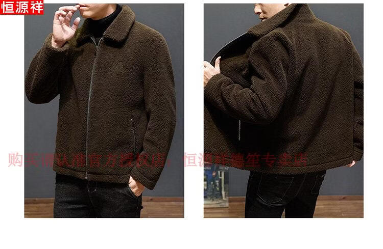 Hengyuanxiang middle-aged and elderly dad's lamb wool jacket men's winter thickened warm fur middle-aged lapel jacket brown M recommended-115Jin Jin equals 0.5kg