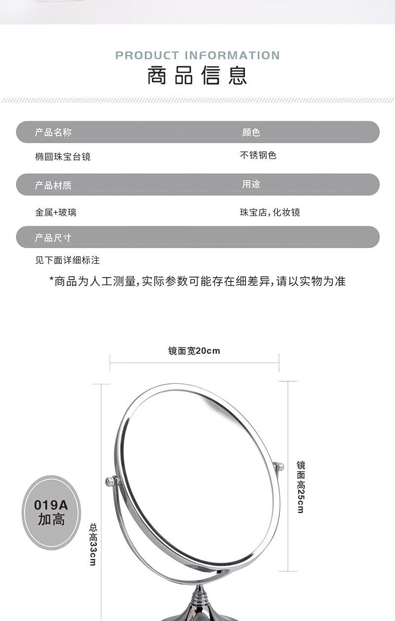 Shantou Lincun Counter Jewelry Mirror Double-Sided 09 Height Mirror Glasses Jewelry Shop Mirror Cosmetic Mirror Viewing Mirror Desktop 678 (Model 48-Jewelry Mirror Double-Sided 09 Height