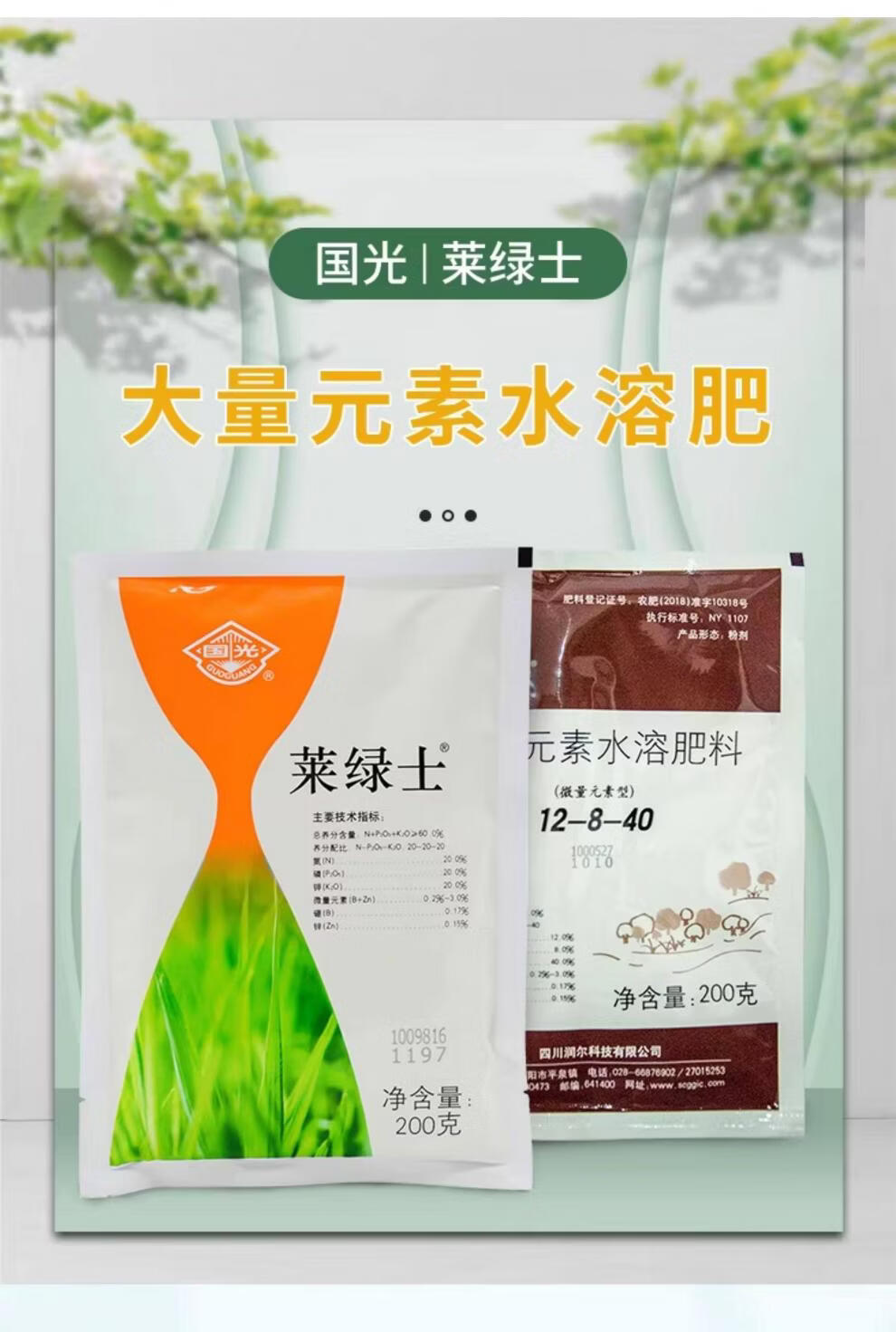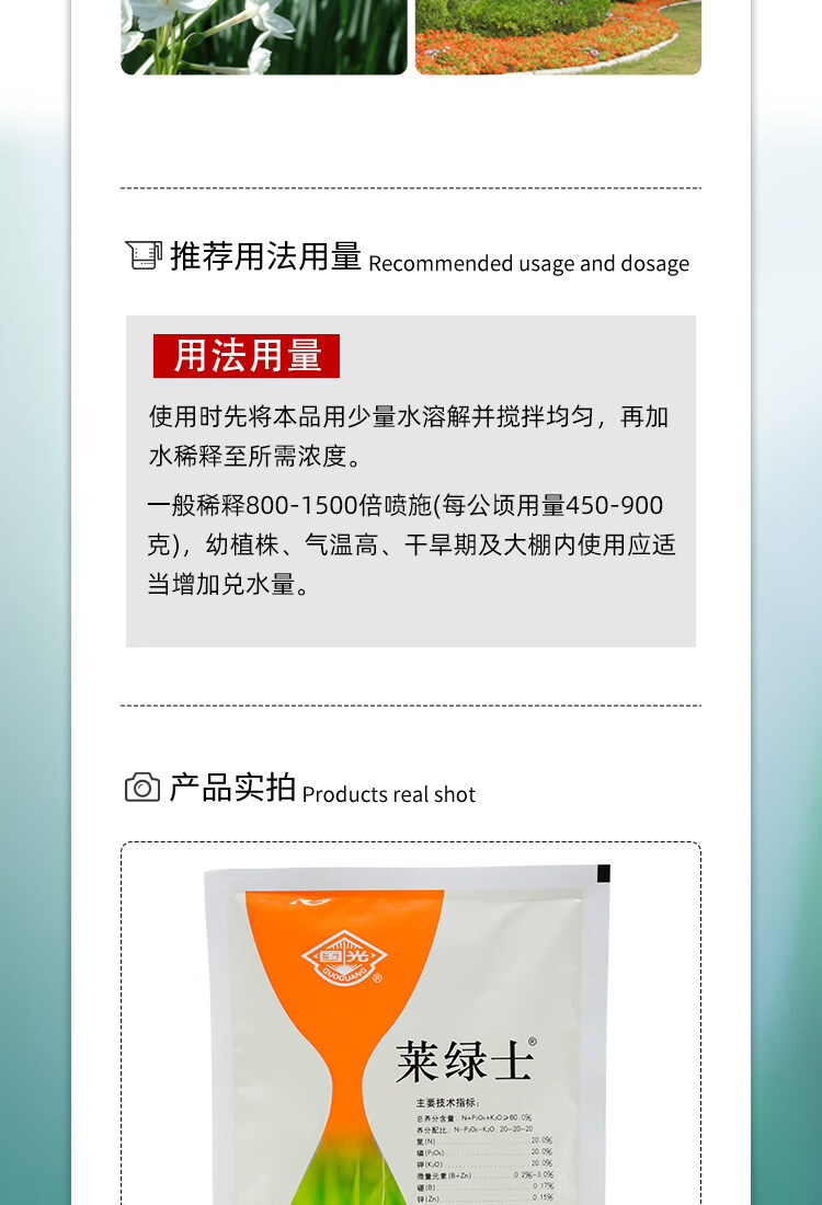 Guoguang Lailux large-element water-soluble fertilizer for flowers, fruits and vegetables, foliar fertilizer, nitrogen fertilizer and potassium fertilizer, balanced type (20-20-20) 200g/bag