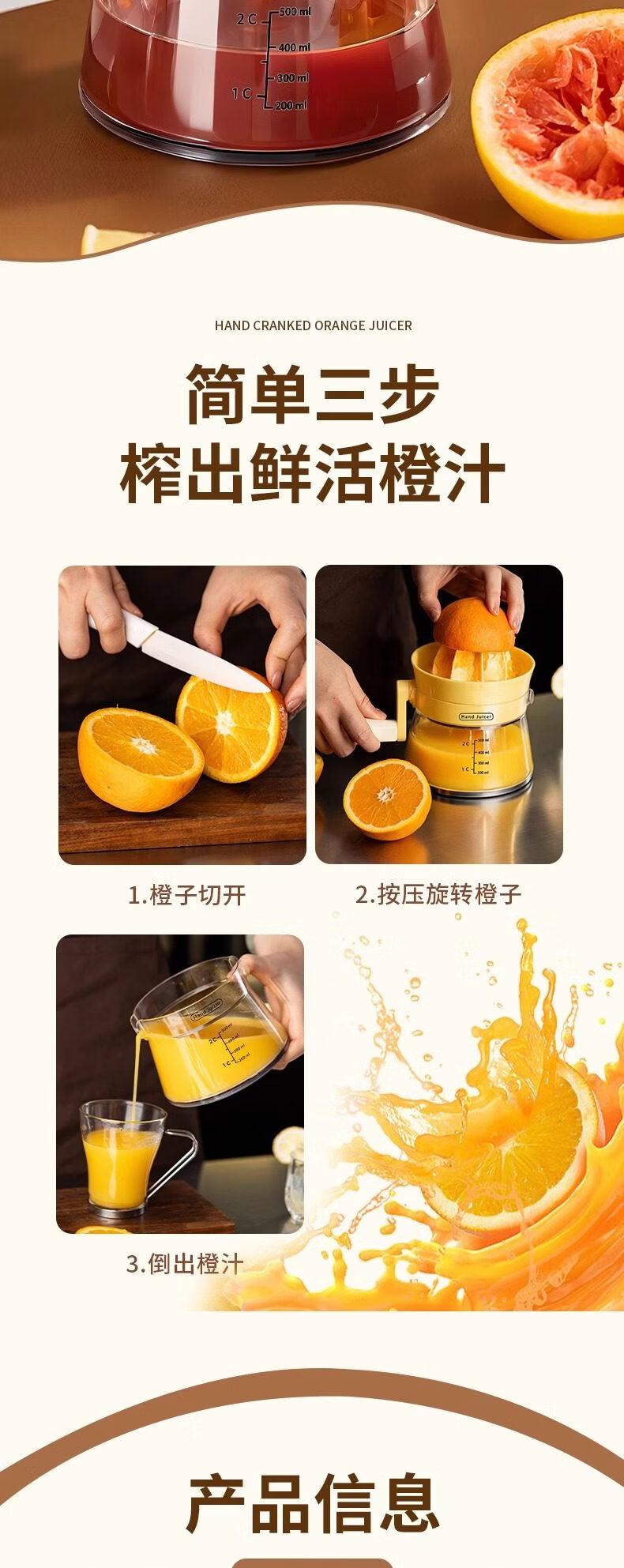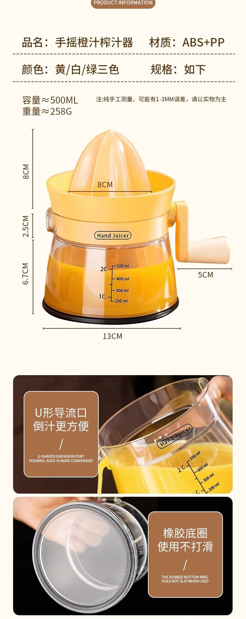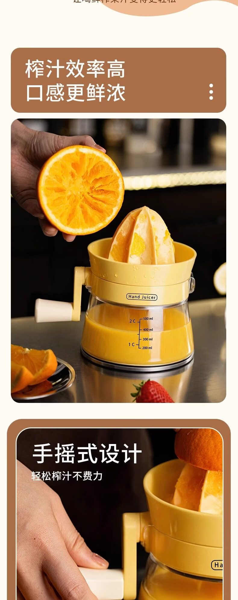 Tuojin imported quality manual juicer from Japan, hand-pressed juicer, household orange juice lemon squeezer, special upgraded model, yellow, can easily squeeze large fruits