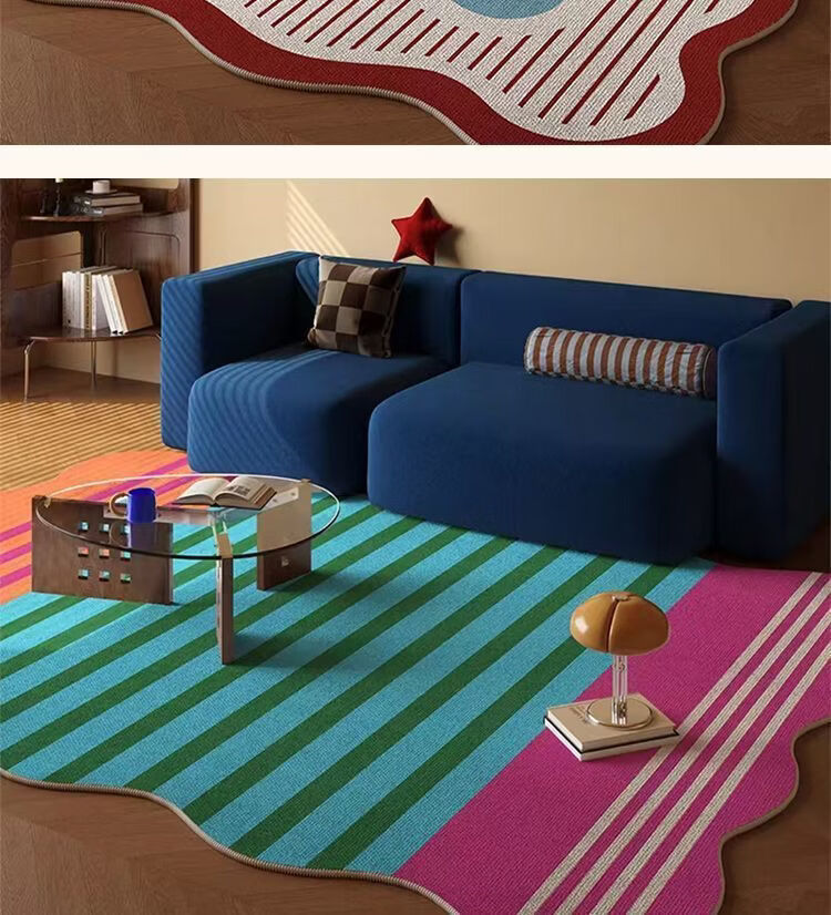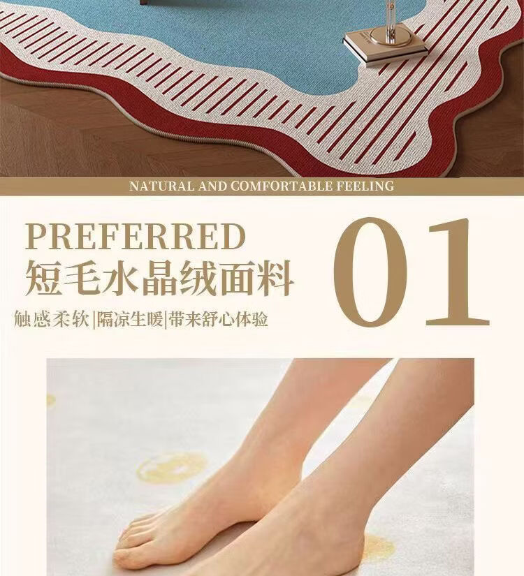 Fantasy dopamine living room carpet special-shaped full-cover sofa coffee table carpet high-end stain-resistant no-care bedroom floor mat customized 180x250 cm double-line seam CX wave Yuehu crystal velvet