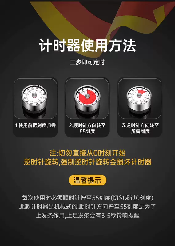 Yusenyi visual timer kitchen mechanical timing learning children's kitchen reminder magnetic cooking stopwatch alarm clock blue (10-minute hourglass timer)