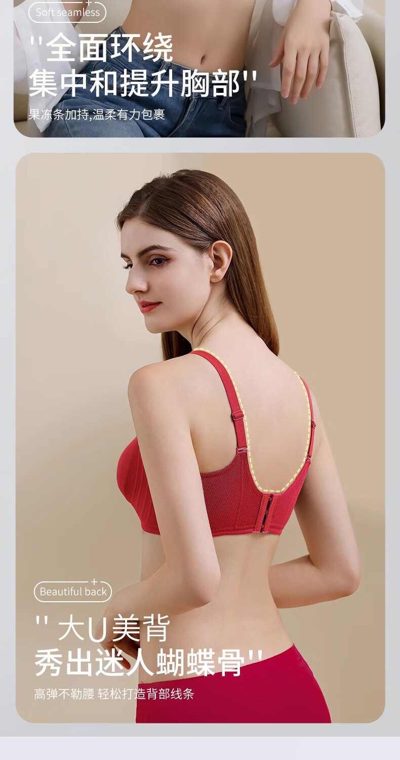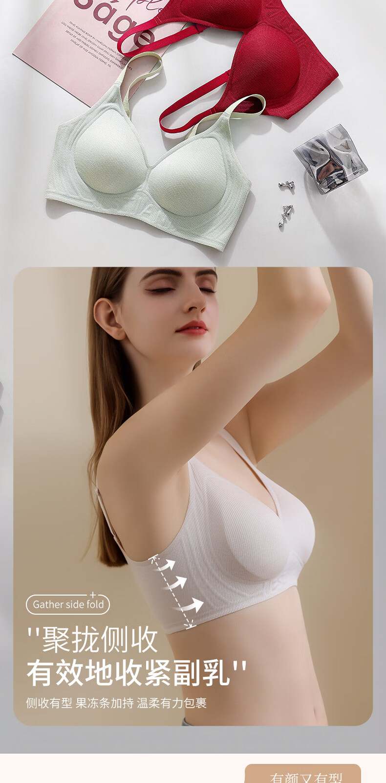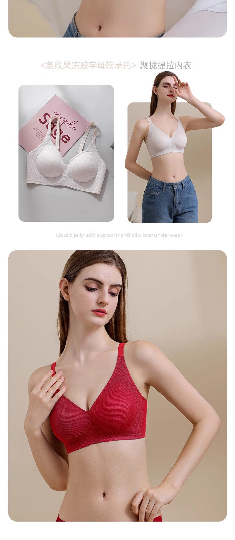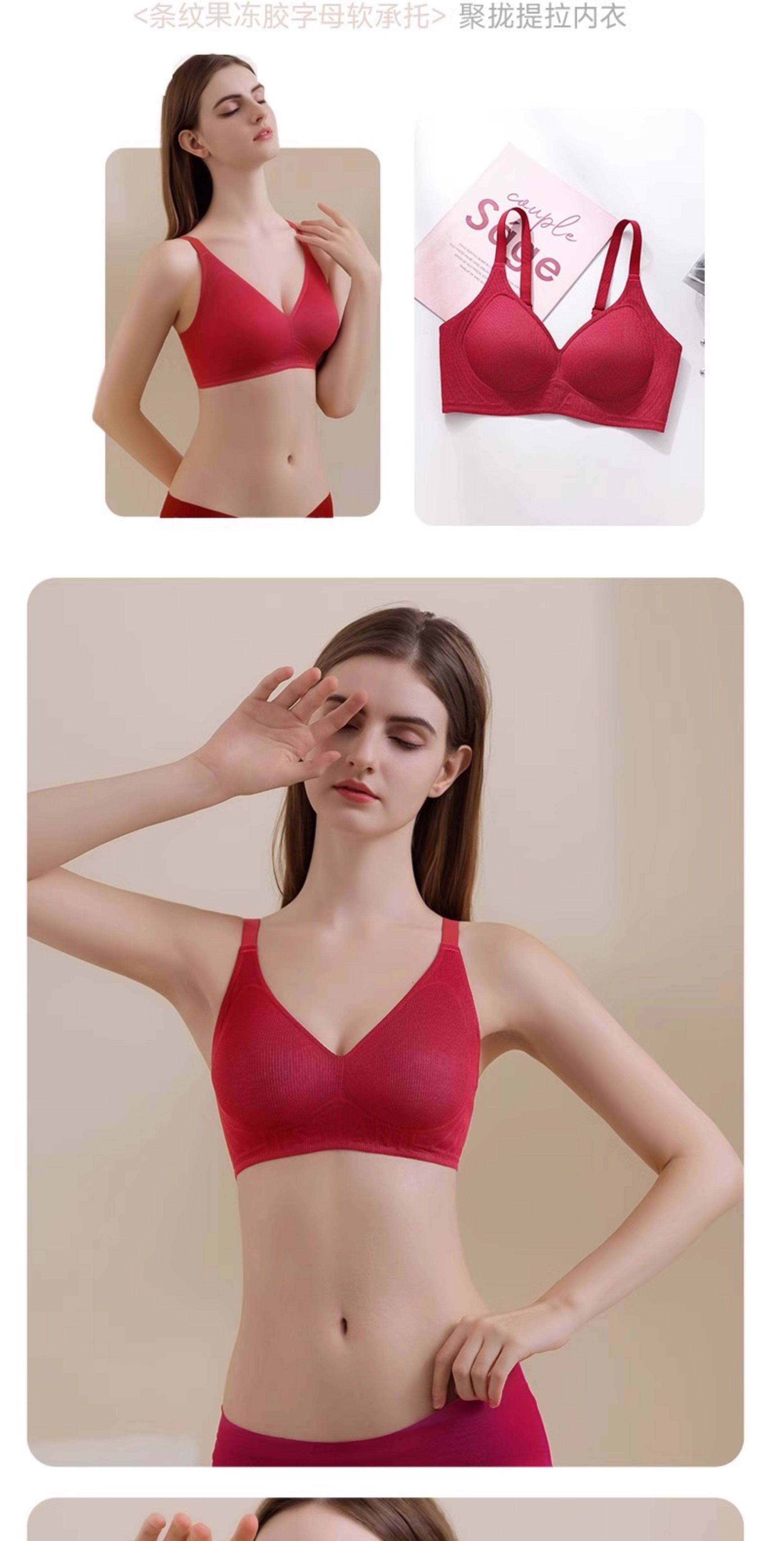 Vanclone Vanclone Wireless Underwear Women's Large Breast Revealing Small Breast Thin Seamless Bra Push-up and Secondary Breast Anti-sagging Bra Jelly Strips Ankara Red Three-piece Set 3-piece Pack M Recommended 90-105 Jin Jin equals 0.5 kg