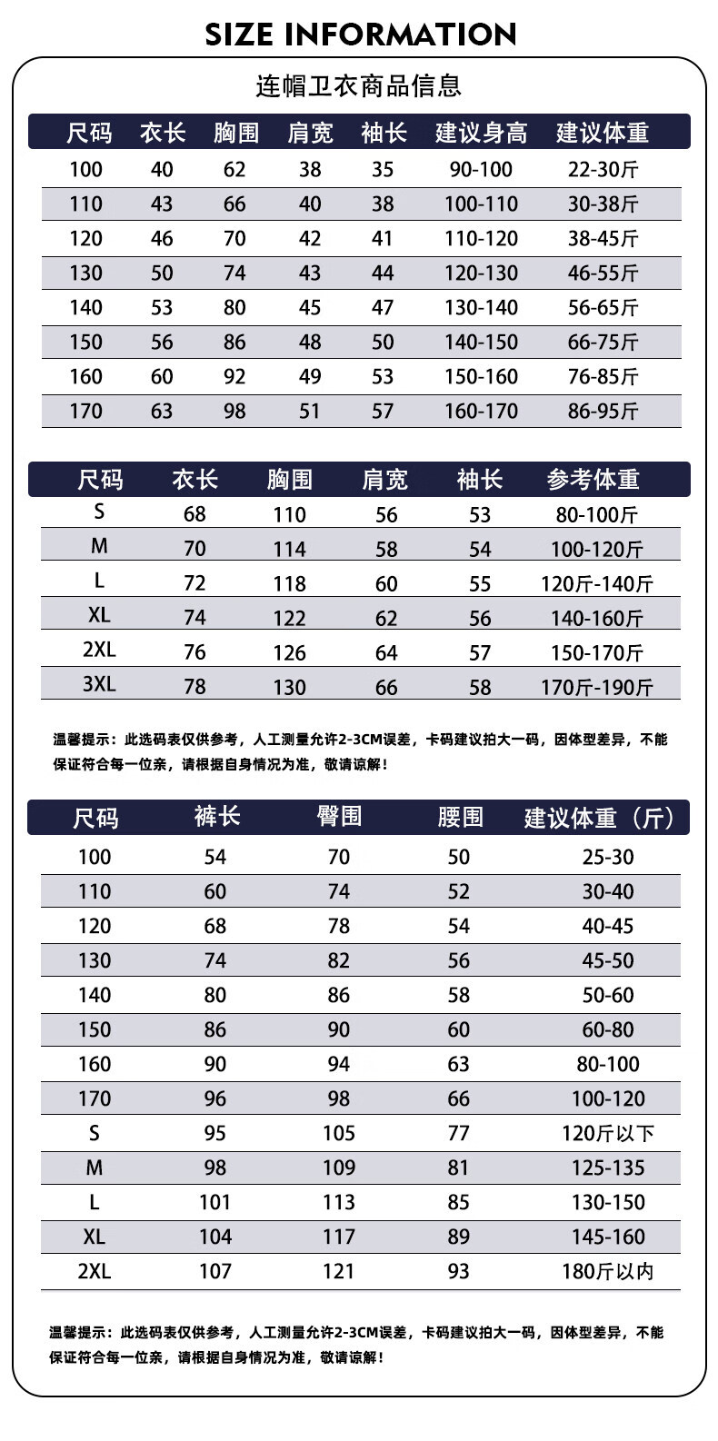 China (cm) 160-165/84-86 165-170 / 88-90 167-172 / 92-96 168-173 / 98-102 170-176 / 106-110