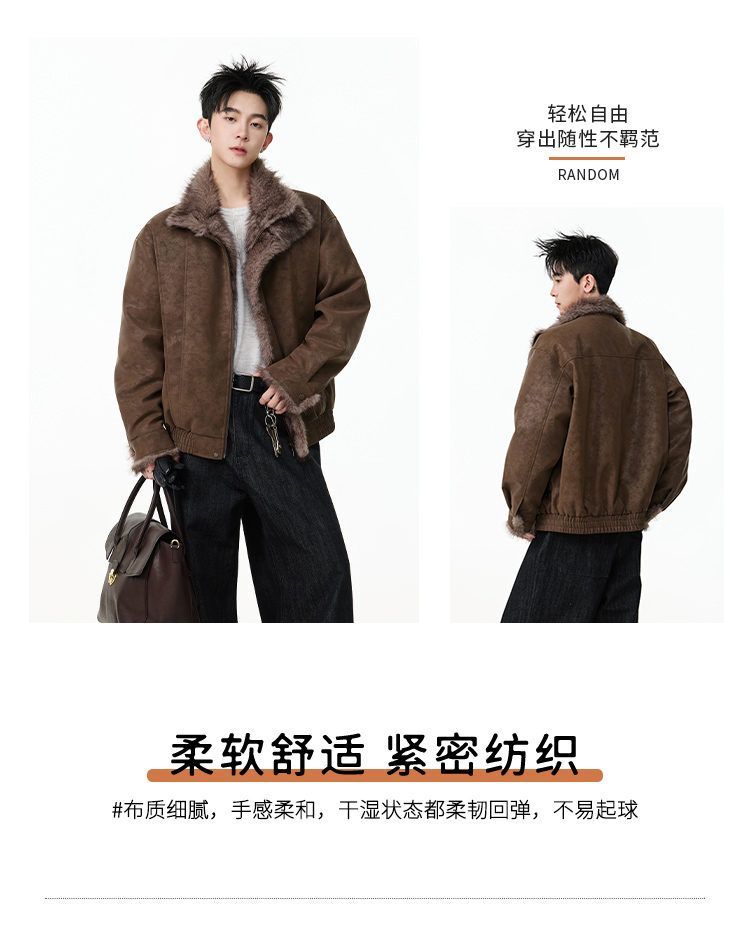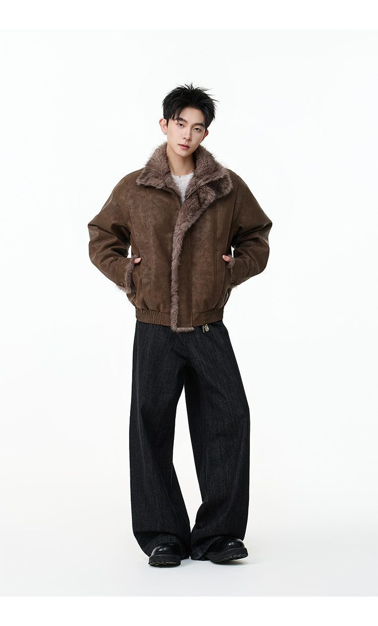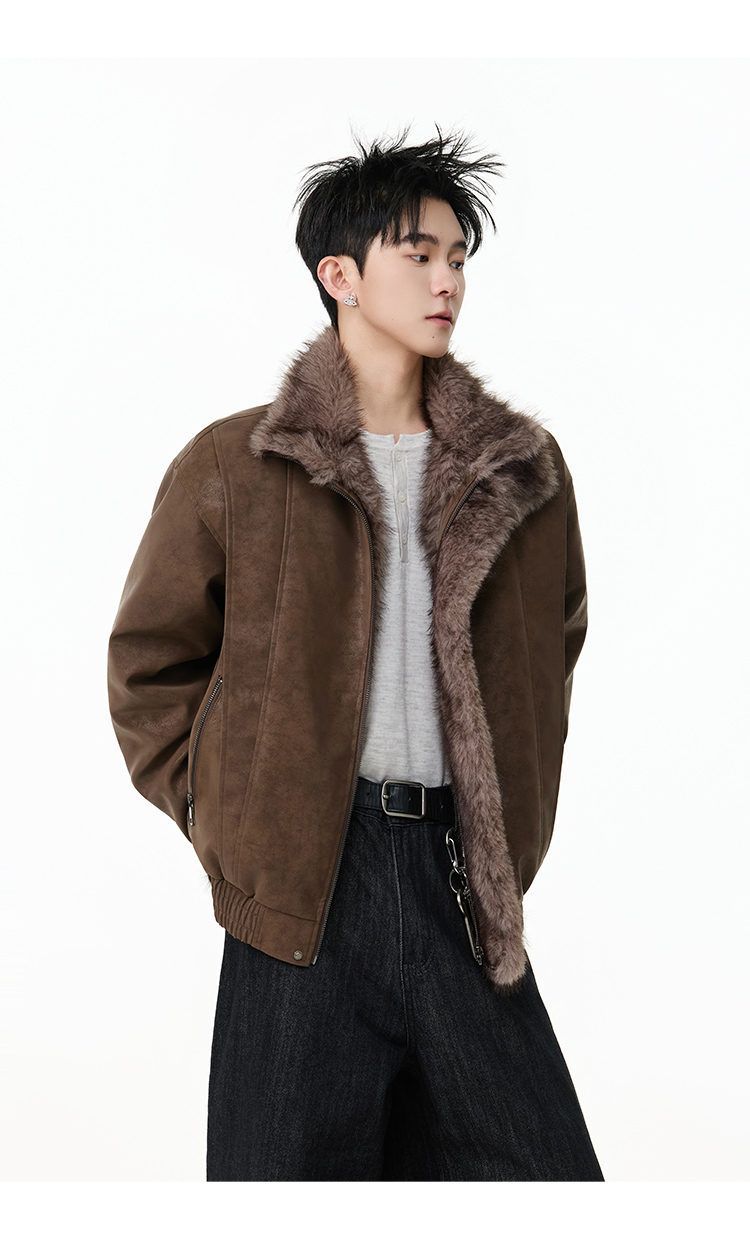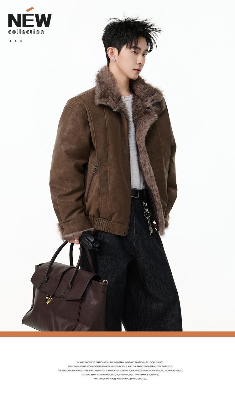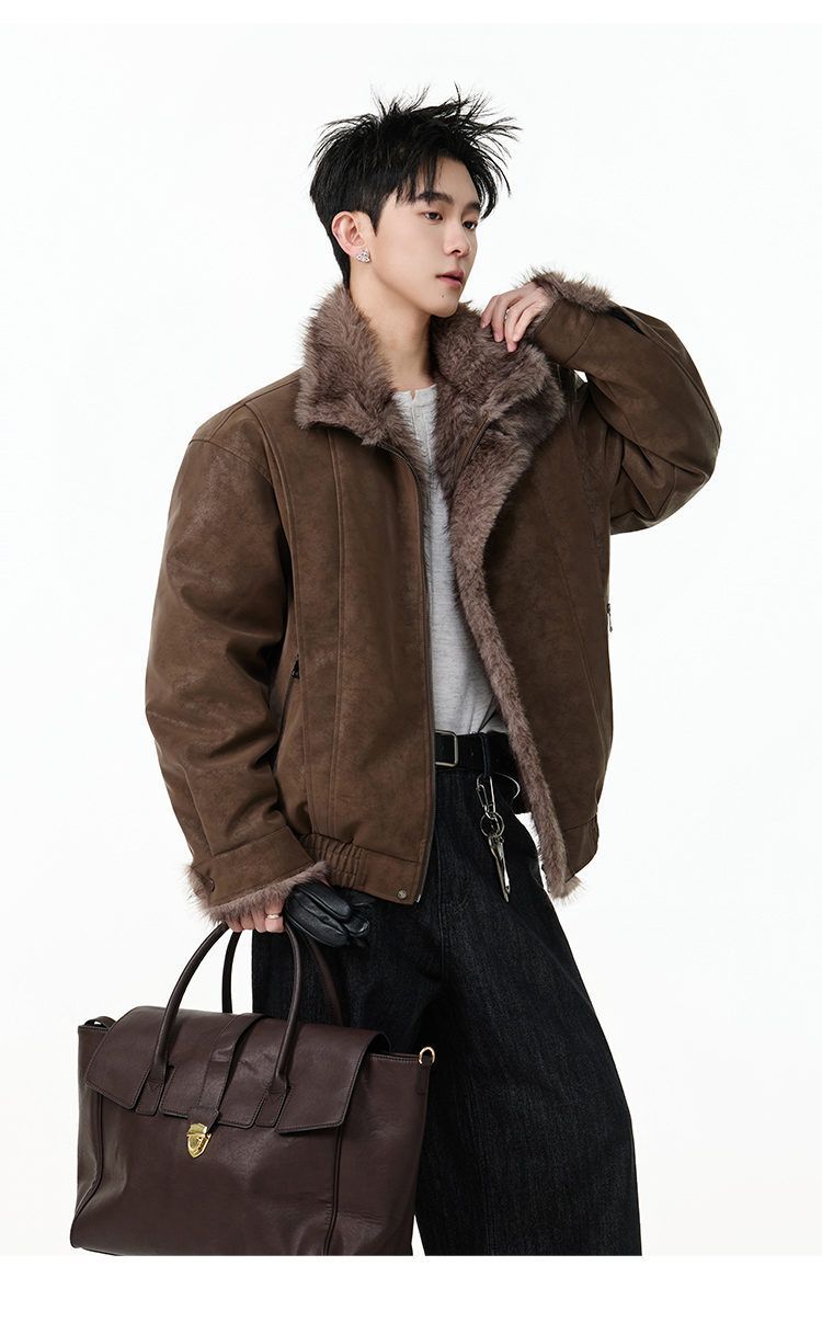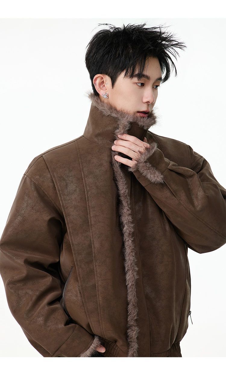 SWAMP AREA right shoulder cut fur all-in-one leather cotton jacket for men winter new retro thickened cotton jacket trendy double layer coffee color 2XL 175-180cm/150-180Jin Jin is equal to 0.5 kg