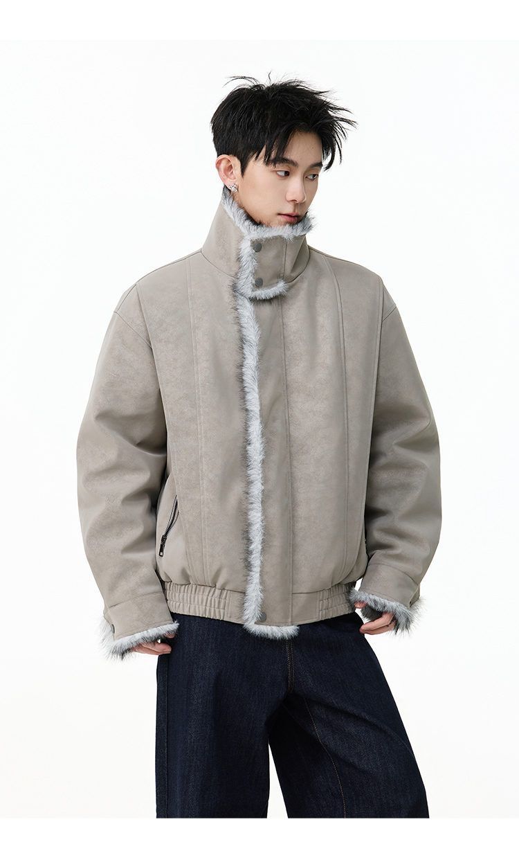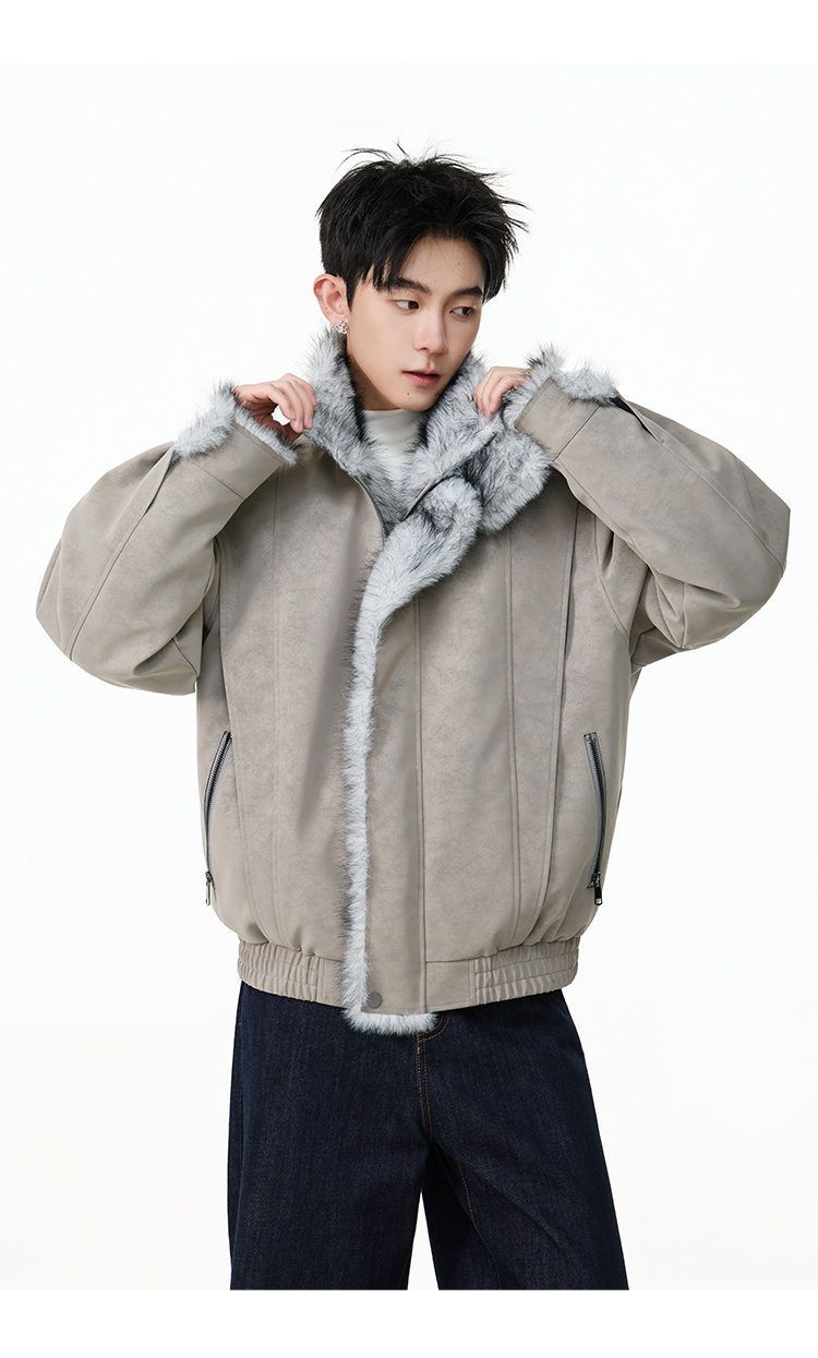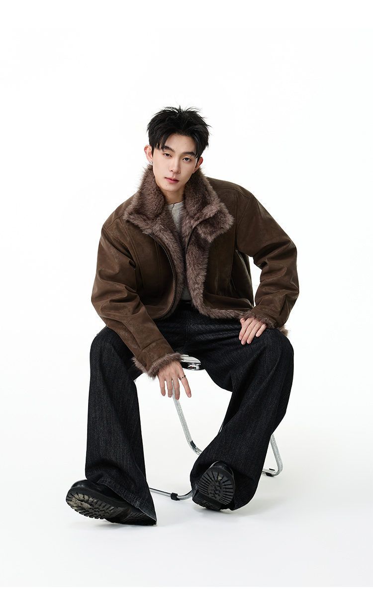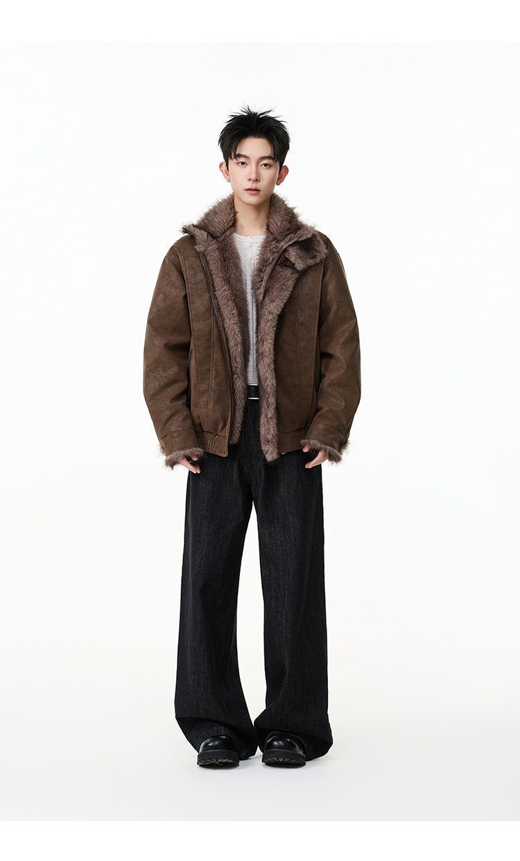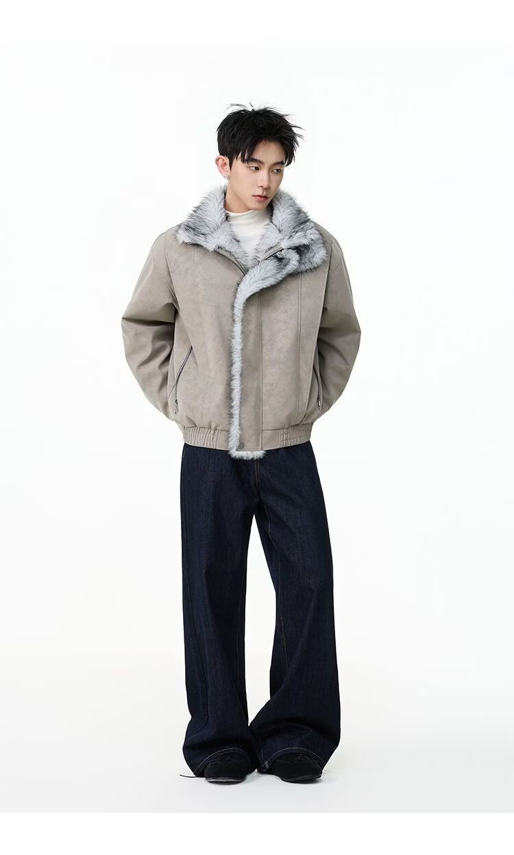 SWAMP AREA right shoulder cut fur all-in-one leather cotton jacket for men winter new retro thickened cotton jacket trendy double layer coffee color 2XL 175-180cm/150-180Jin Jin is equal to 0.5 kg