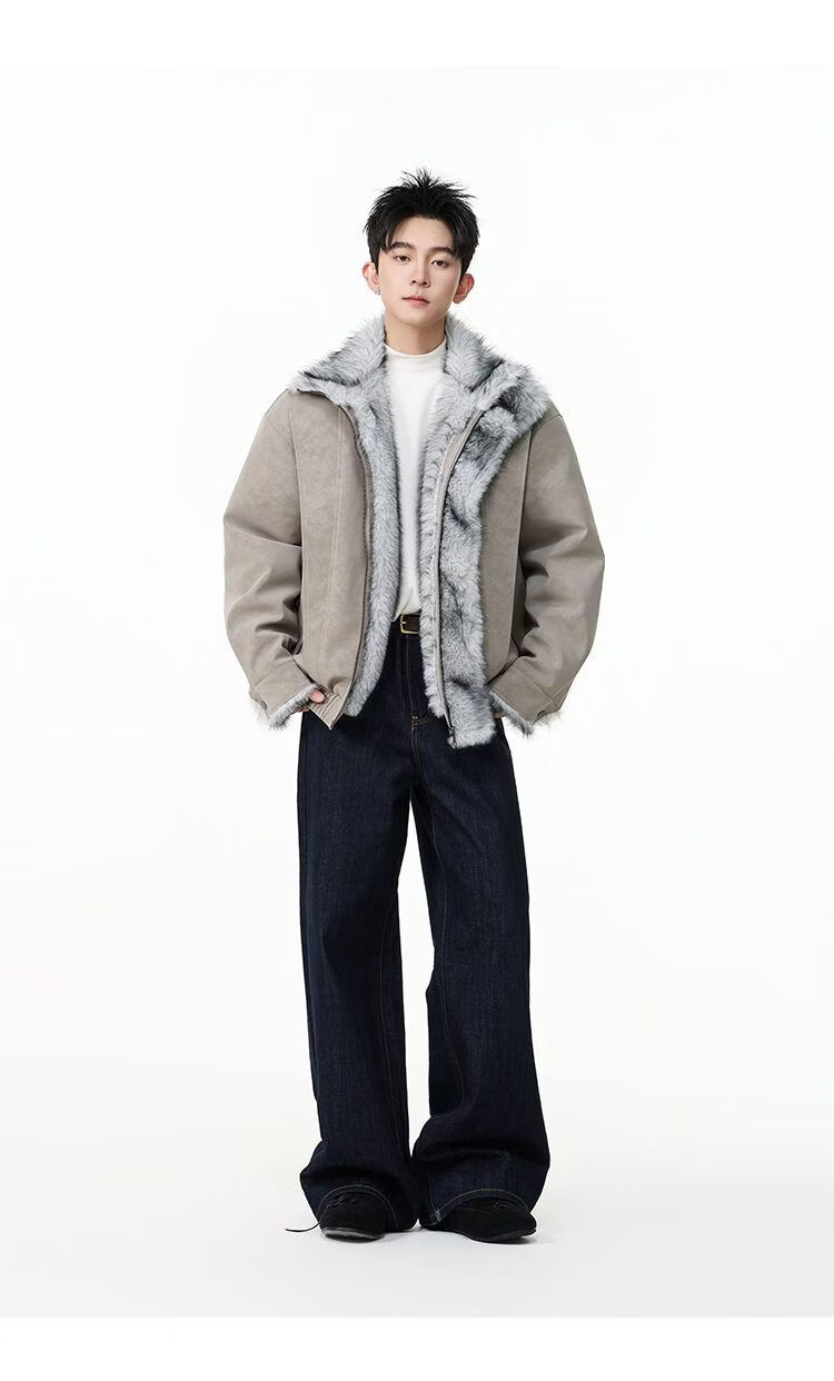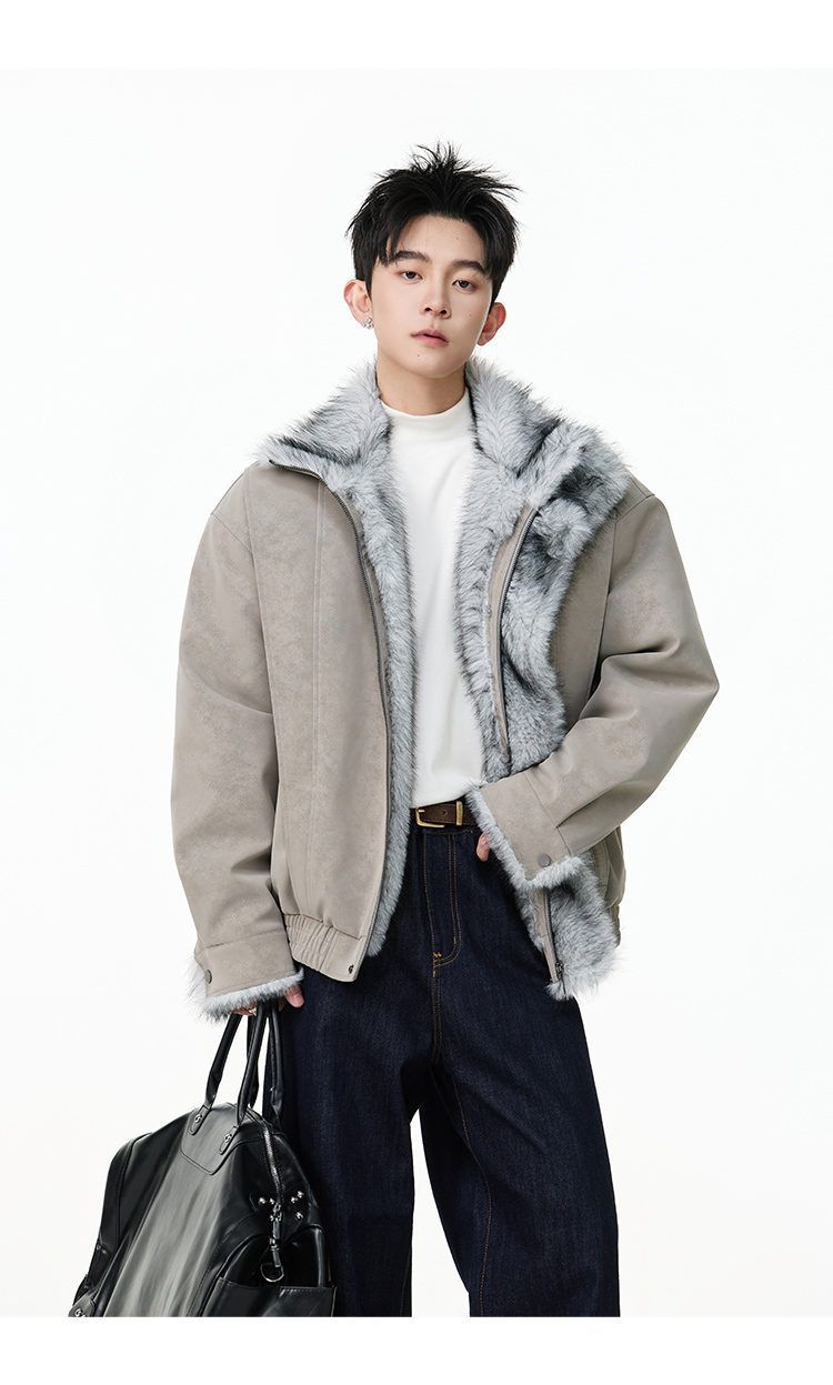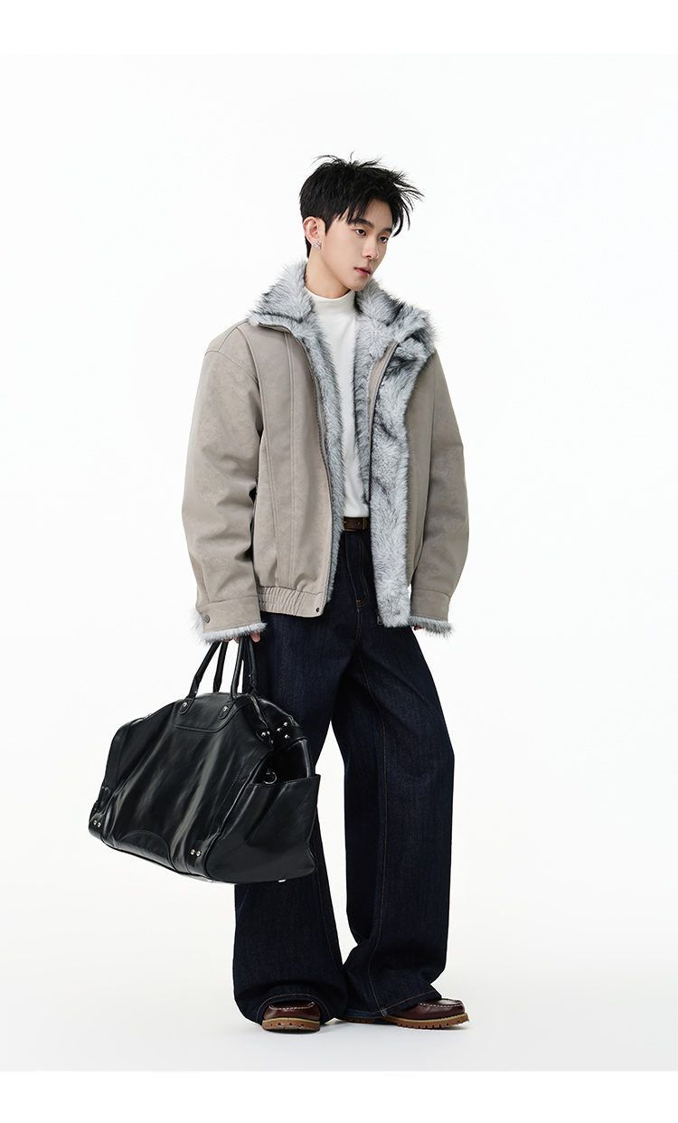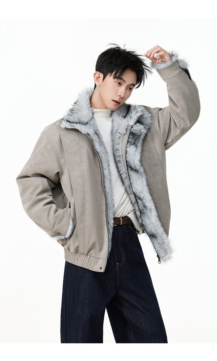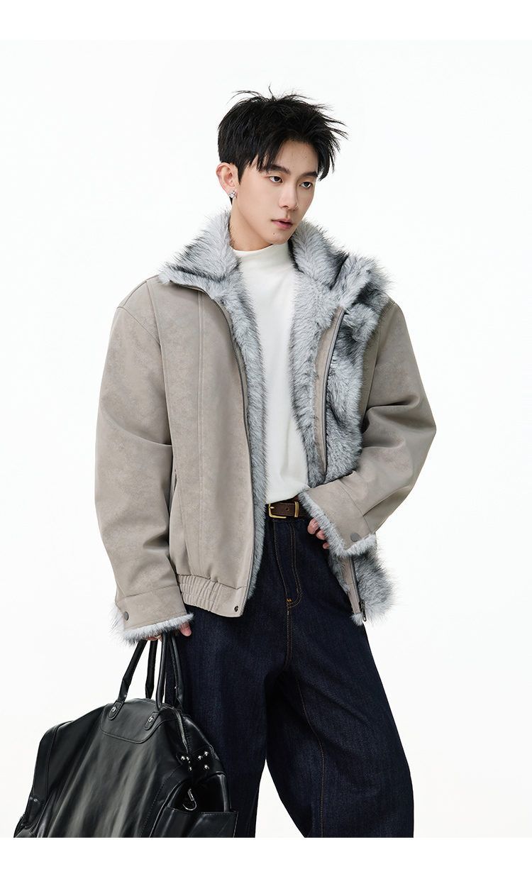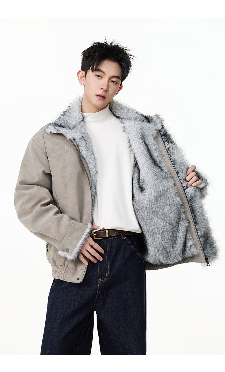 SWAMP AREA right shoulder cut fur all-in-one leather cotton jacket for men winter new retro thickened cotton jacket trendy double layer coffee color 2XL 175-180cm/150-180Jin Jin is equal to 0.5 kg