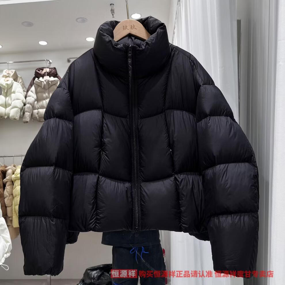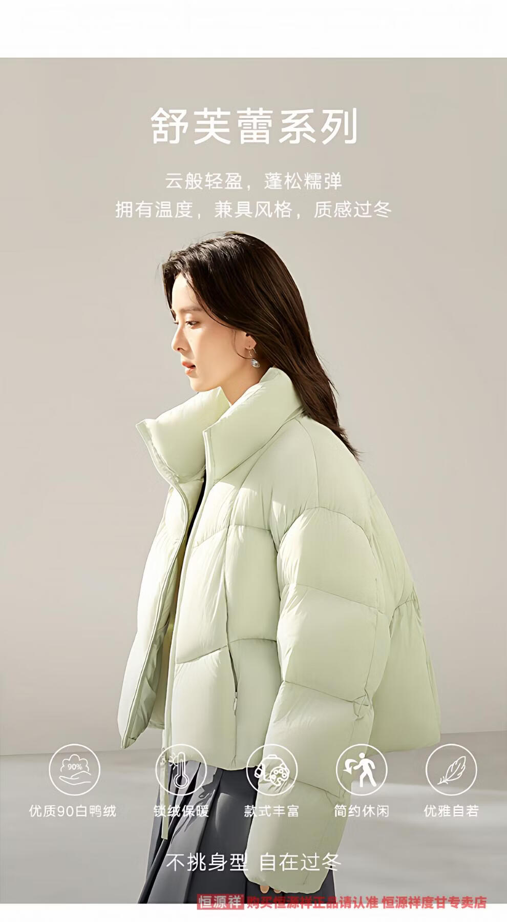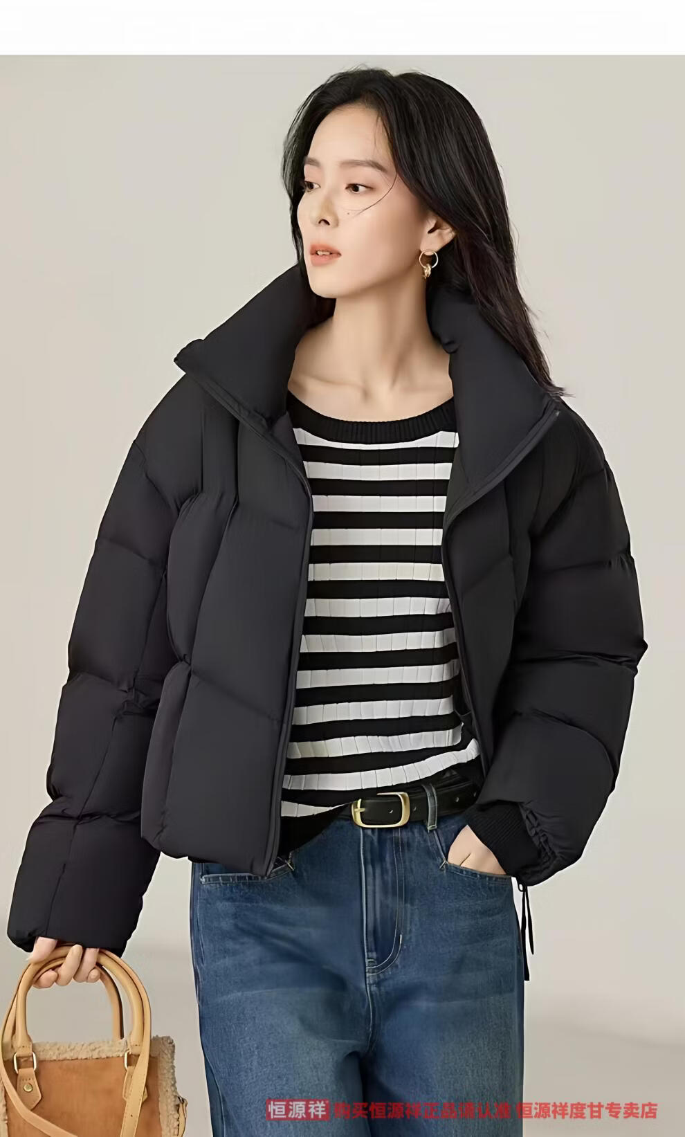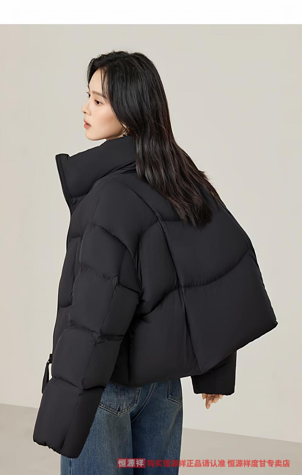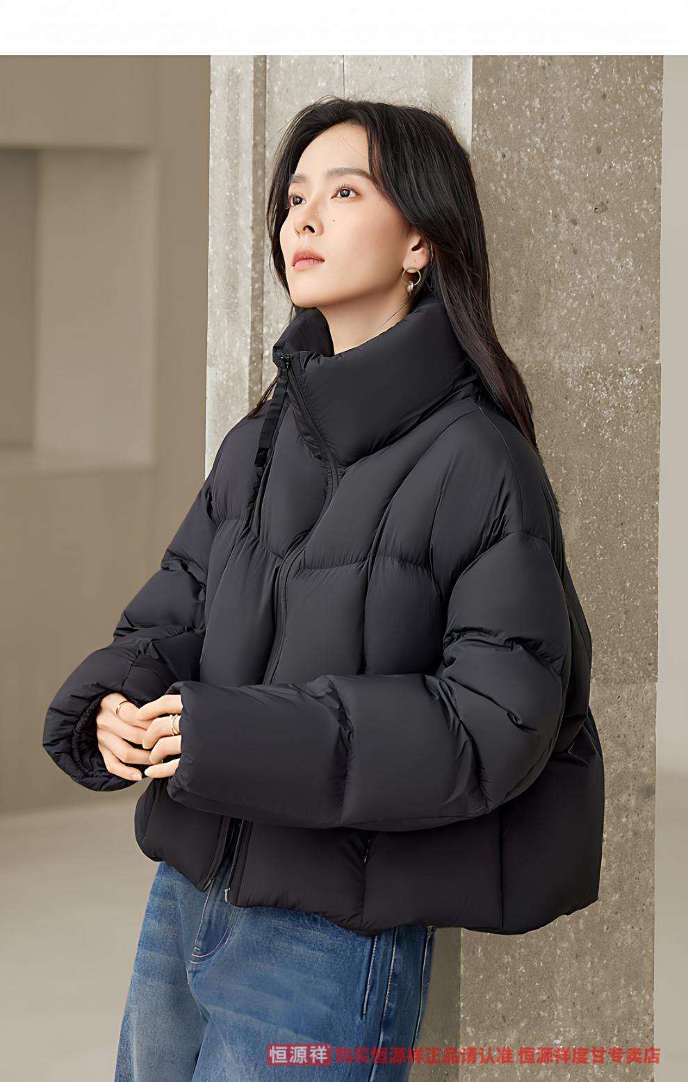 Hengyuanxiang 2025 winter new style new national standard 90 white duck down cloud puff short stand collar down jacket small man jacket black M (recommended 120-150 Jin Jin equals 0.5 kg)