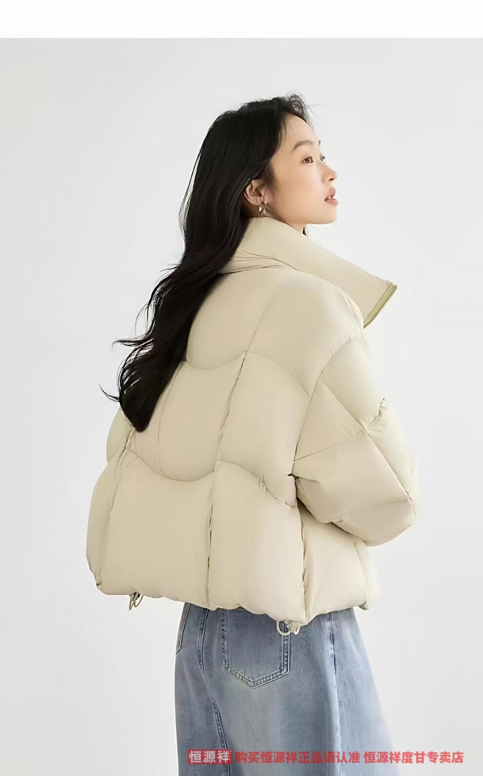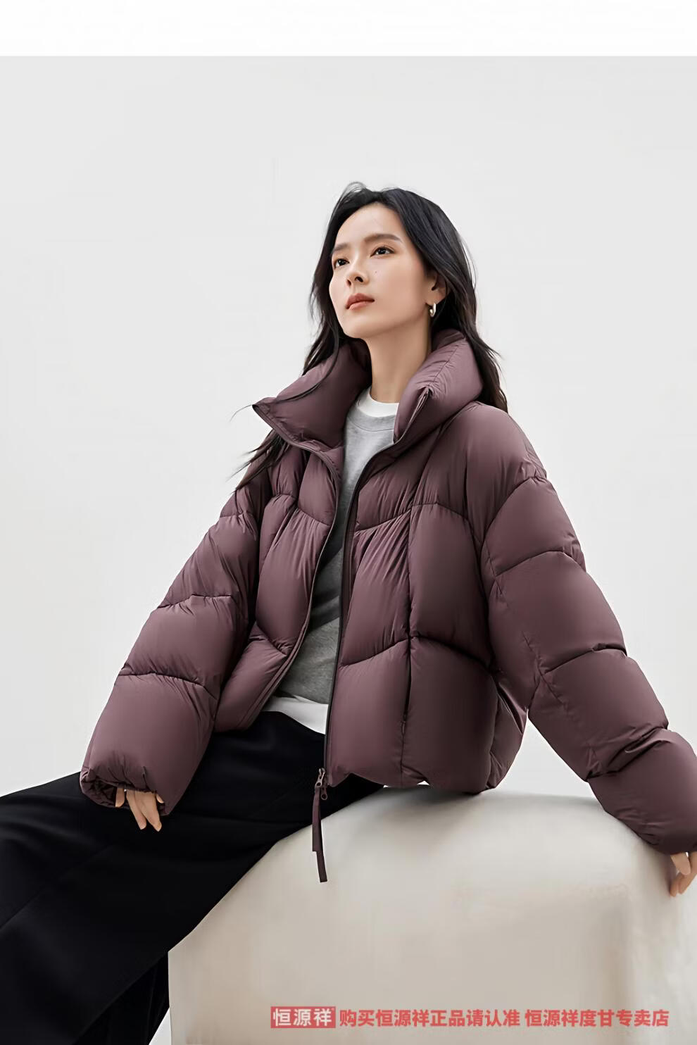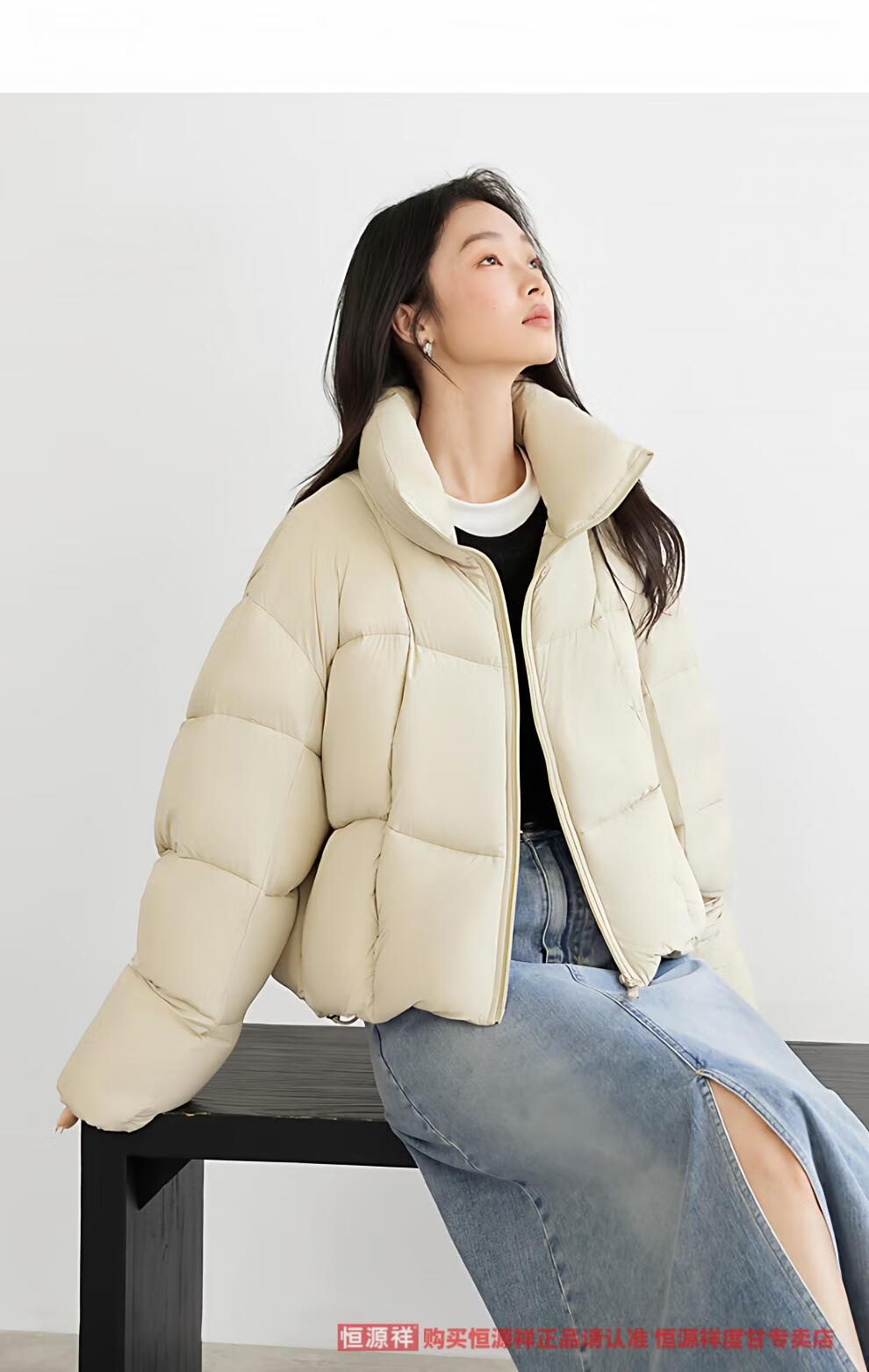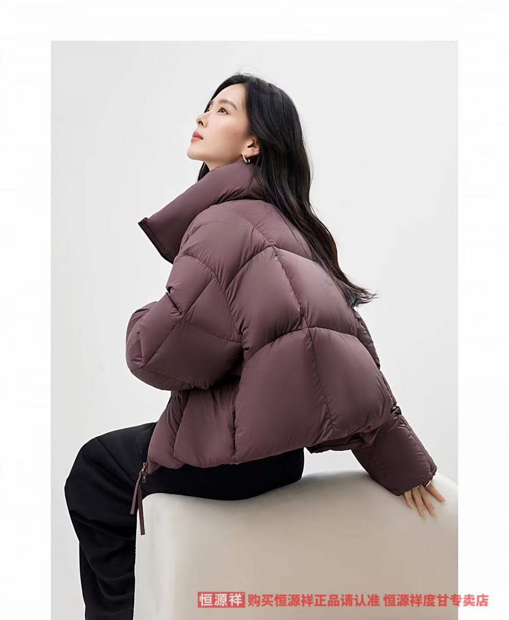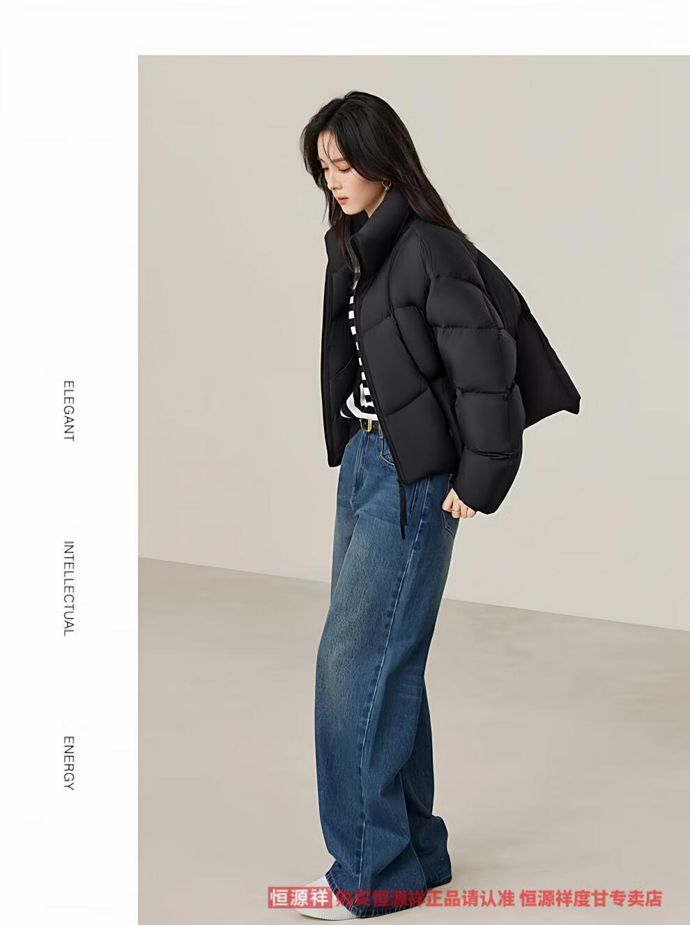 Hengyuanxiang 2025 winter new style new national standard 90 white duck down cloud puff short stand collar down jacket small man jacket black M (recommended 120-150 Jin Jin equals 0.5 kg)