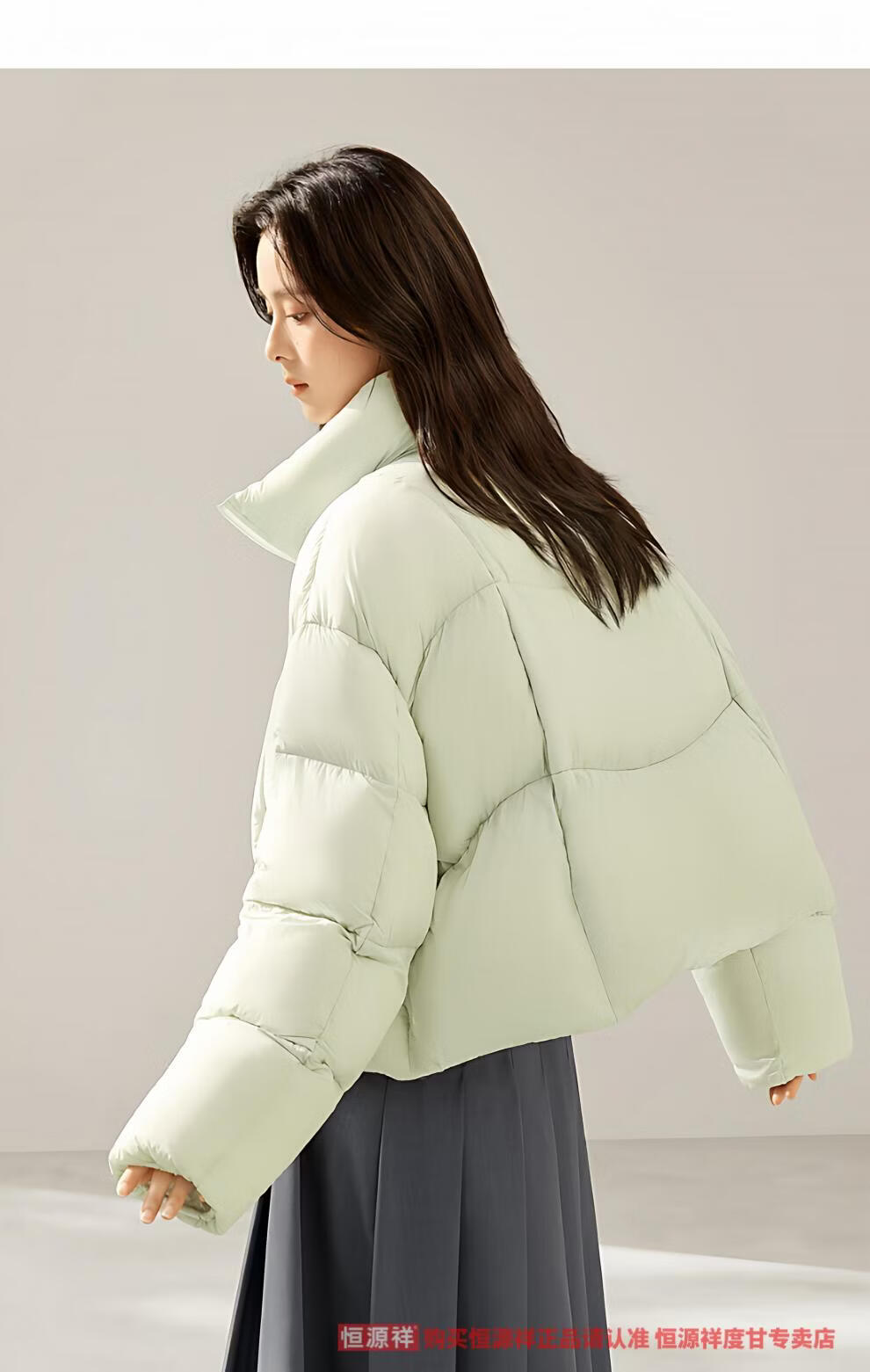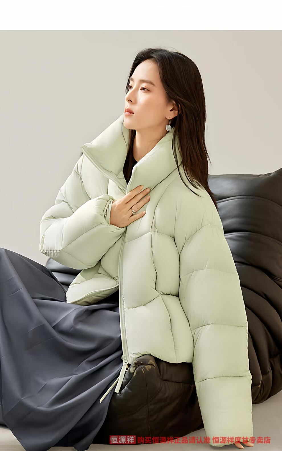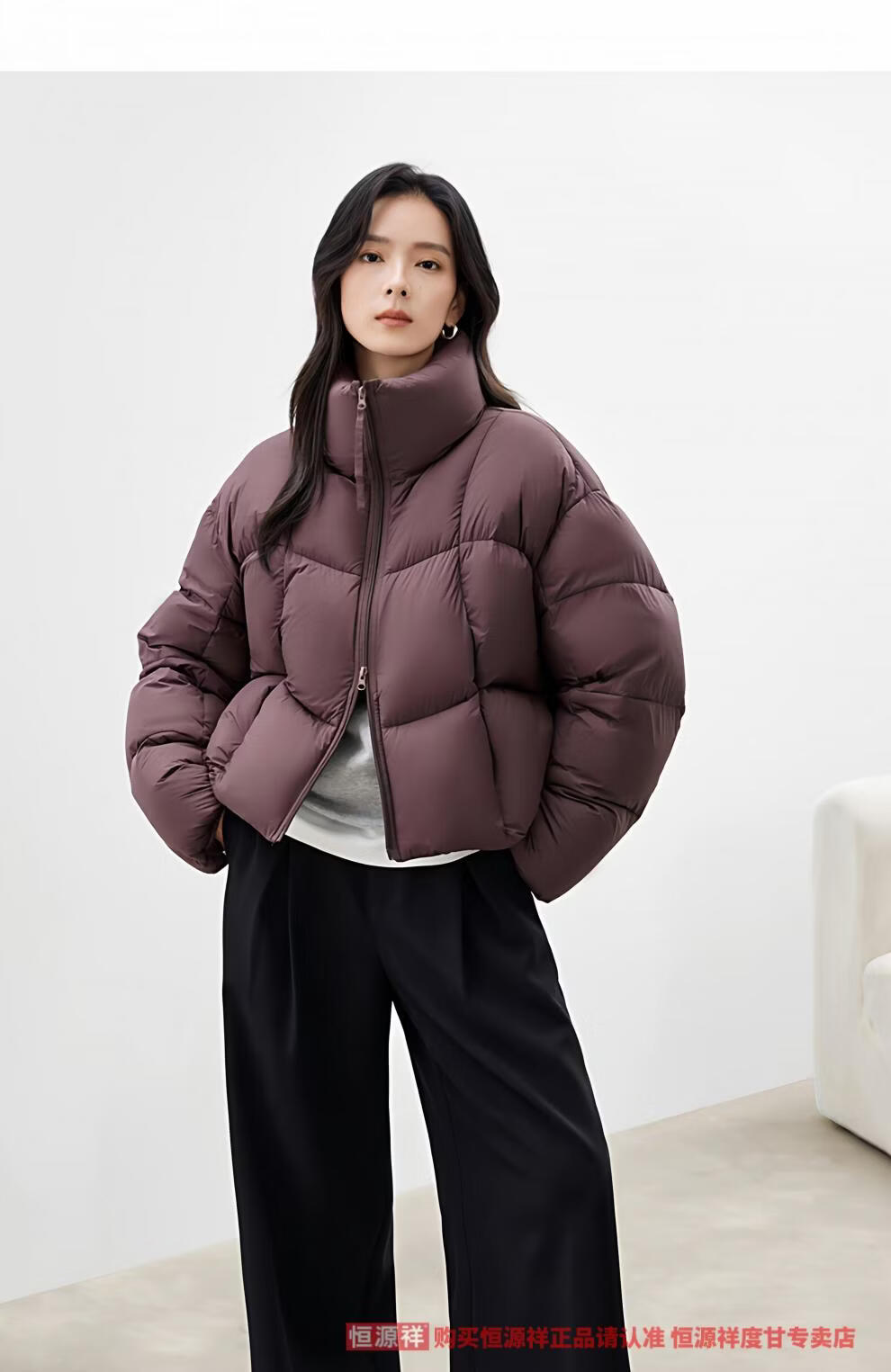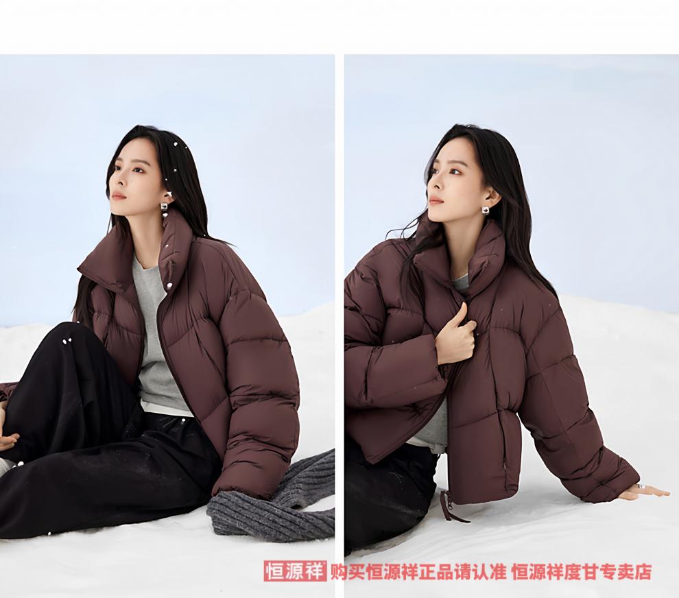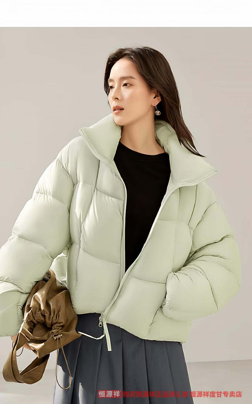Hengyuanxiang 2025 winter new style new national standard 90 white duck down cloud puff short stand collar down jacket small man jacket black M (recommended 120-150 Jin Jin equals 0.5 kg)