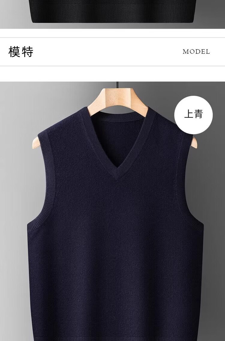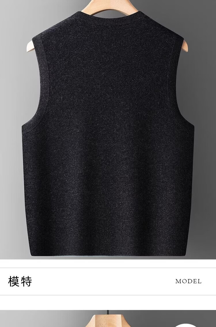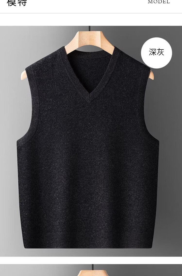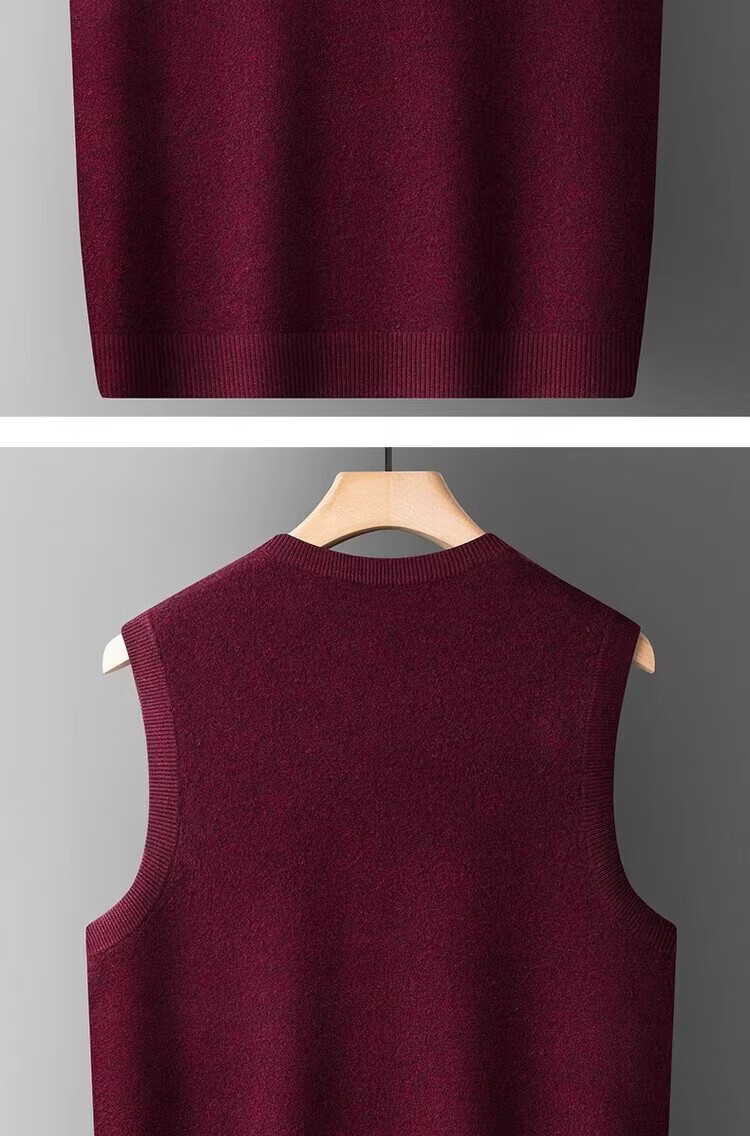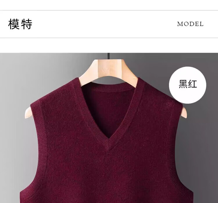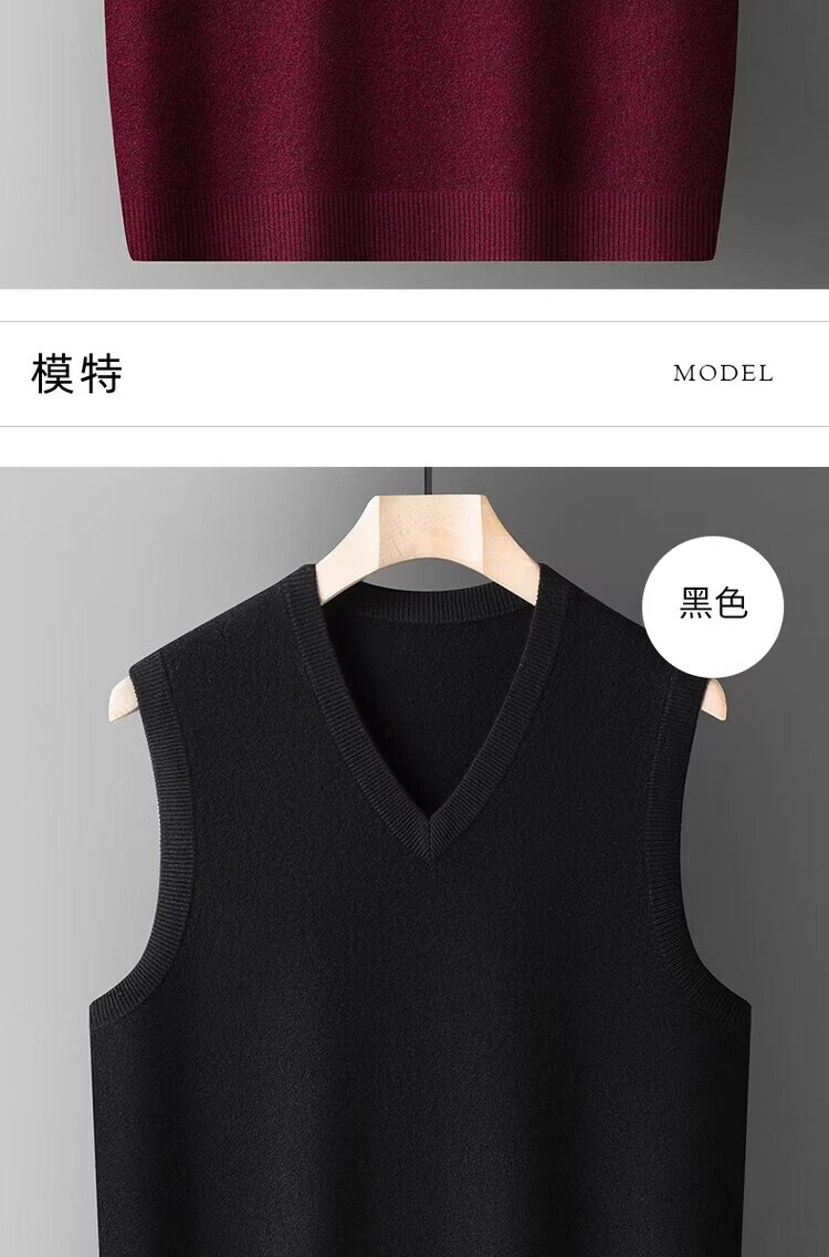 XJSGS international high-end brand woolen sweater vest men's waistcoat V-neck dad wear middle-aged and elderly vest autumn and winter sweater high-end black and red ready stock winter style XL/180/96A