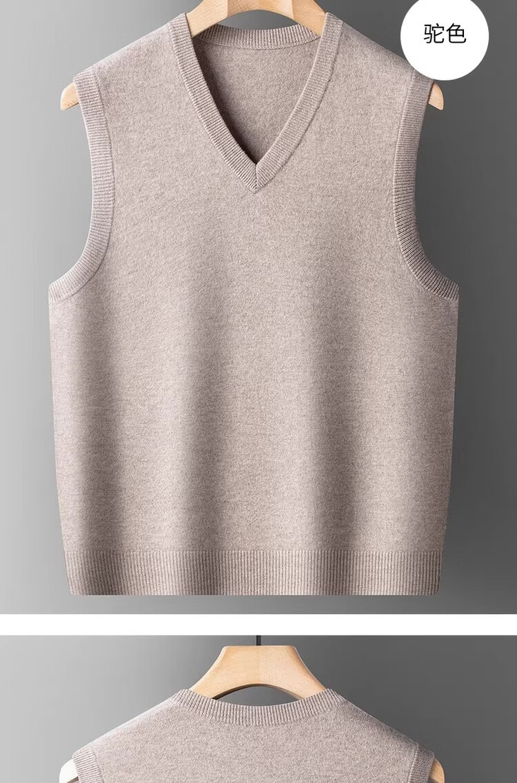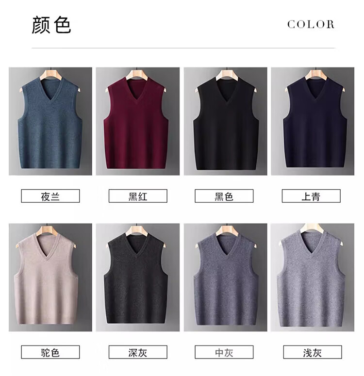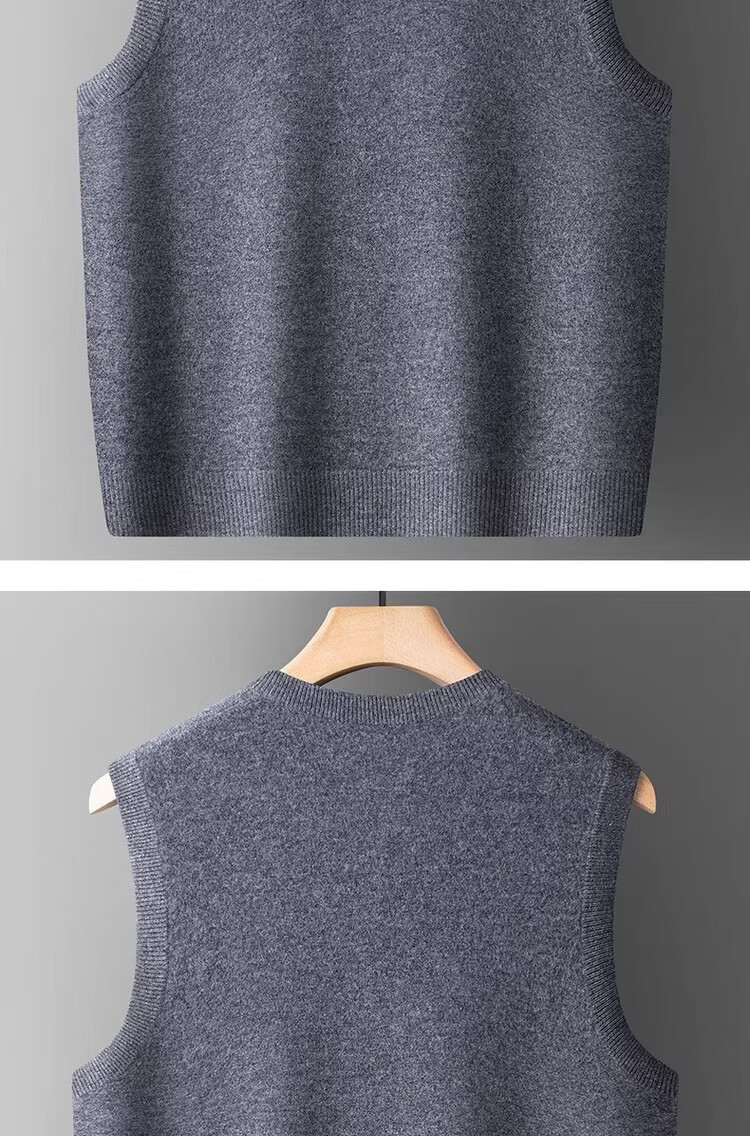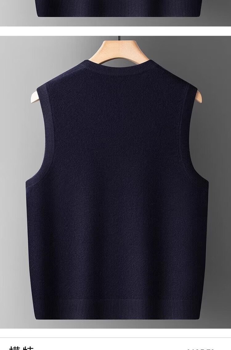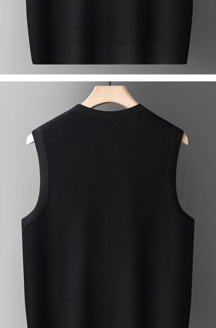 XJSGS international high-end brand woolen sweater vest men's waistcoat V-neck dad wear middle-aged and elderly vest autumn and winter sweater high-end black and red ready stock winter style XL/180/96A