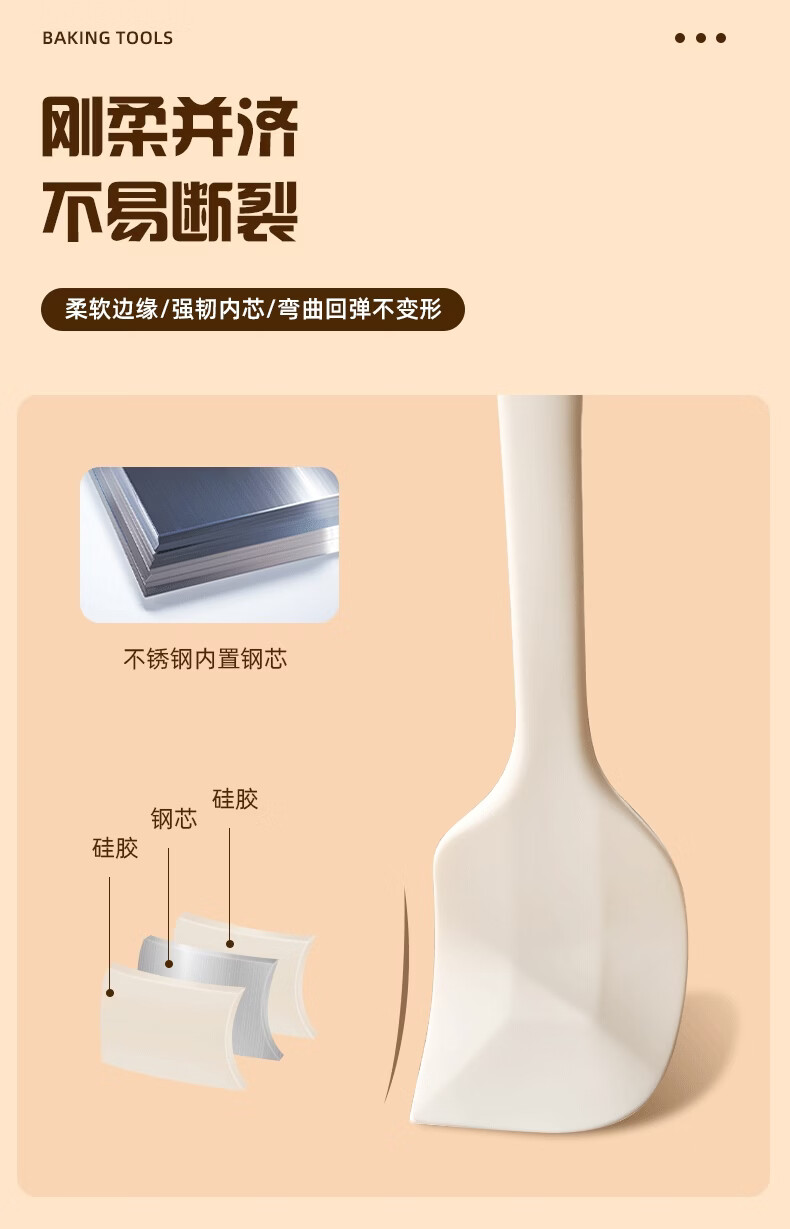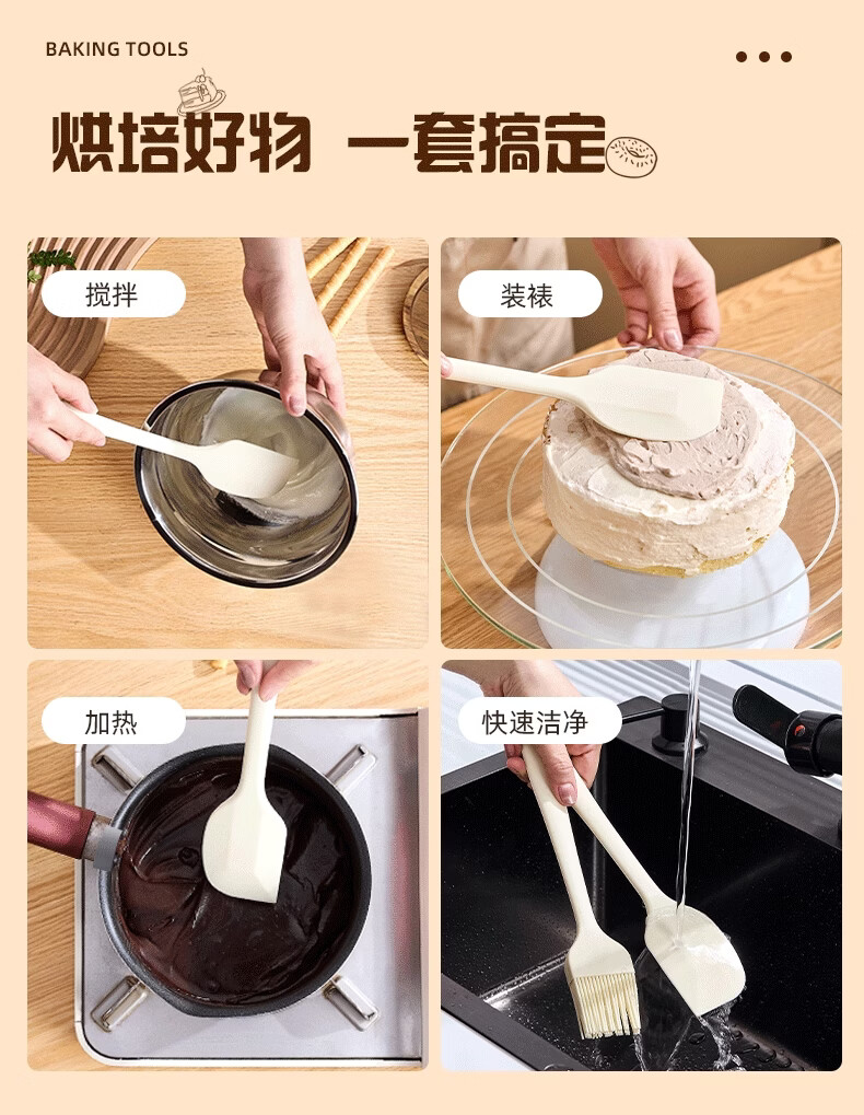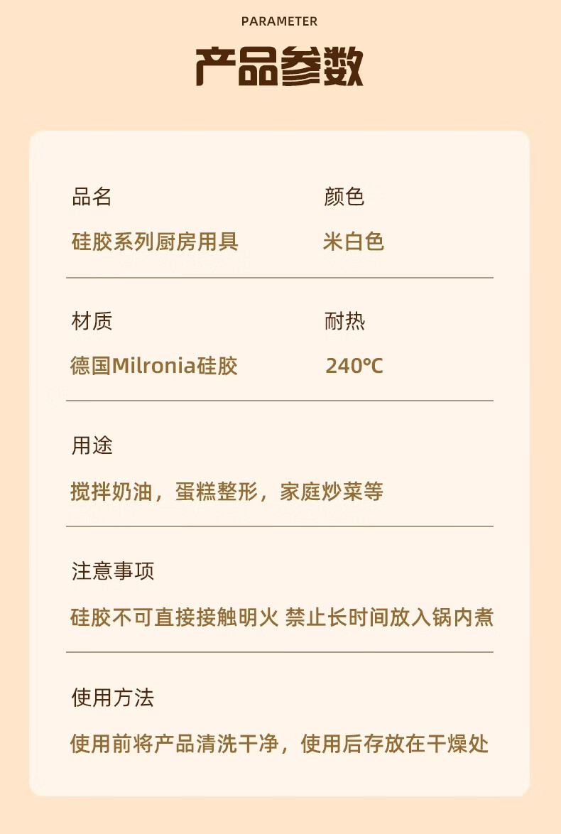 Yusen Yiwen grade cream silicone spatula uses an integrated silicone spatula to scrape and stir the spoon. It is made of maternal and infant grade silicone material.