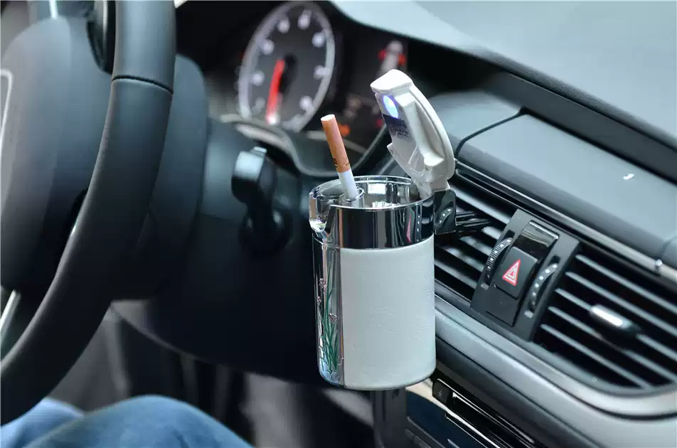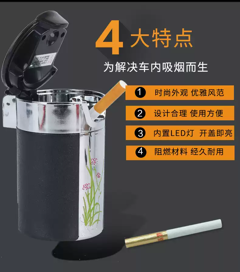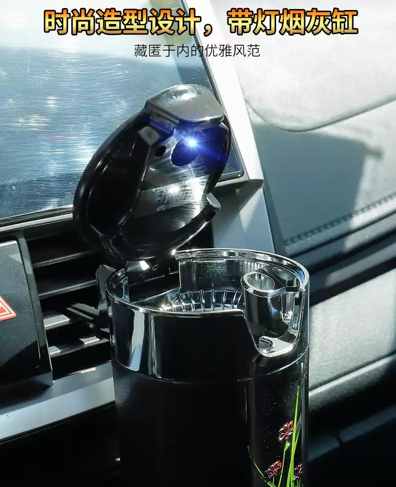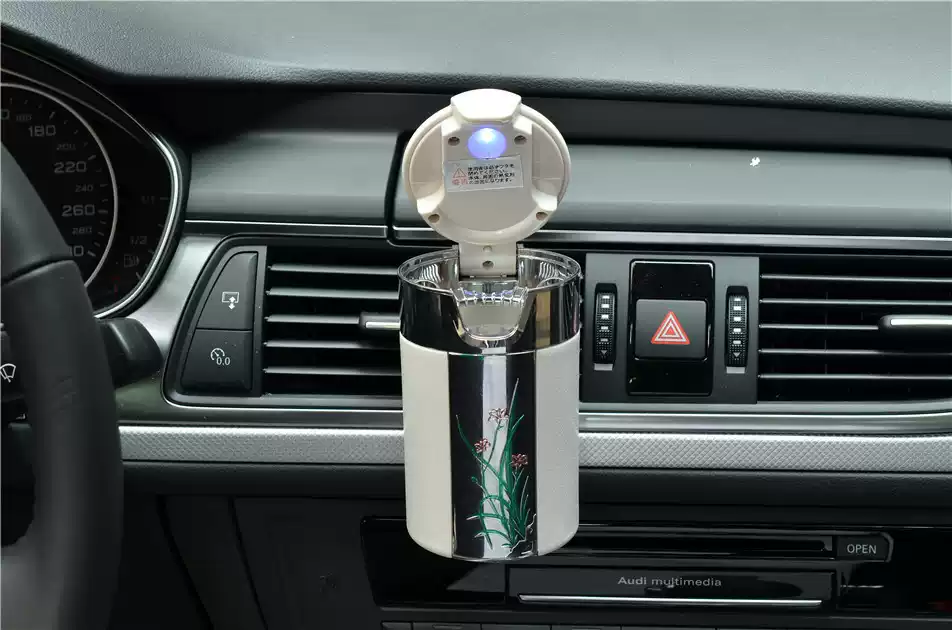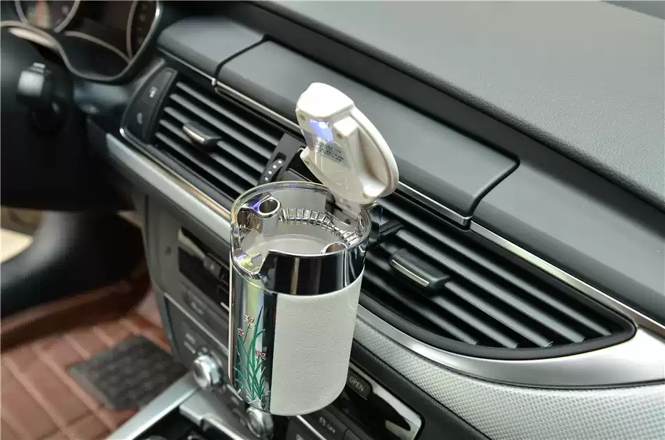 Car ashtray suspended air outlet bracket air conditioning outlet in car with cover to prevent fly ash advanced car ashtray Clivia style white can hang air outlet + ABS flame retardant + LED light