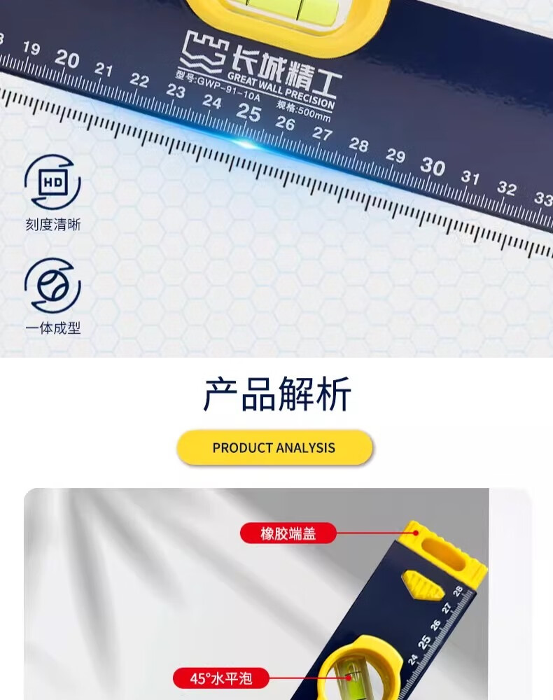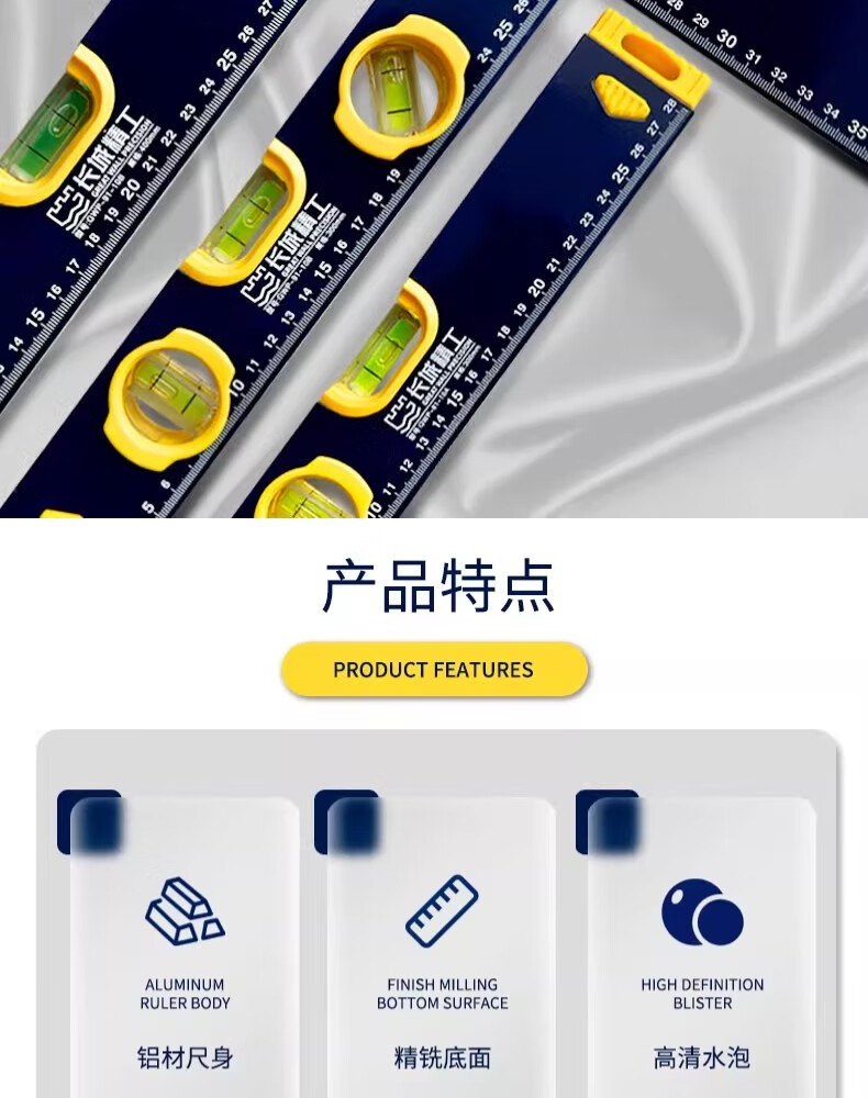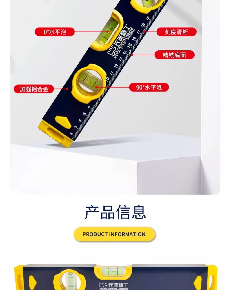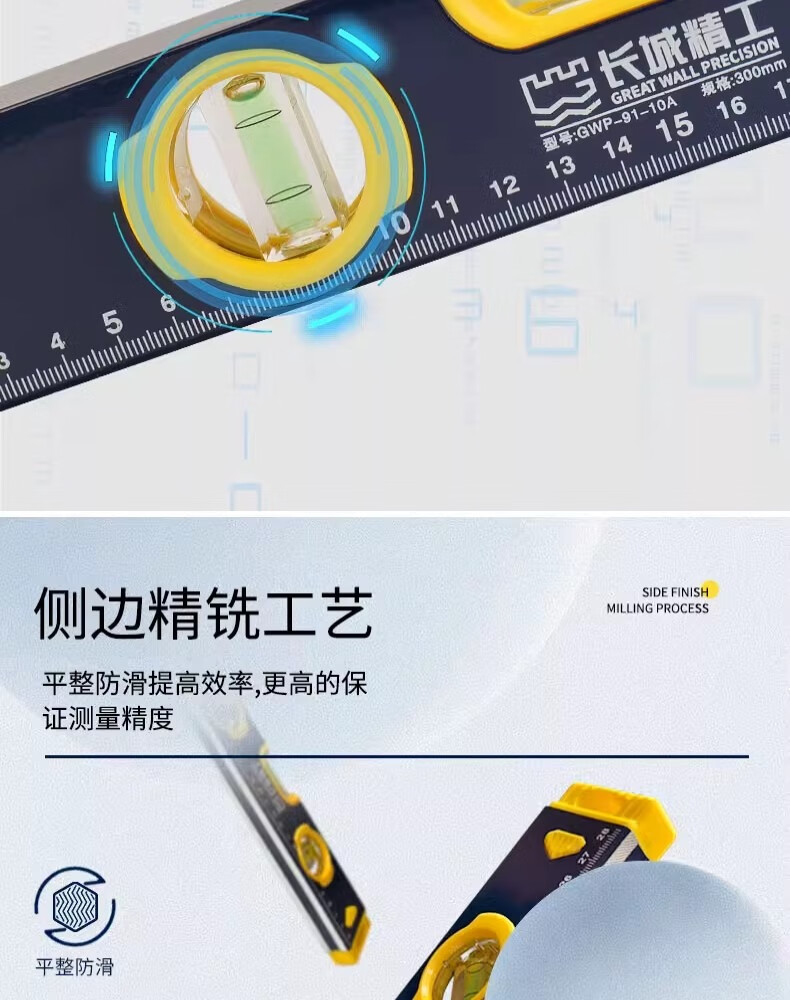 Great Wall Seiko spirit level aluminum alloy high-precision industrial grade level ruler woodworking home decoration acceptance measurement maintenance ruler three blister 2000mm (186262)