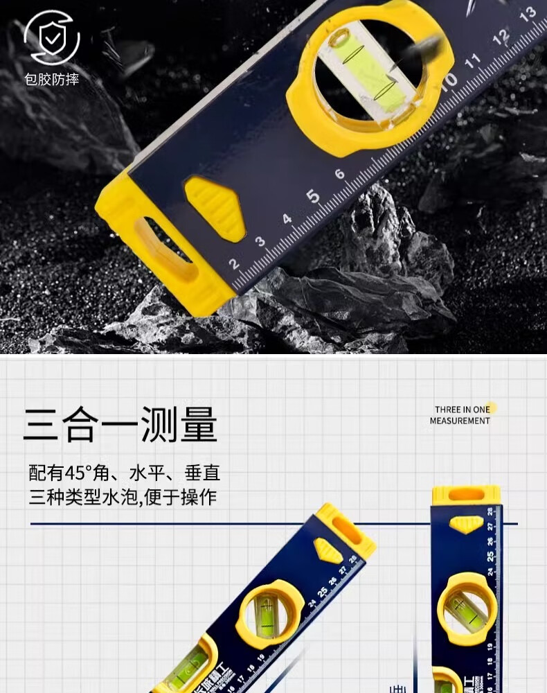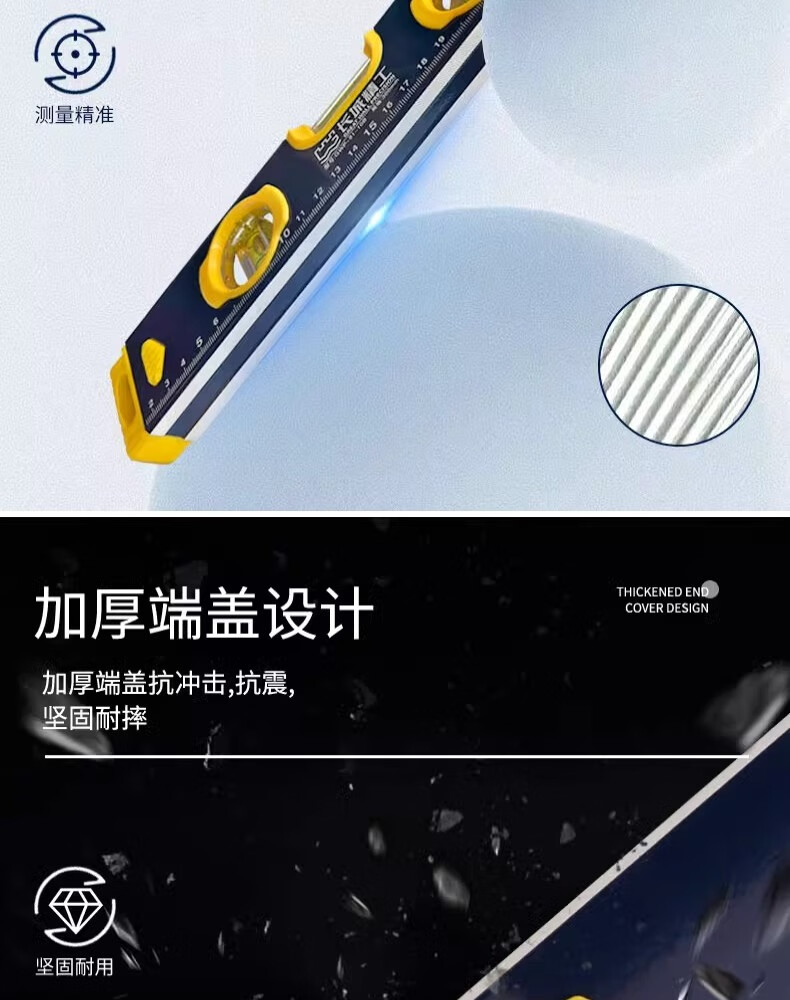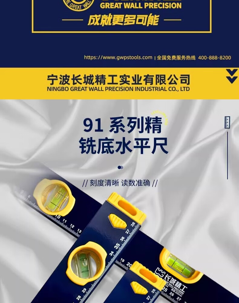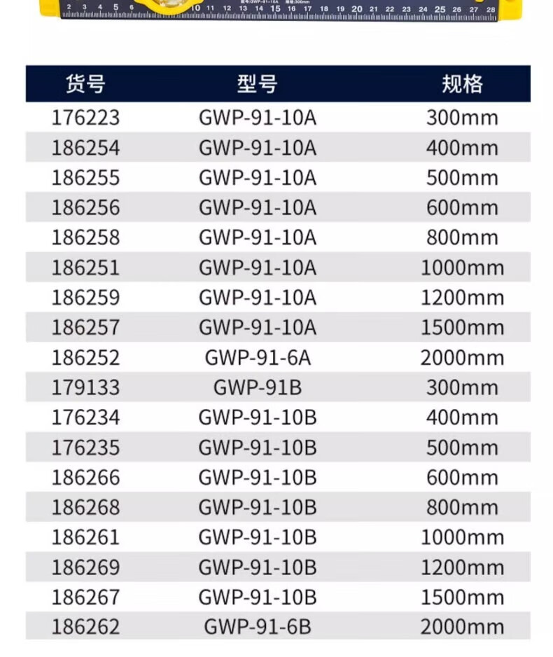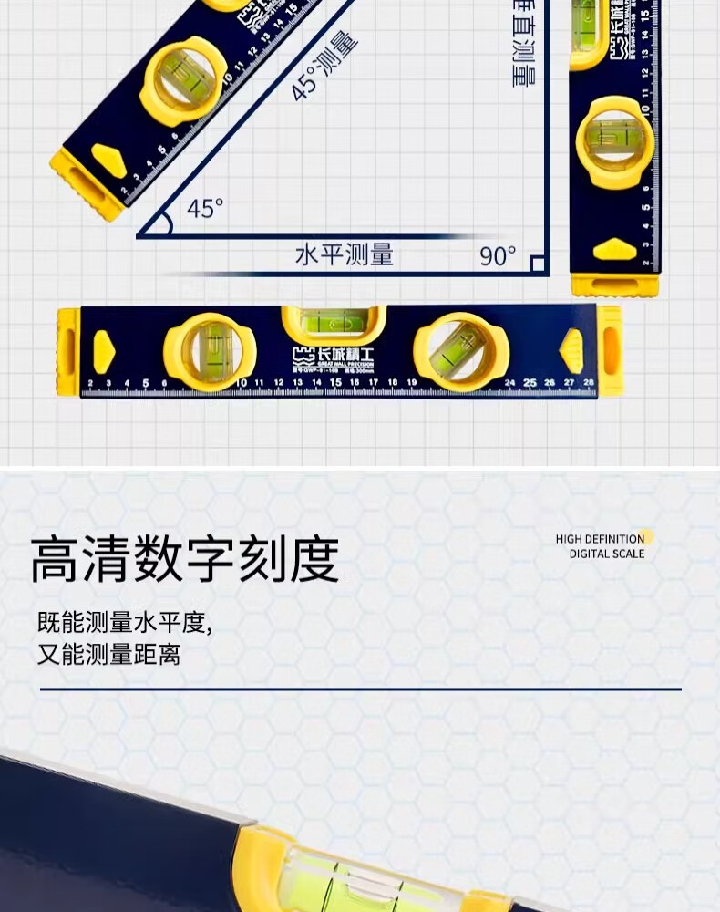 Great Wall Seiko spirit level aluminum alloy high-precision industrial grade level ruler woodworking home decoration acceptance measurement maintenance ruler three blister 2000mm (186262)