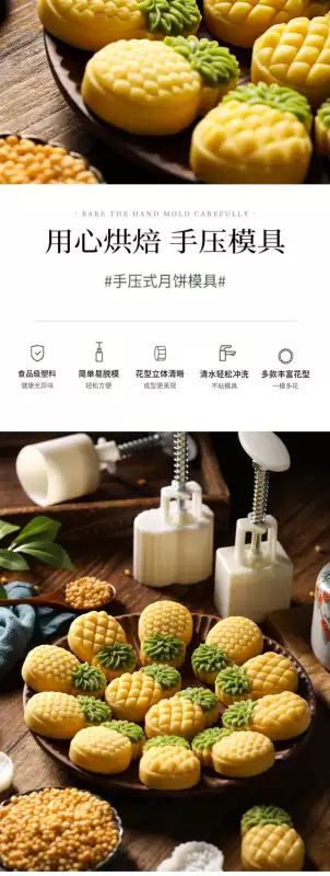 Yusenyi Pineapple Pineapple Cake Mooncake Mold Mini Mung Bean Cake Press Ice Skin Cantonese Purple Sweet Potato Yam Cake Food Embossed 30g pineapple and pineapple mold 1 mold 4 pieces 30g pineapple pineapple mold 1 mold 4 pieces 30g