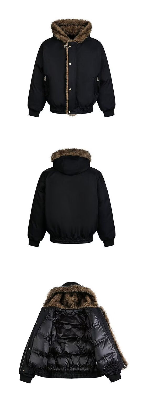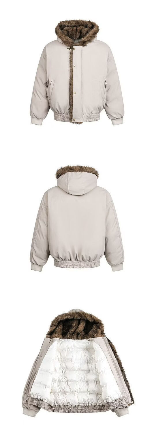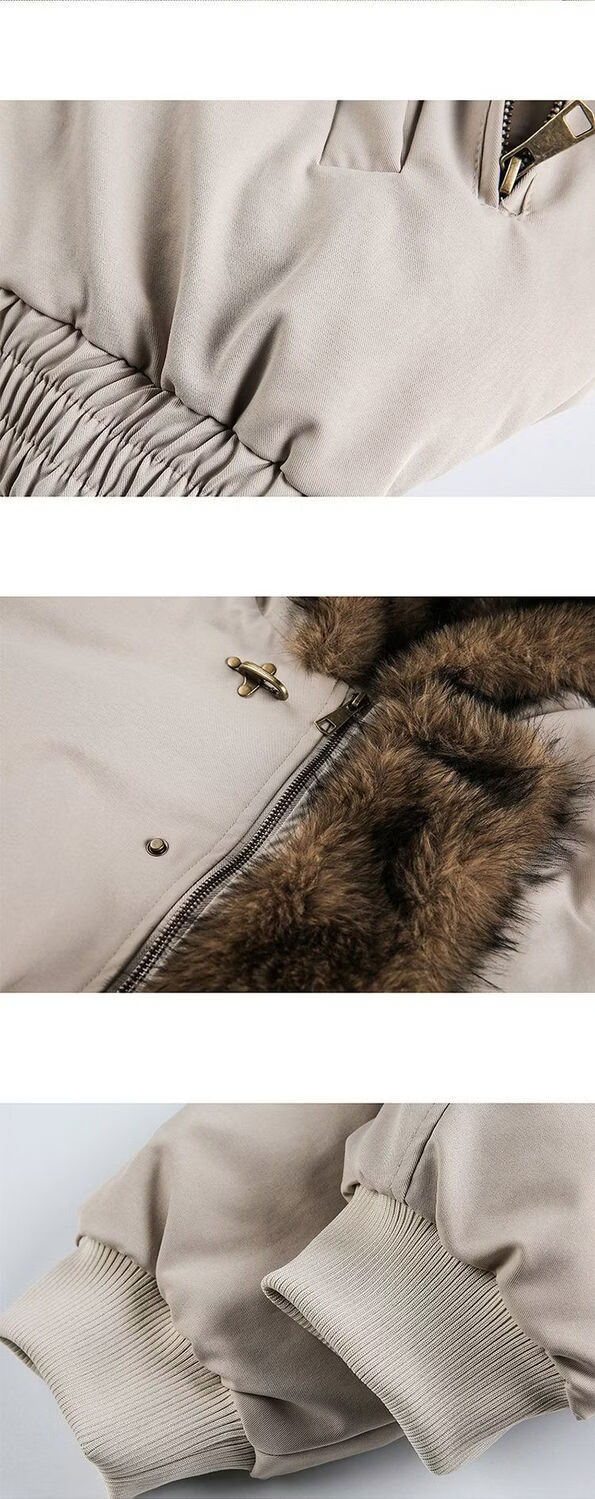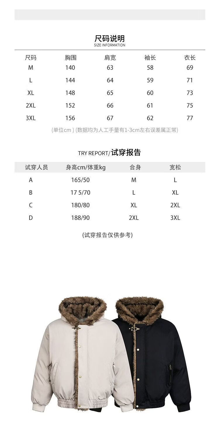 SWAMP AREA trendy brand high-end handsome fur collar spliced mountain carving jacket men's winter American thickened aircraft button hooded cotton coat apricot aircraft button hooded M 160-170cm weight 90-120Jin Jin is equal to 0.5 kg
