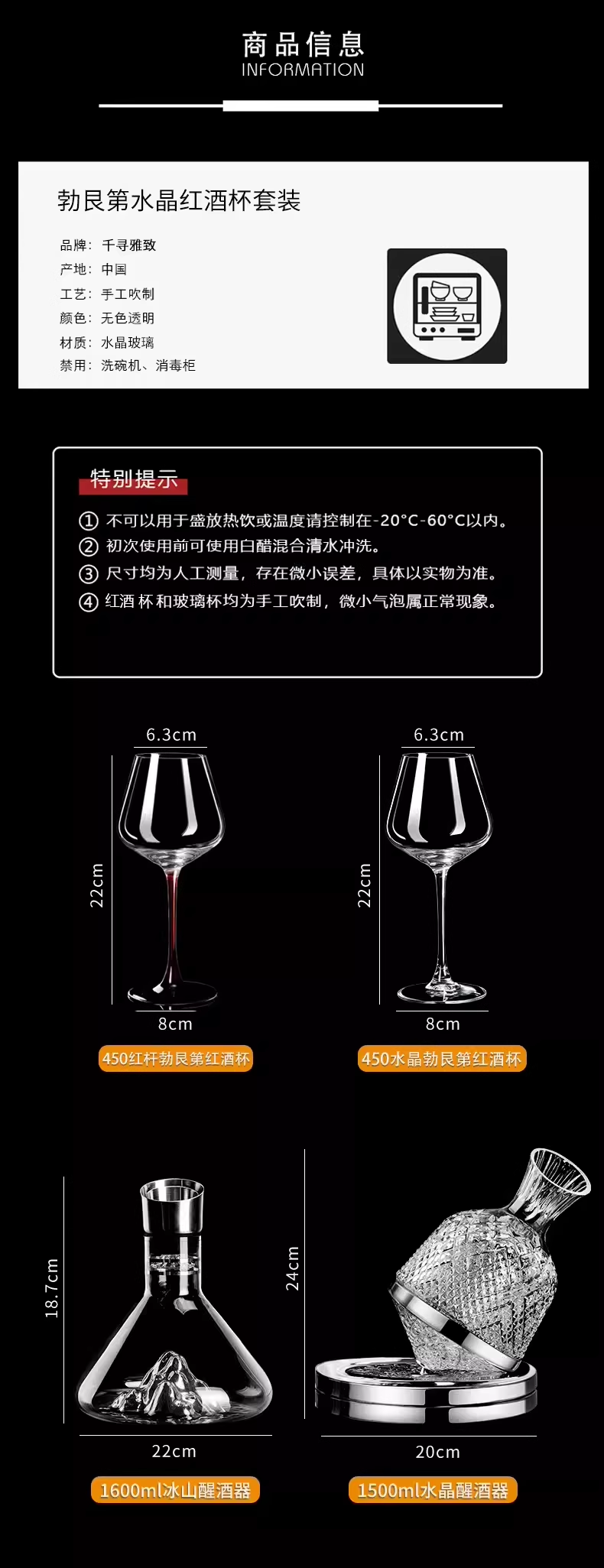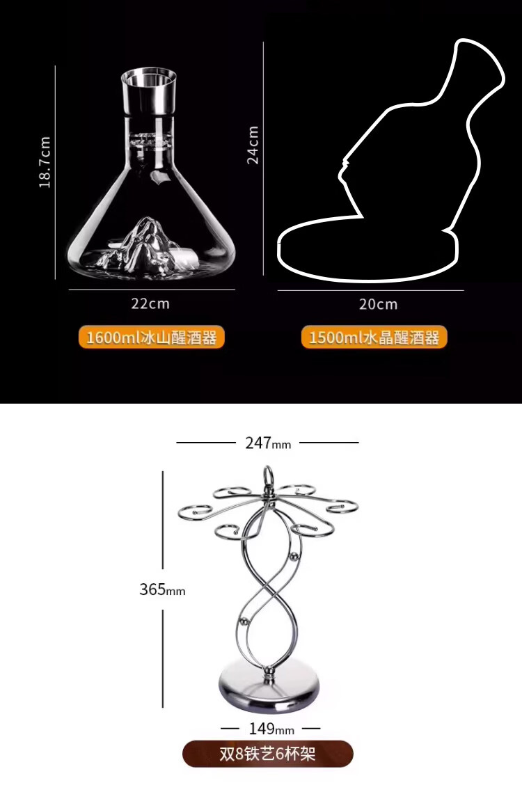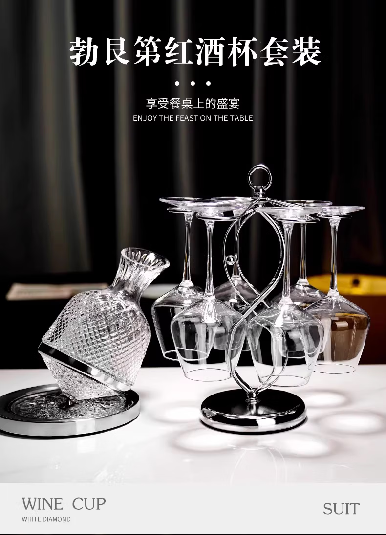 Jingyan European light luxury high-end red wine glass set decanter crystal burgundy goblet wine glass home set 450ml transparent red wine glass 6 pieces + 8-shaped cup 1