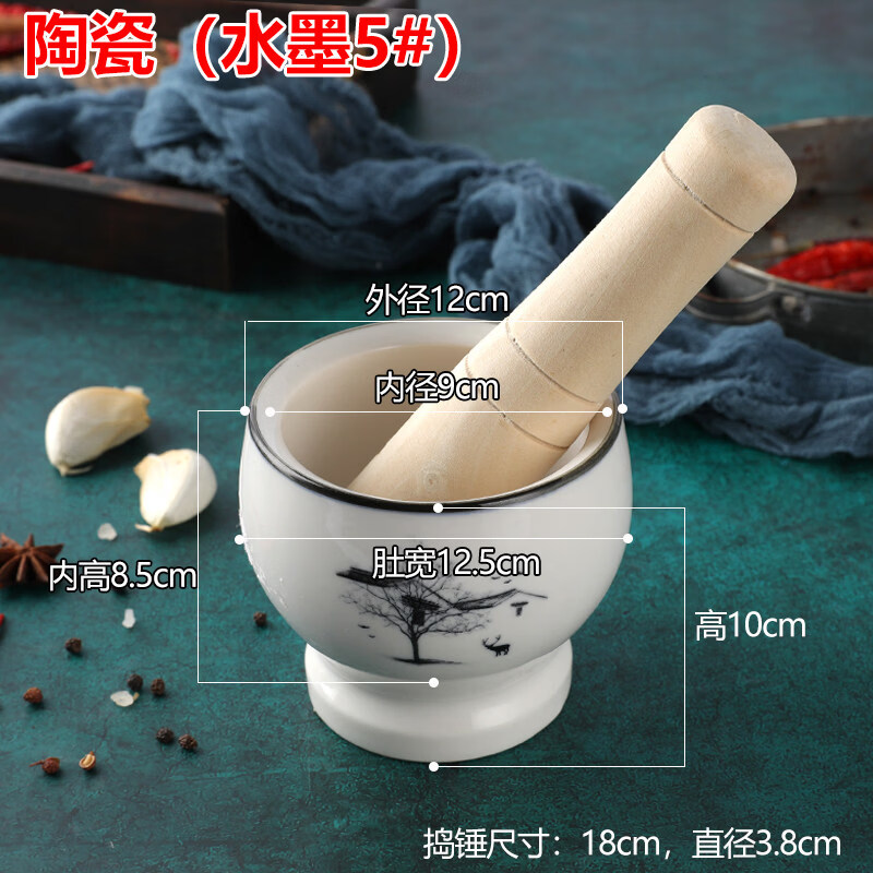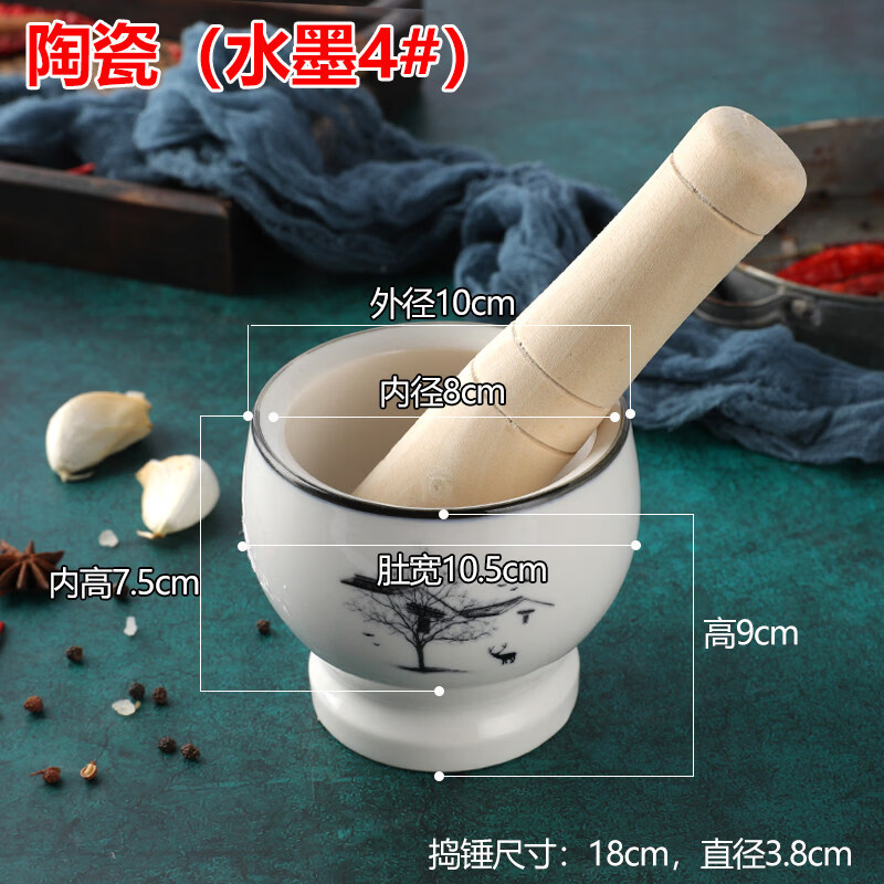 Tuojin imported quality garlic mortar from Japan, stone garlic pounder, stone mortar, household mashing jar, medicine pounding bowl, manual old-fashioned grinding leopard print ceramic (money-losing momentum)