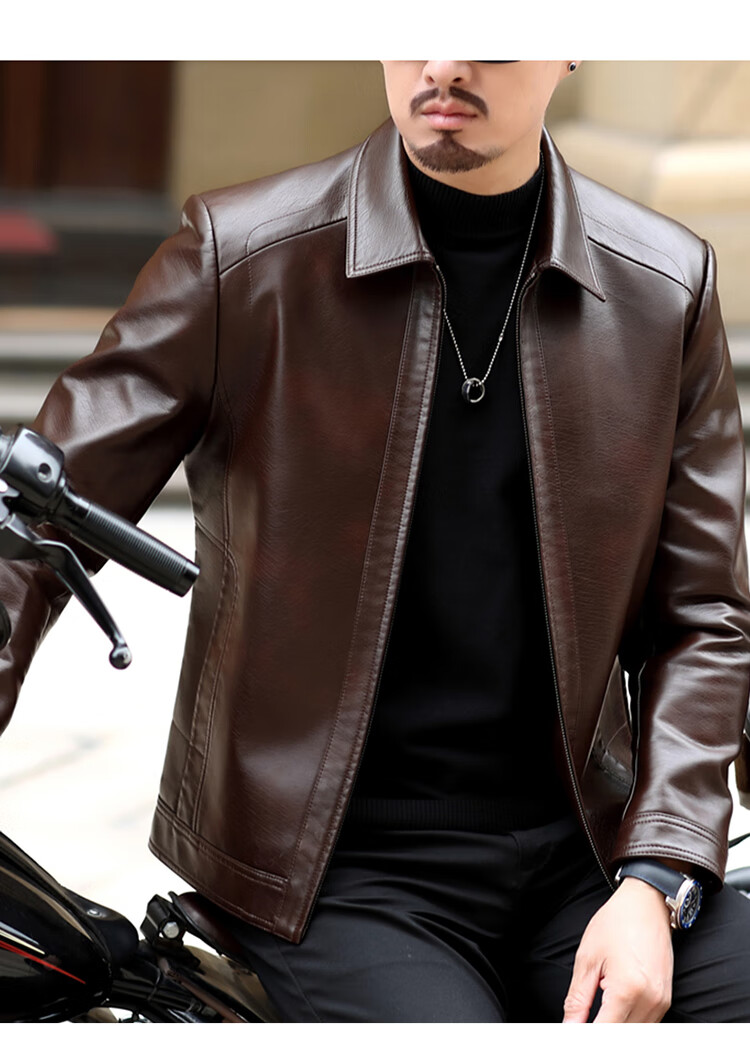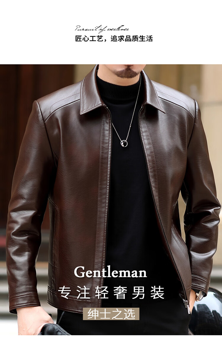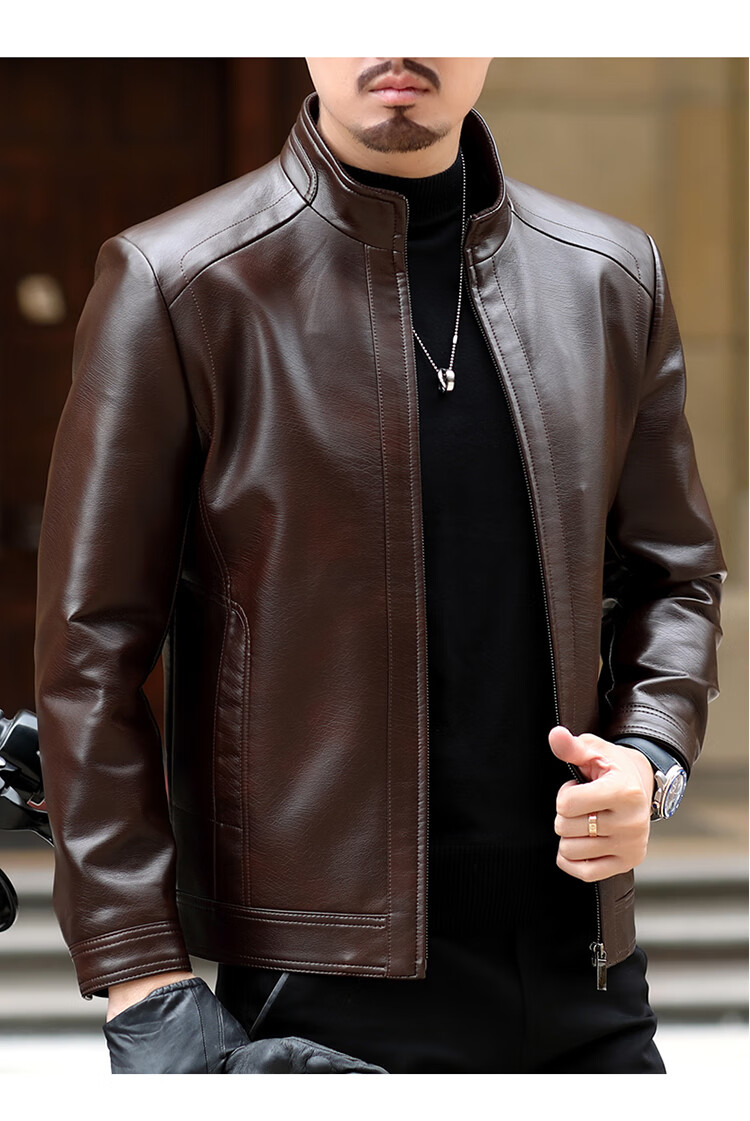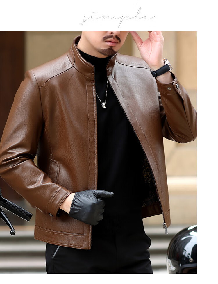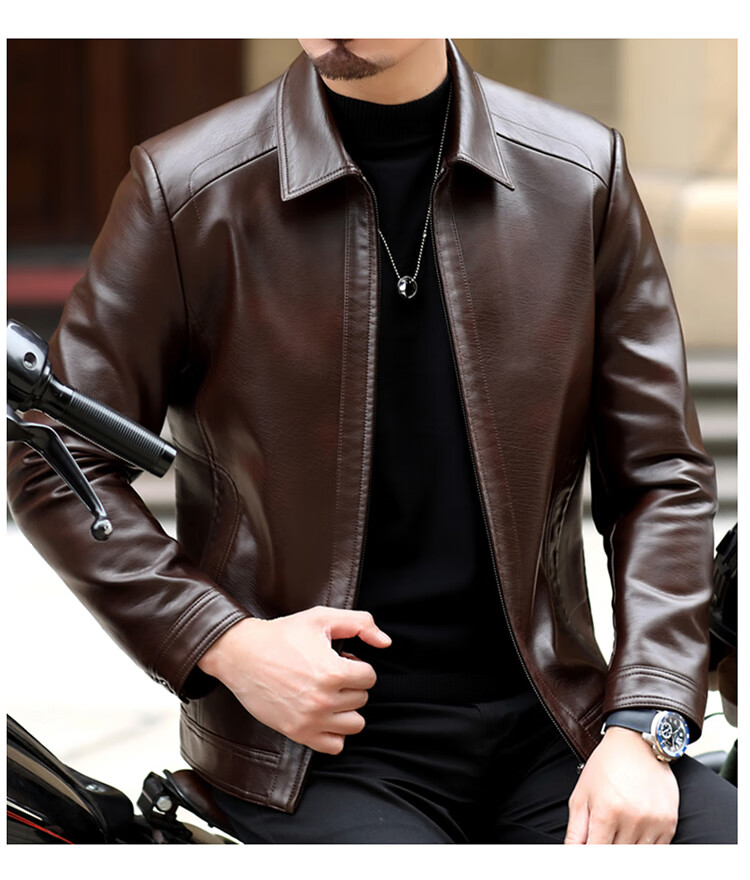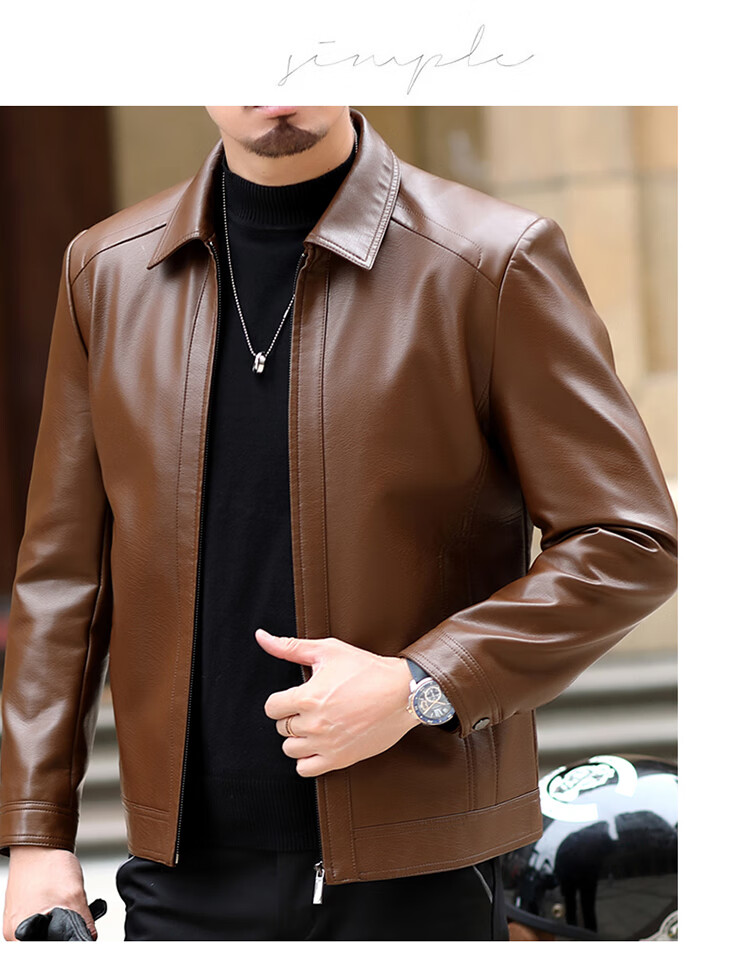 KBXNG Jinba Haining genuine leather jacket for men with lapel for middle-aged cadres in spring and autumn thin casual dad wear sheepskin stand-up collar dark brown plus velvet stand-up collar dark brown plus velvet M 170 weight 100-120 Jin Jin is equal to 0.5 kg