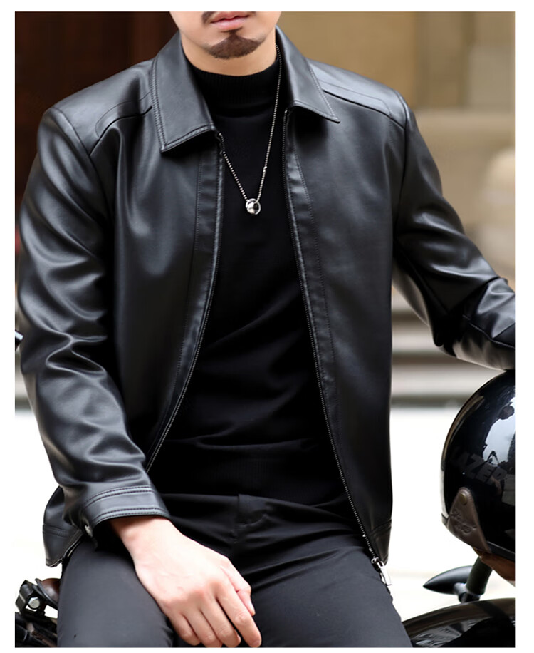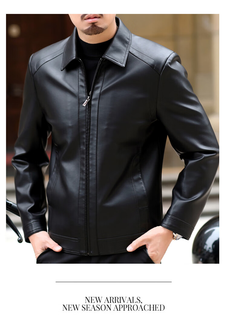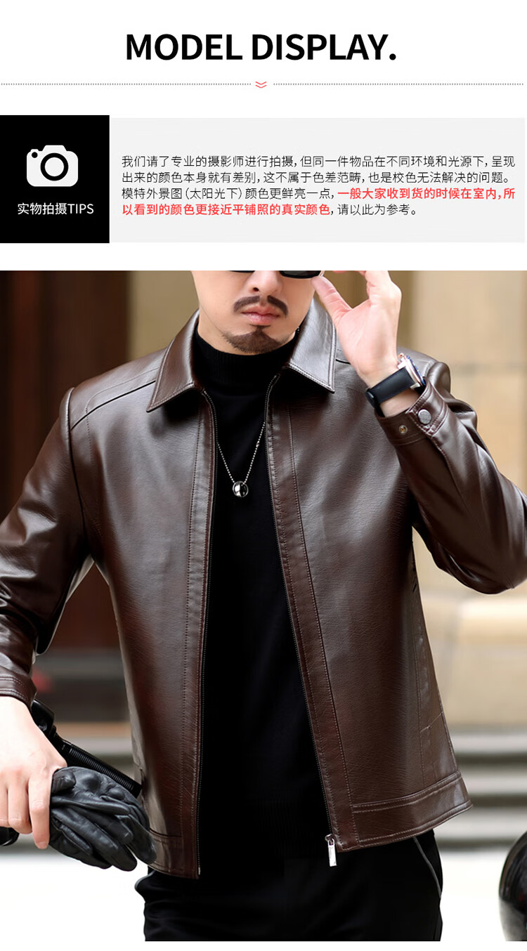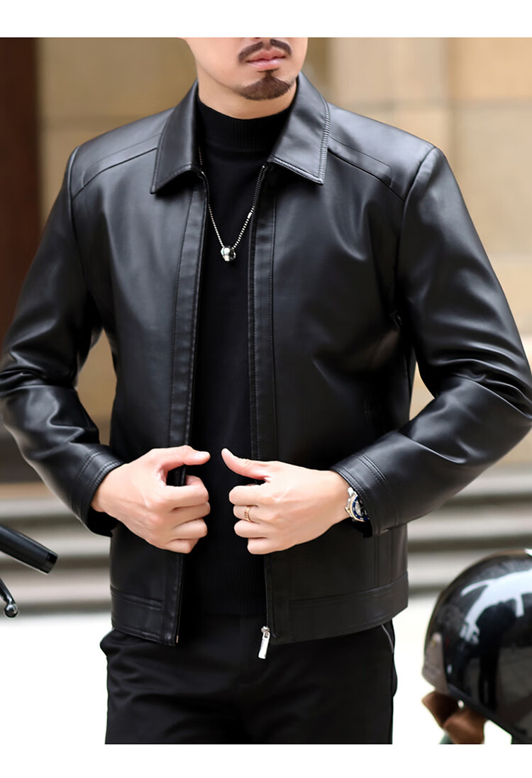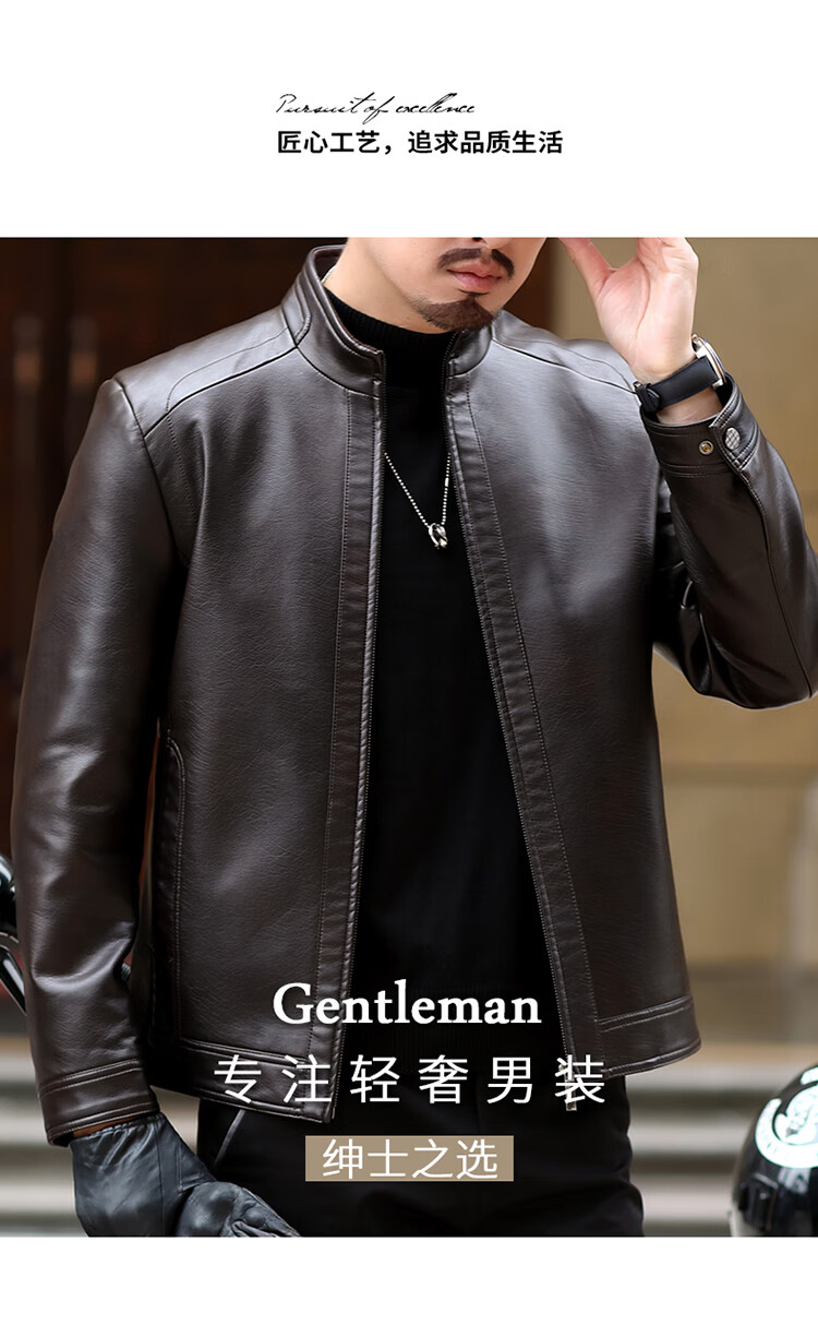 KBXNG Jinba Haining genuine leather jacket for men with lapel for middle-aged cadres in spring and autumn thin casual dad wear sheepskin stand-up collar dark brown plus velvet stand-up collar dark brown plus velvet M 170 weight 100-120 Jin Jin is equal to 0.5 kg