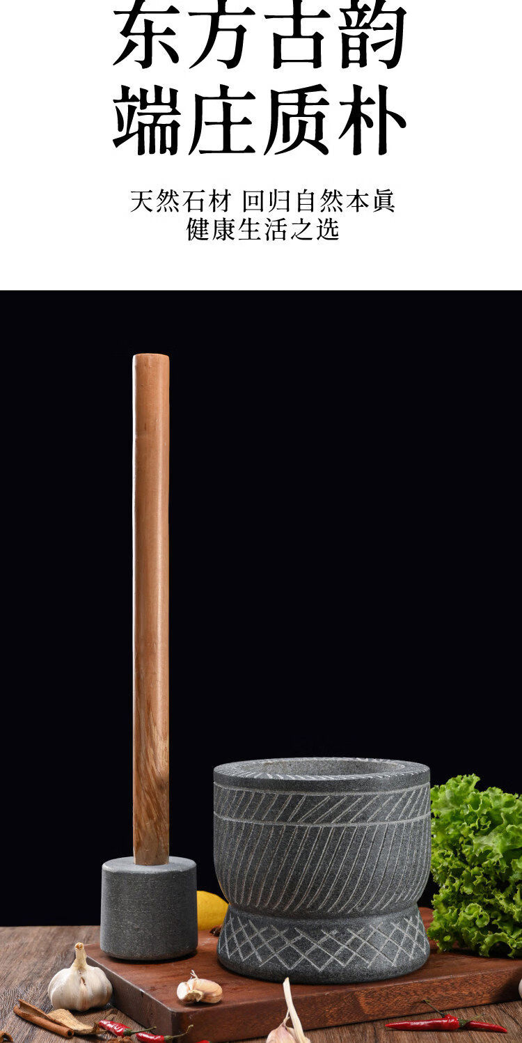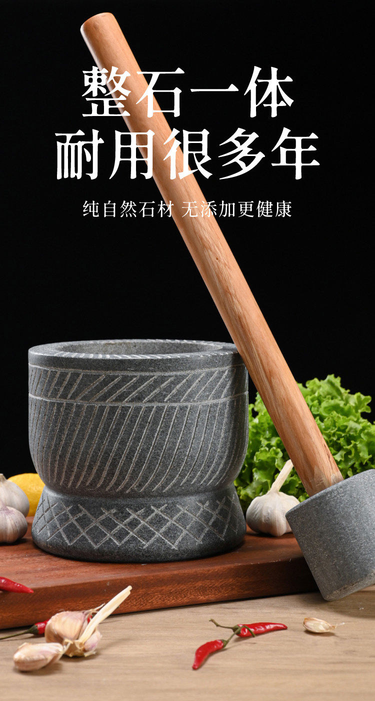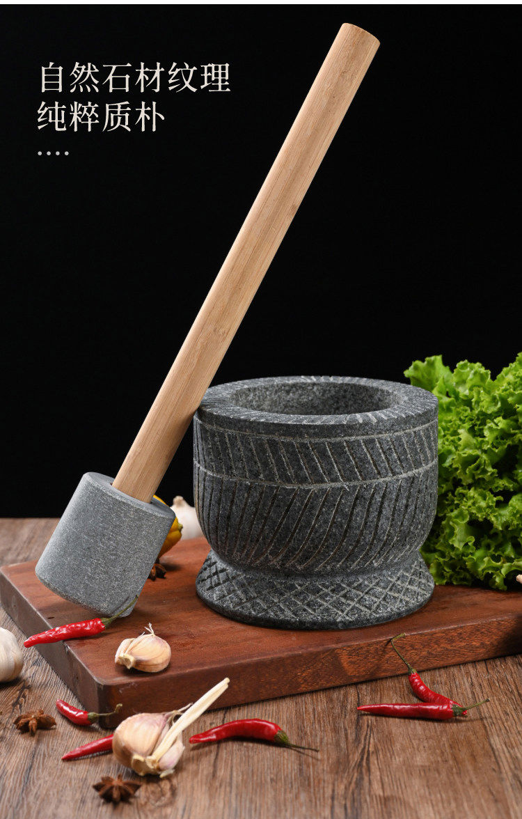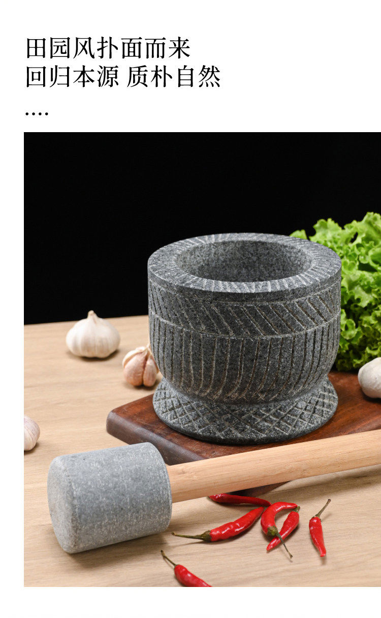 Special hand-carved stone garlic pounder, stone mortar, garlic nest grinder, medicine jar, chili garlic masher, garlic mortar, special hand-carved stone garlic pounder with wooden hammer