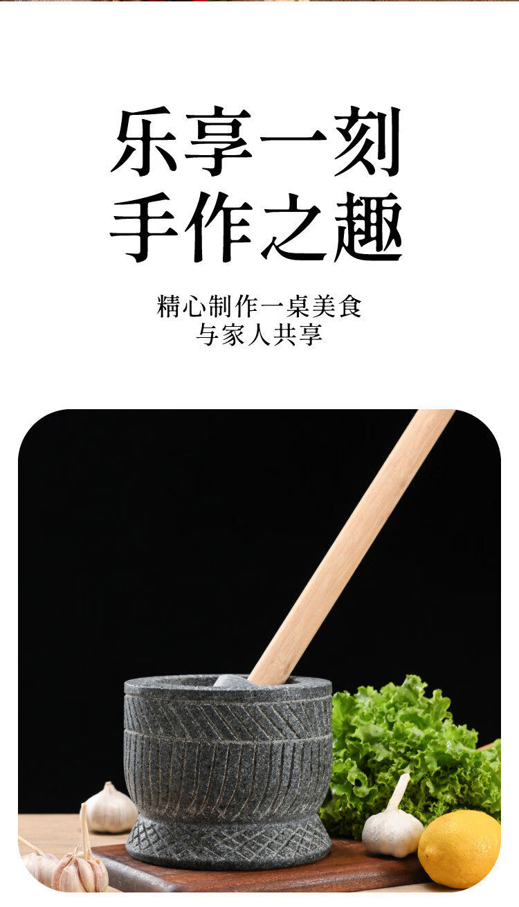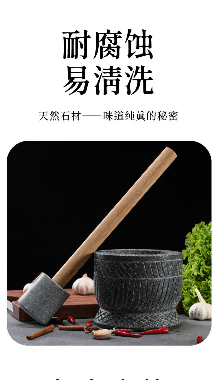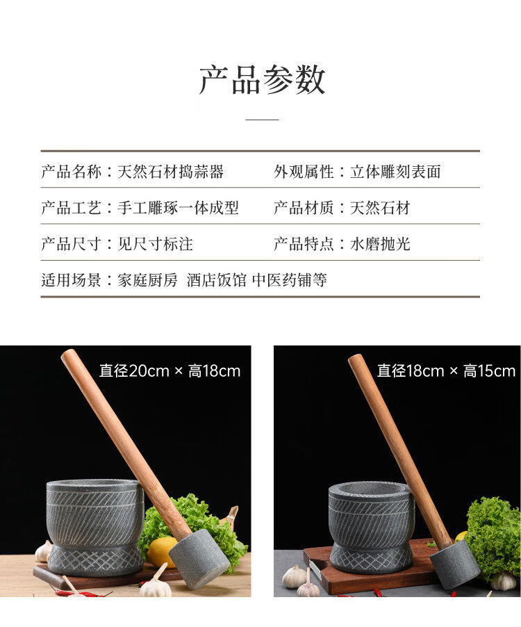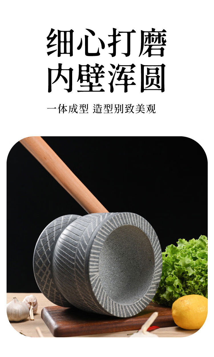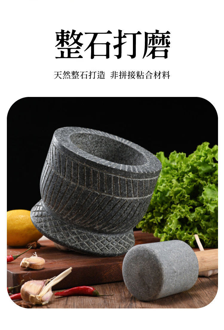 Special hand-carved stone garlic pounder, stone mortar, garlic nest grinder, medicine jar, chili garlic masher, garlic mortar, special hand-carved stone garlic pounder with wooden hammer