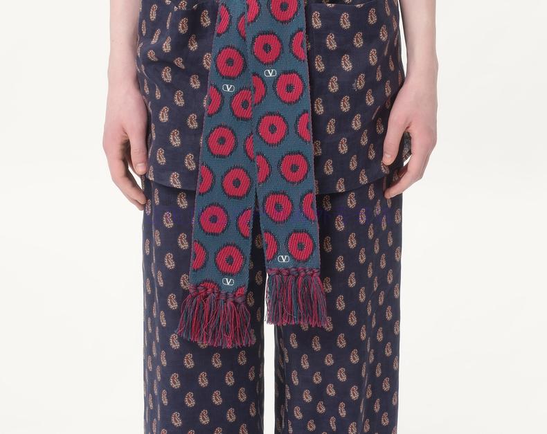 Valentino (Valentino) gift Valentino VALENTINO men ANTIBES fringed scarf red_blue