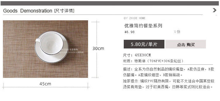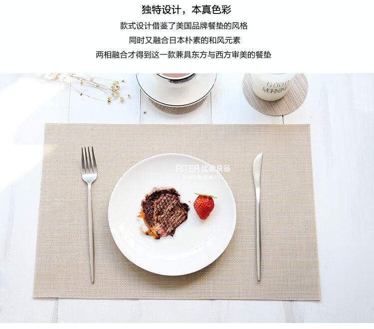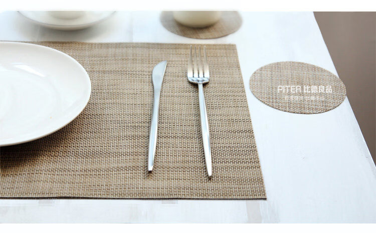 Tuojin imported high-quality simple placemats from Japan, imitation linen table mats, heat-insulating mats, bowl mats, Japanese-style Nordic tablecloth-feel Western placemats, green gold (Type A)