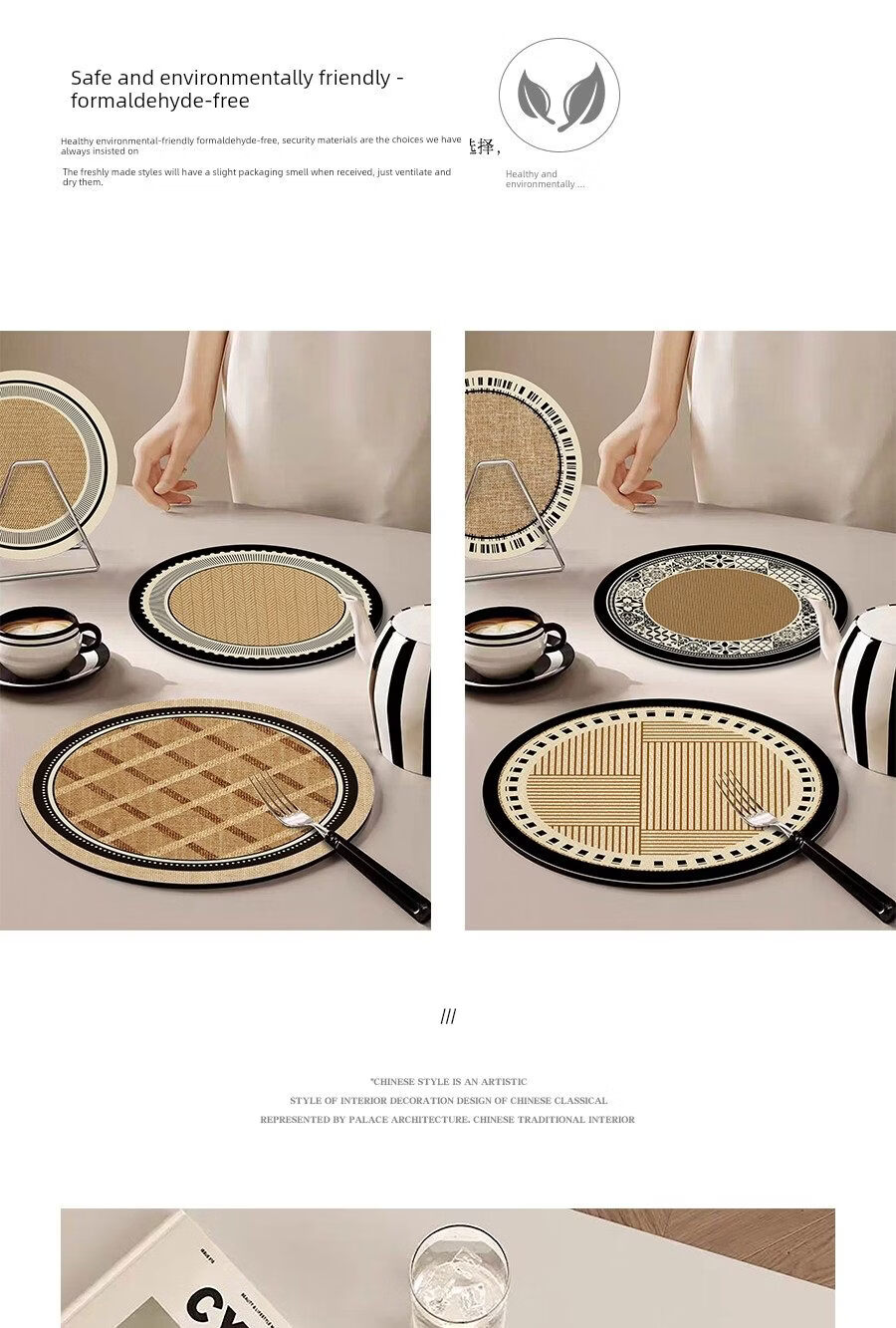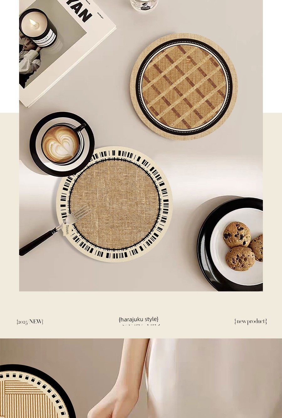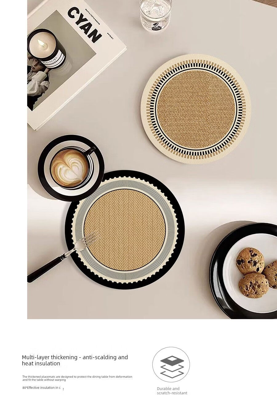 Tuojin Japan imported high-quality imitation linen pattern dining table insulated round small placemat high temperature resistant desktop bowl and plate small table Jingjing Xianshi-A diameter 17cm