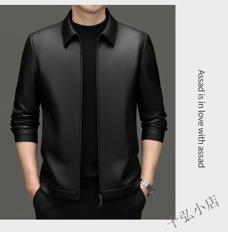 KBXNG Jinba genuine leather jacket new autumn and winter middle-aged lapel men's slim sheepskin dad casual leather 8116 black single leather 8116 black single leather one size fits all 170/48